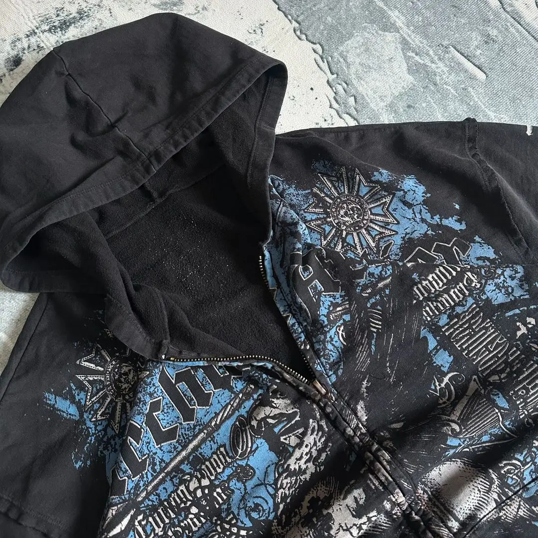 Hearujoy Affliction Gothic Hoodie Y2K New Retro Pattern Oversize Zipper Hoodie Hip Hop Street Casual Sweatshirt Personality Men clothing