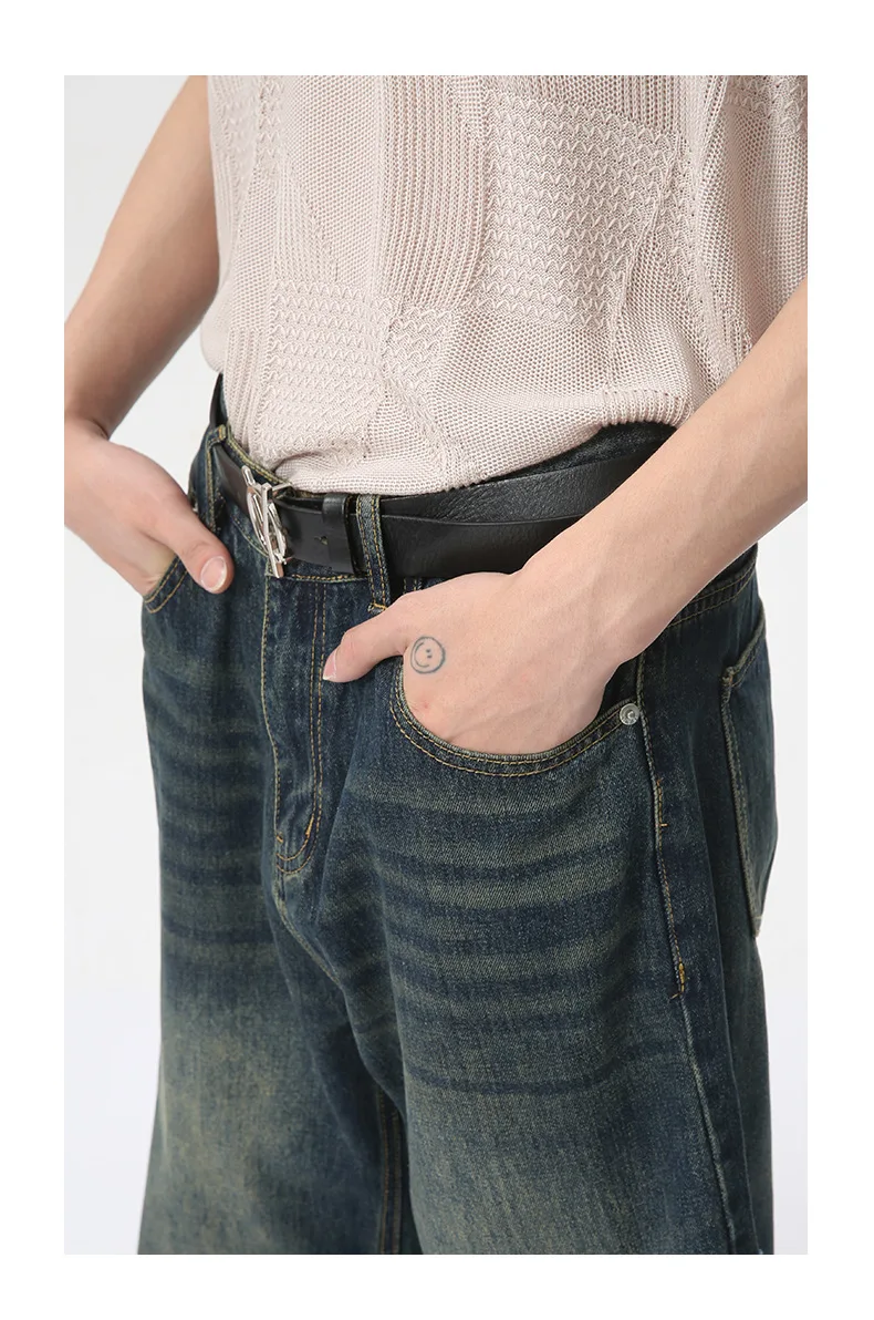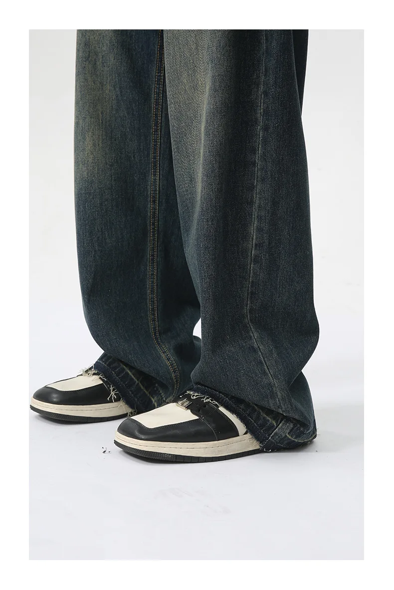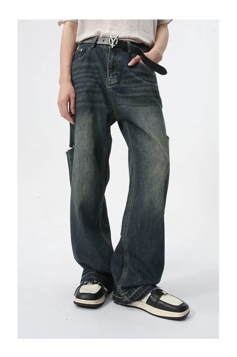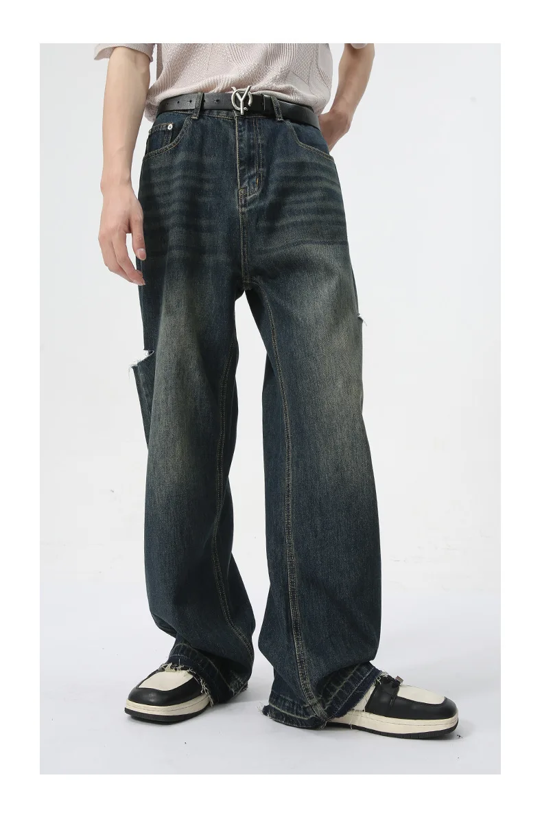 Hearujoy Fashion Loose Men's Straight Pants American Style Casual Hole Worn-out Design Wide Leg Jeans Summer Trend 9C6153