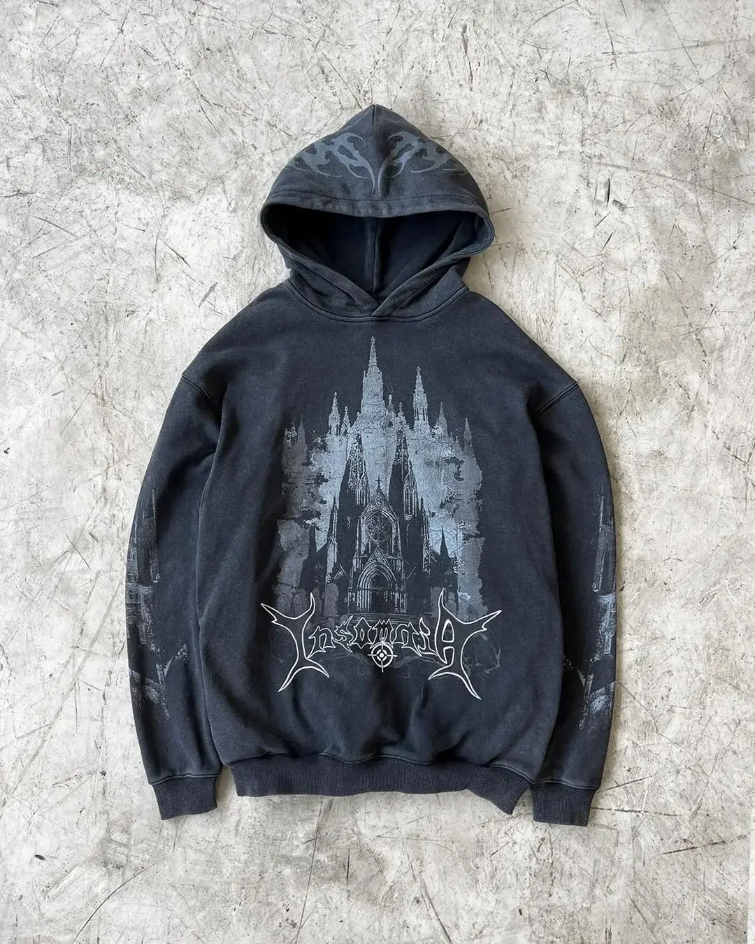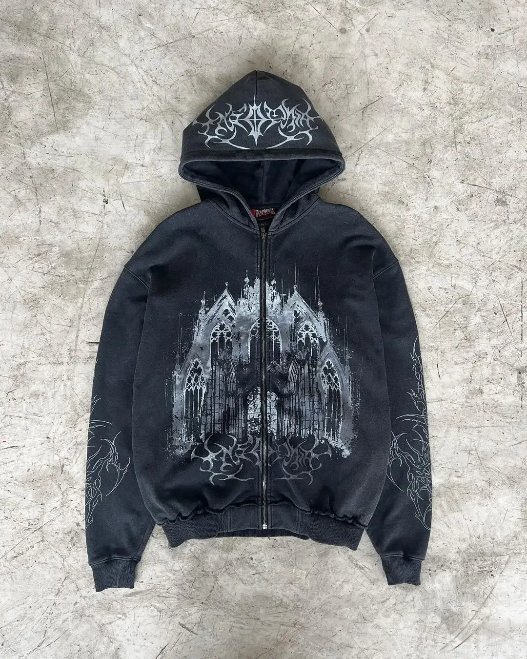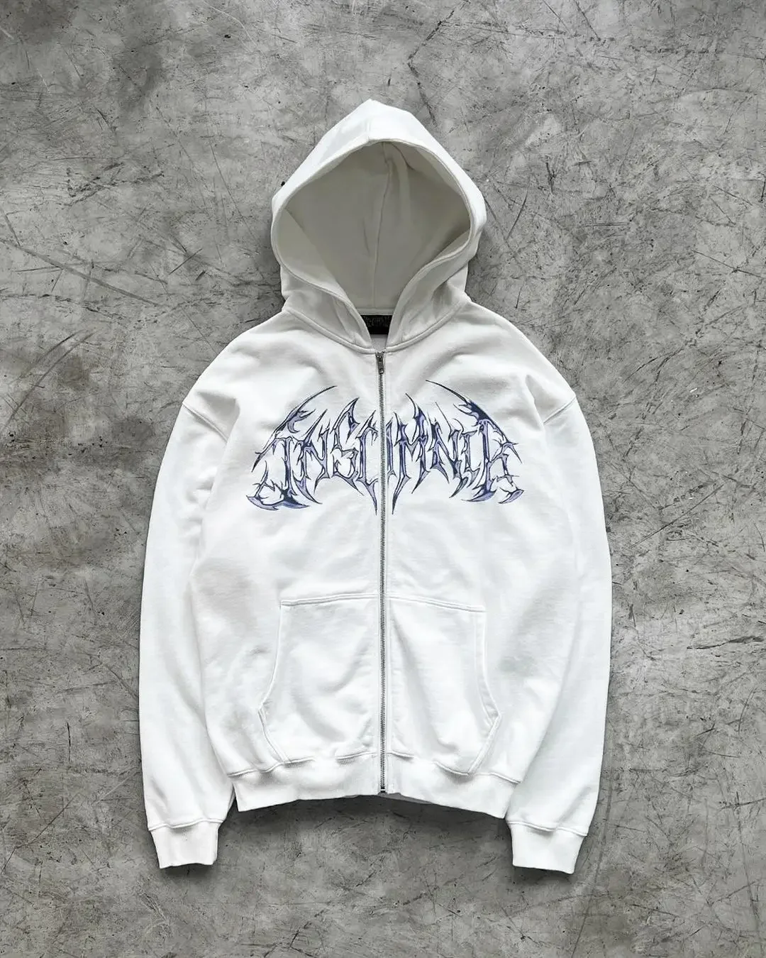 Gothic hip-hop letter print design oversized hoodie women's y2k vintage high street popular lazy style zipper baggy sweatshirts