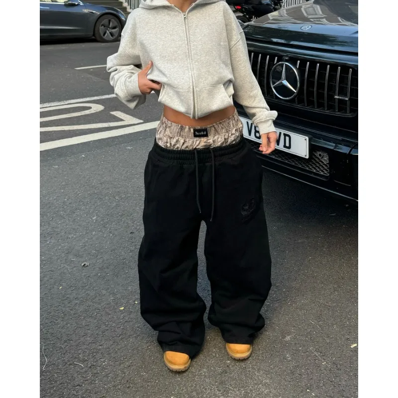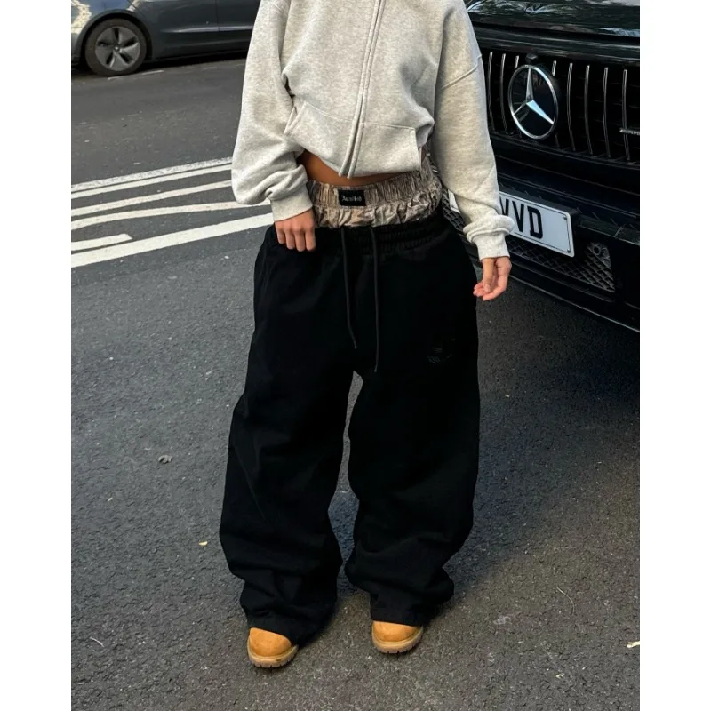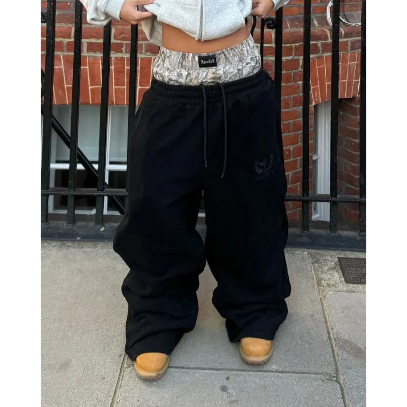 Hearujoy Harajuku Solid Color Casual Versatile Elastic Waist Wide Leg Pants Women y2k Street Hip Hop Aesthetic Versatile Casual sweatpant