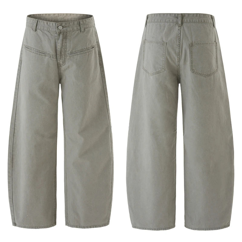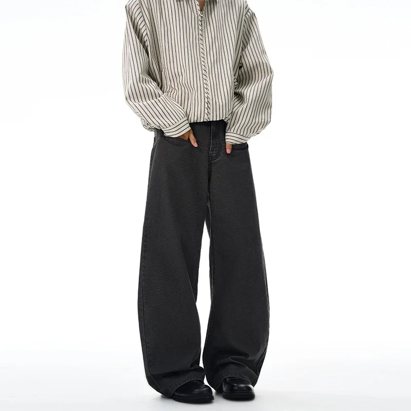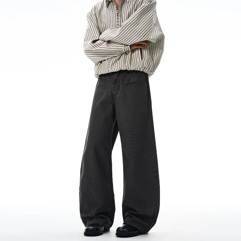 HEARUJOY - 100% Cotton Wide-leg Jeans Men's Autumn Fashion Pocket Design Casual Trousers Loose American High Street Y2K Denim Pants