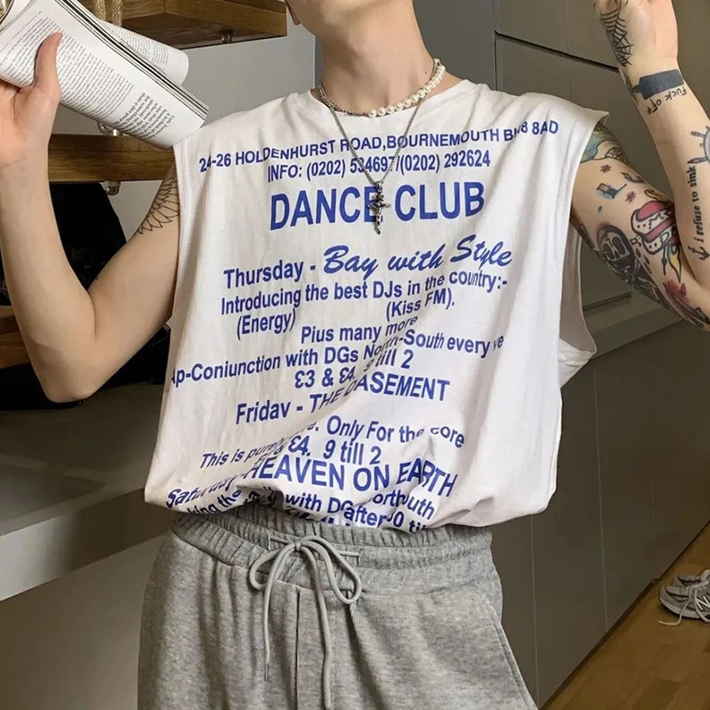 Hearujoy 2024 New Summer Vest Hooded Sleeveless T-Shirt Boys Print Graffiti Punk Rock Tide Brand Loose Sweater Hip-hop Hoodie Vest