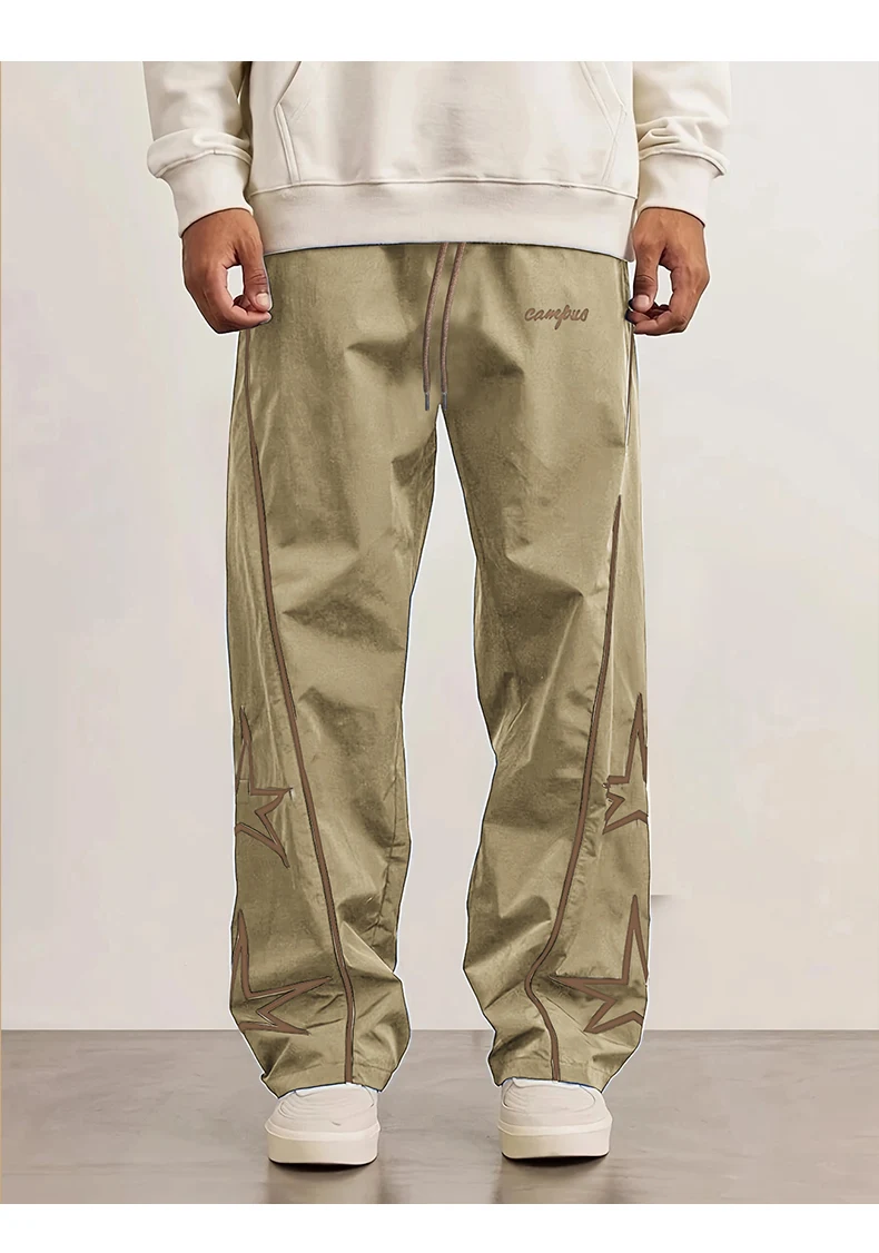 HEARUJOY - American Casual Baggy Pants Men Cargo Trousers High Street Drawstring Workwear Trendy Loose Versatile Straight Wide-Leg Pants