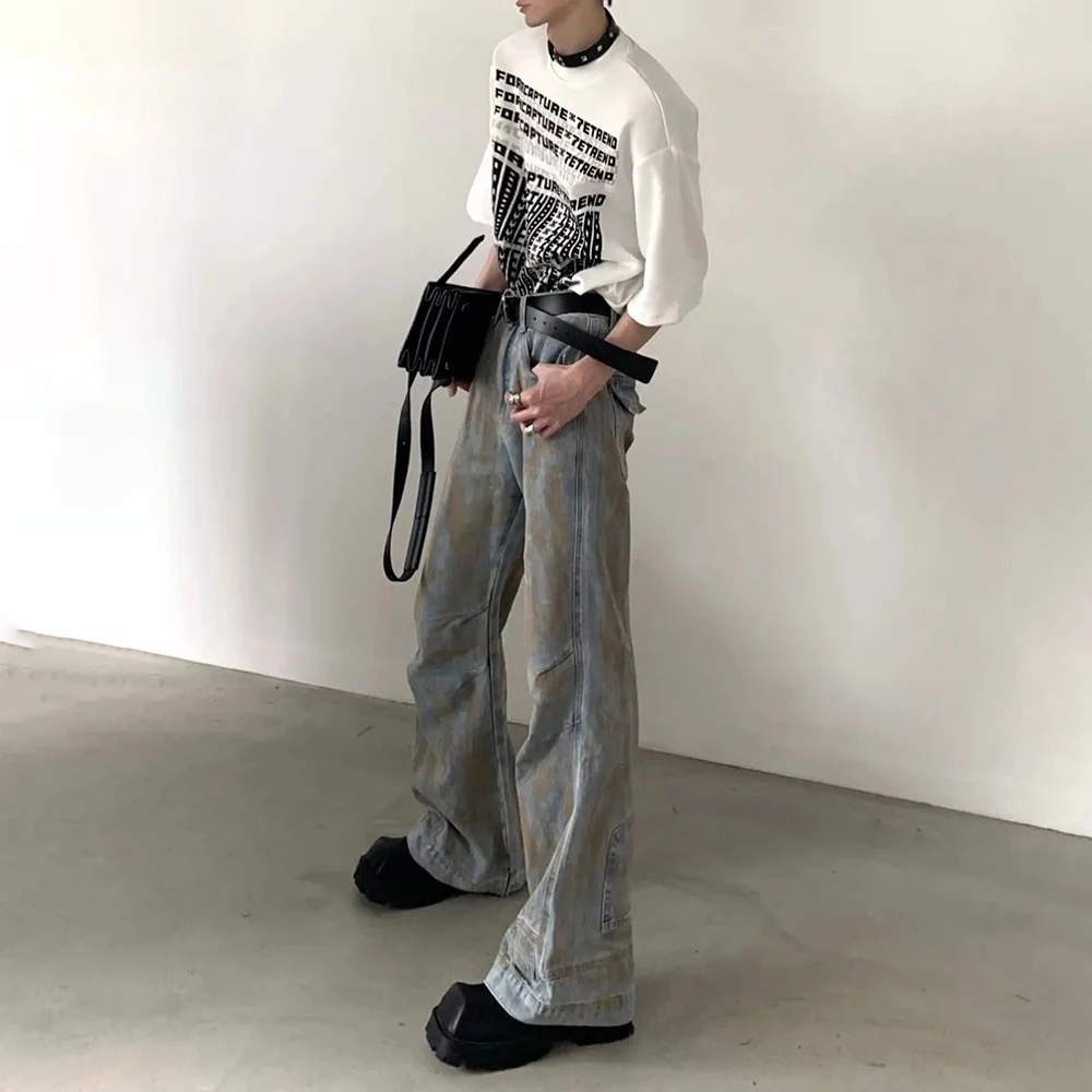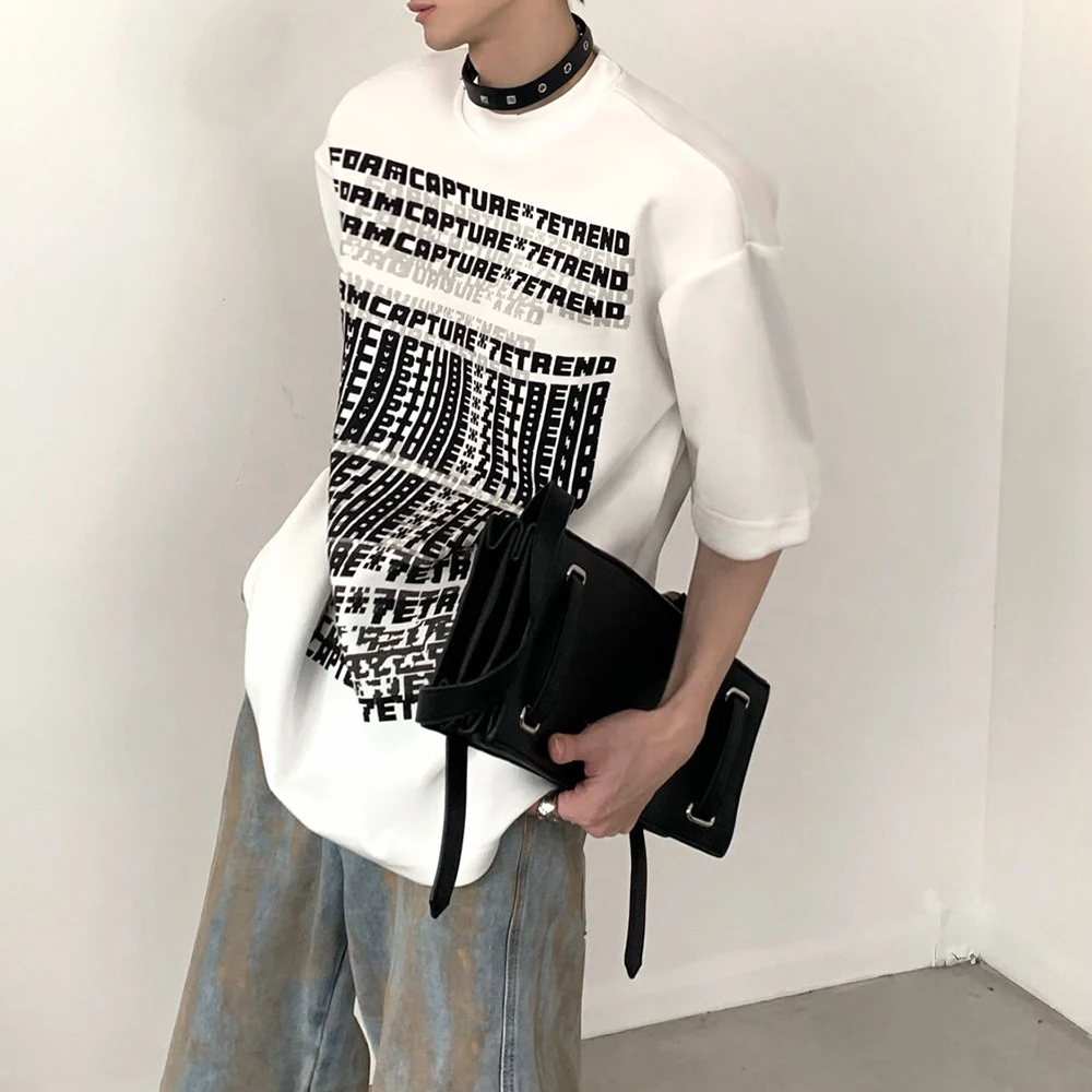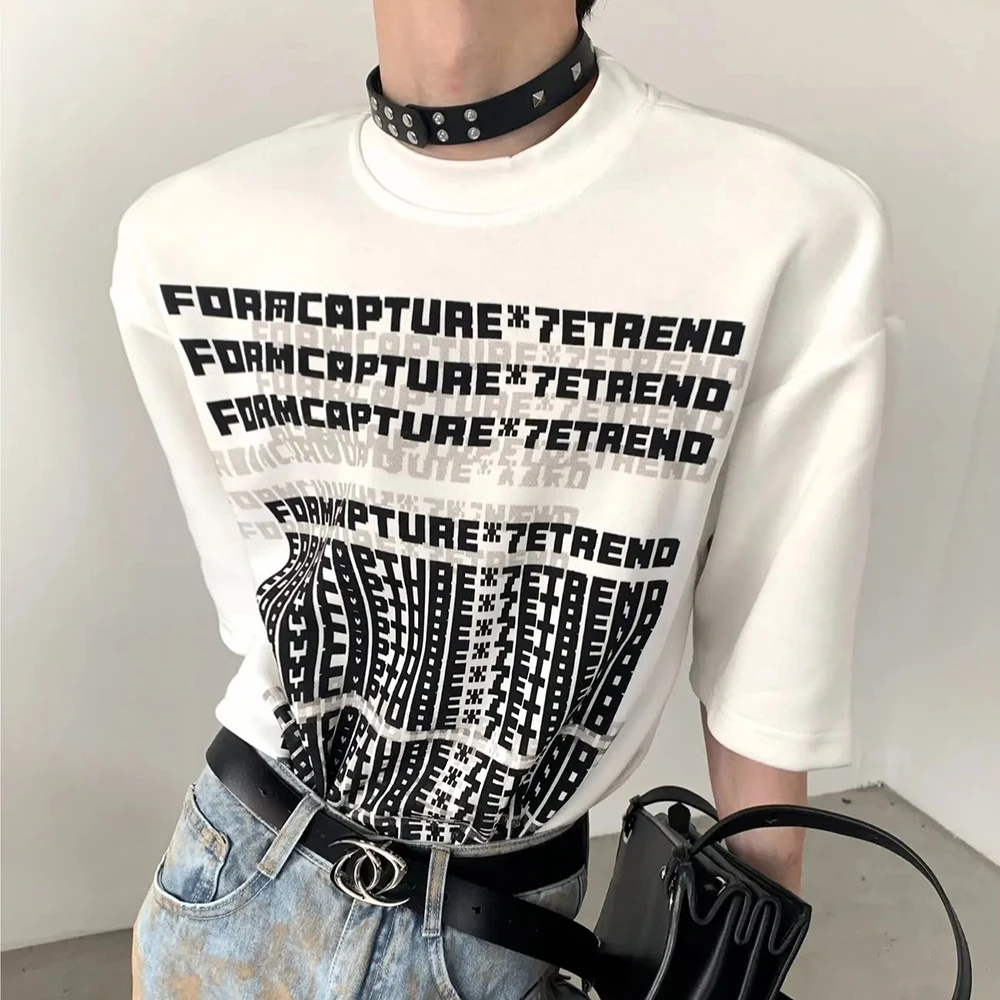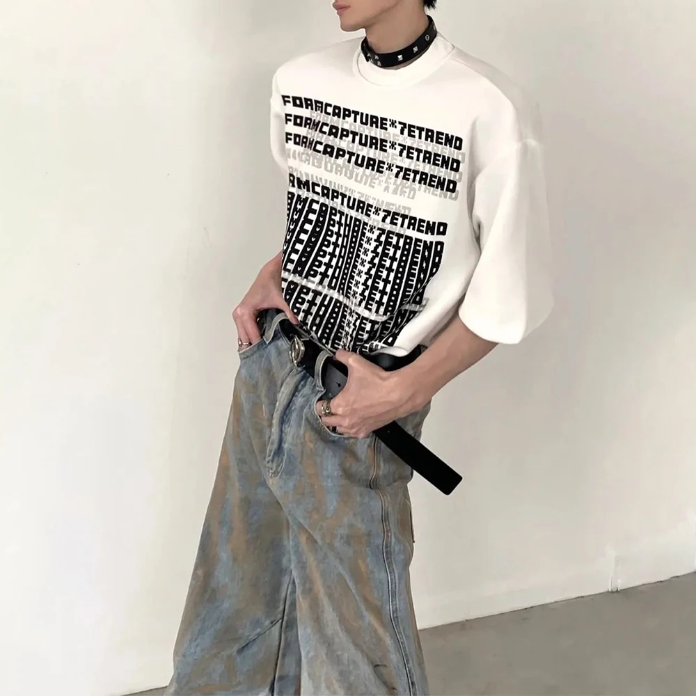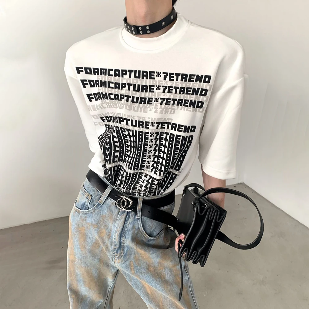 Hearujoy American High Street Motorcycle Style Mens Clothing Summer Round Neck Fashion Trend Short-Sleeved Retro T-Shirt Mens Tops
