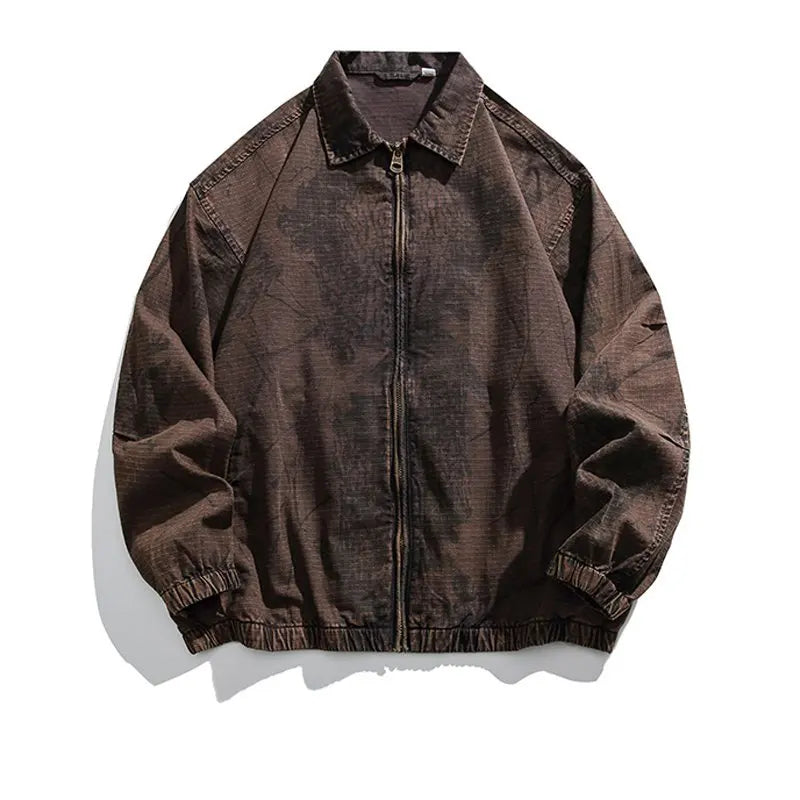 HEARUJOY - American High-Street Washed Camo Jacket Vintage Military Overshirt with Notch Collar Distressed Streetwear Coat for Men
