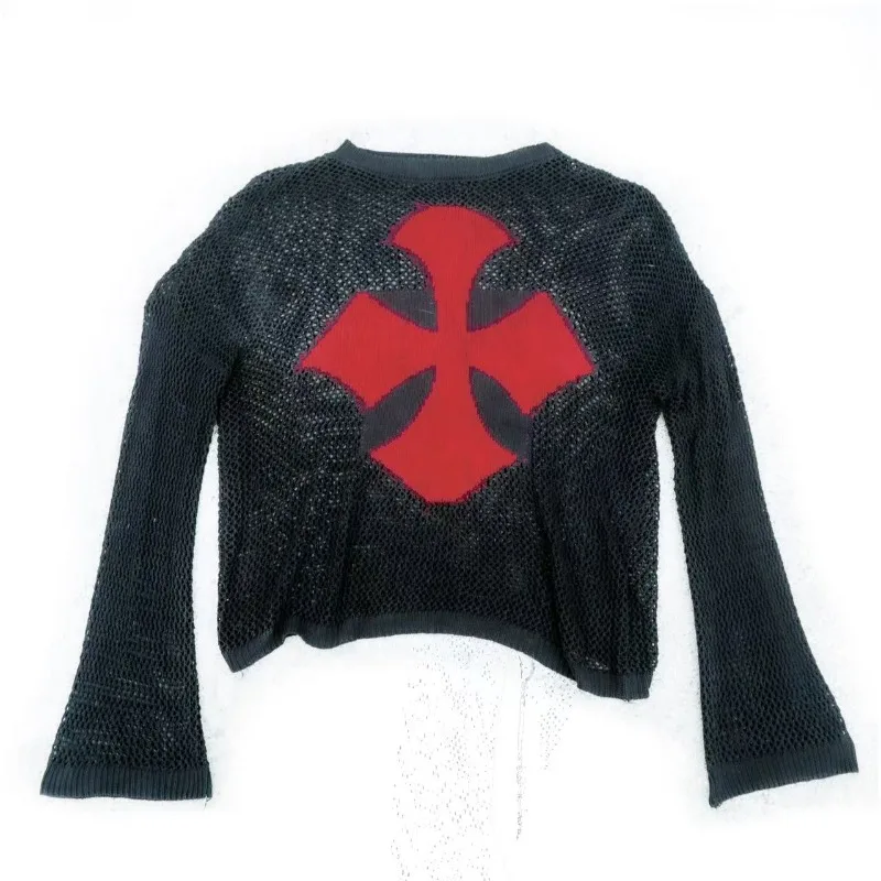 Hearujoy American retro design hollow-out long-sleeved sweater men y2k Harajuku trend sweater winter new street hip hop loose jumper