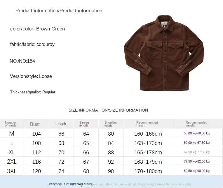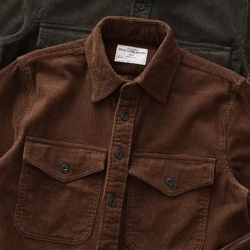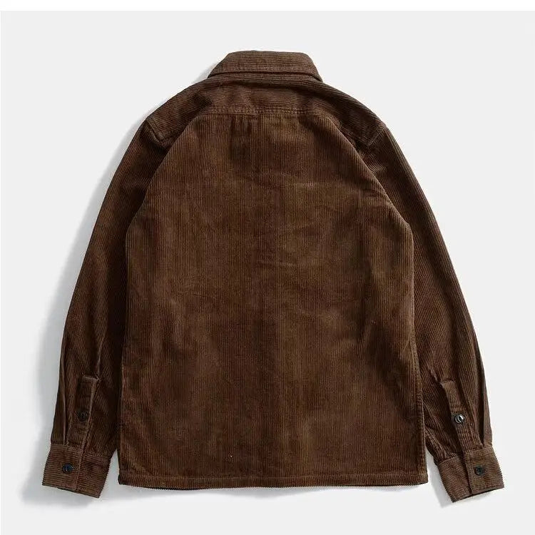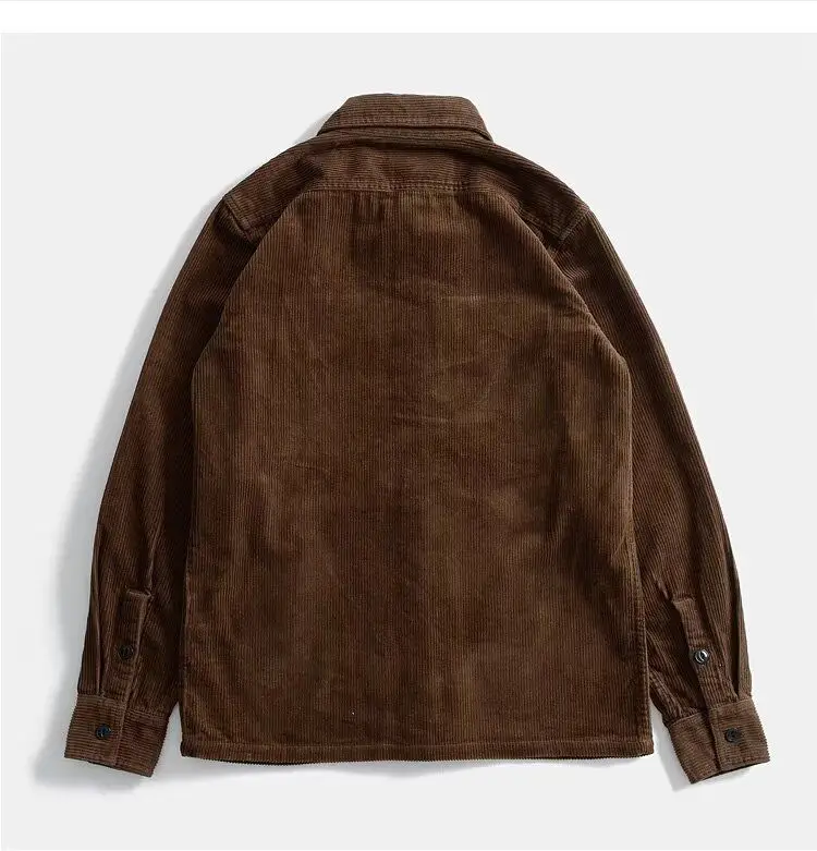 HEARUJOY - American Retro Heavyweight Corduroy Shirt Men's Loose Workwear New Thick Long Sleeved Shirt Jacket Men