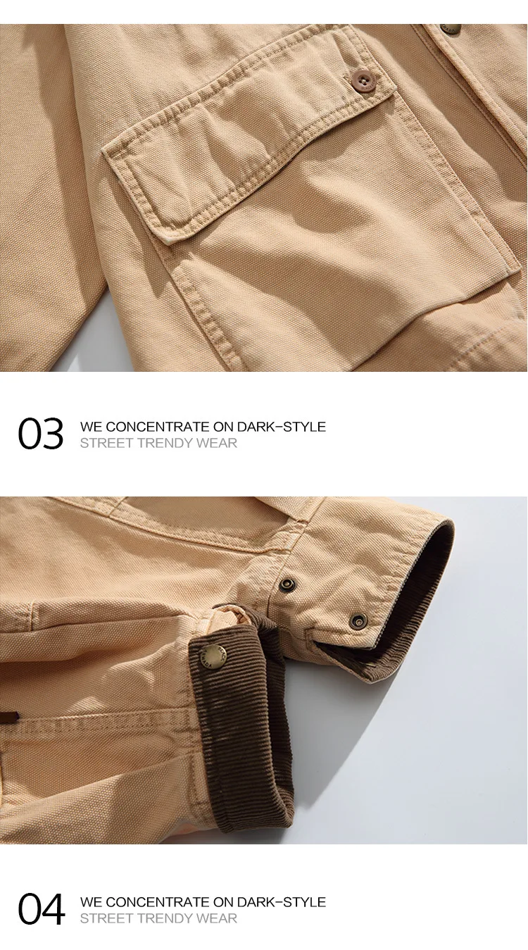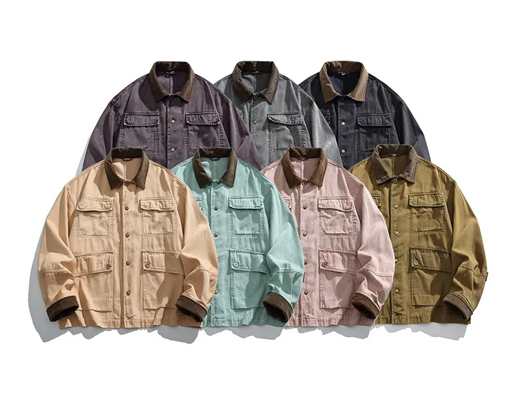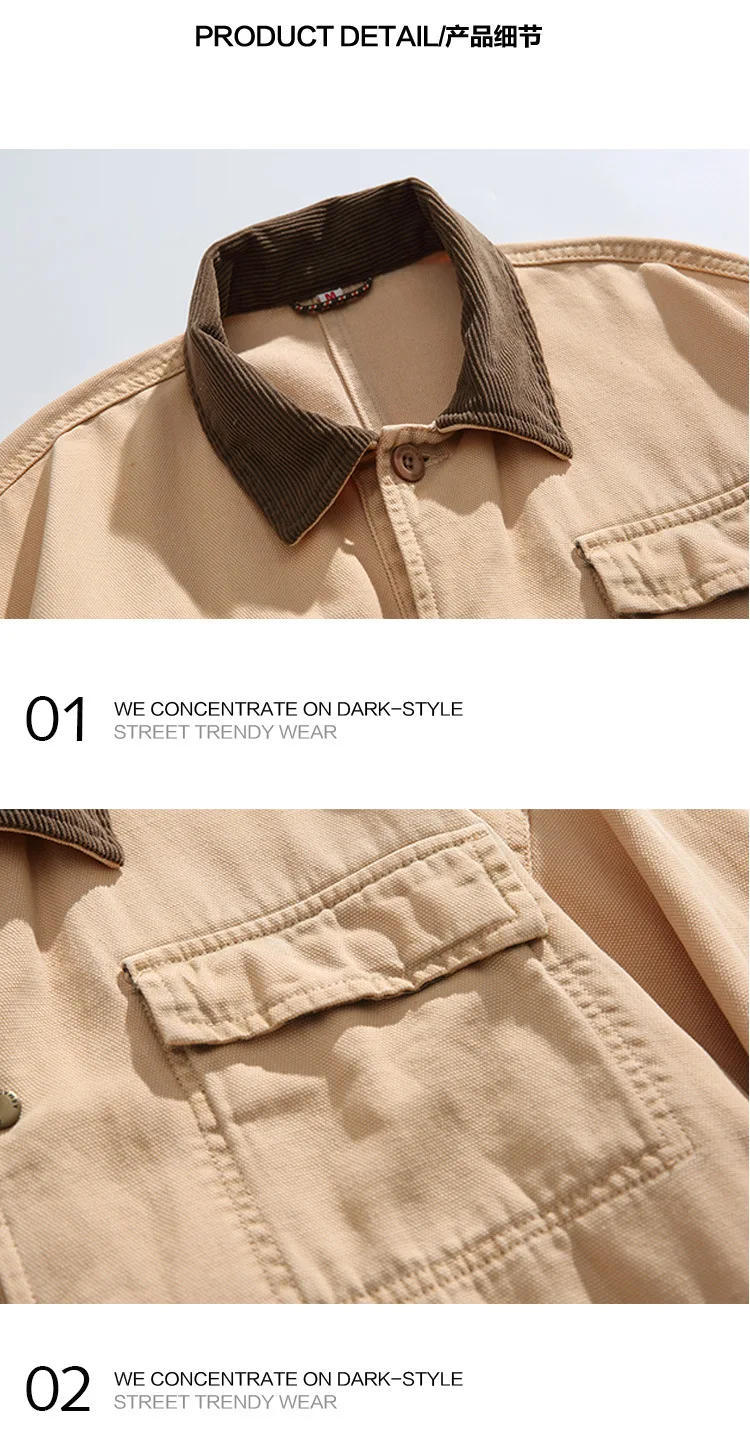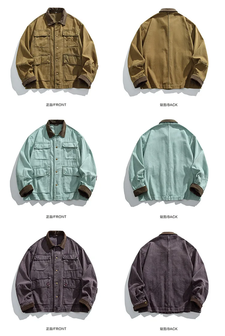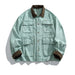 HEARUJOY - American Retro Heavyweight Washed Denim Jacket Multi-Pocket Workwear Coat with Contrast Collar Oversized Utility Streetwear