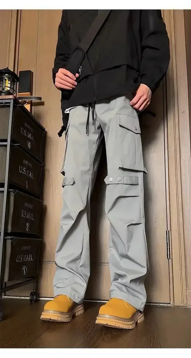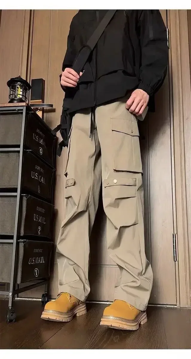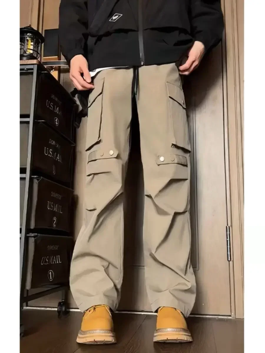 HEARUJOY - American Retro High Street Men Straight Wide-leg Casual 2025 New Fashion Trendy Work Pants