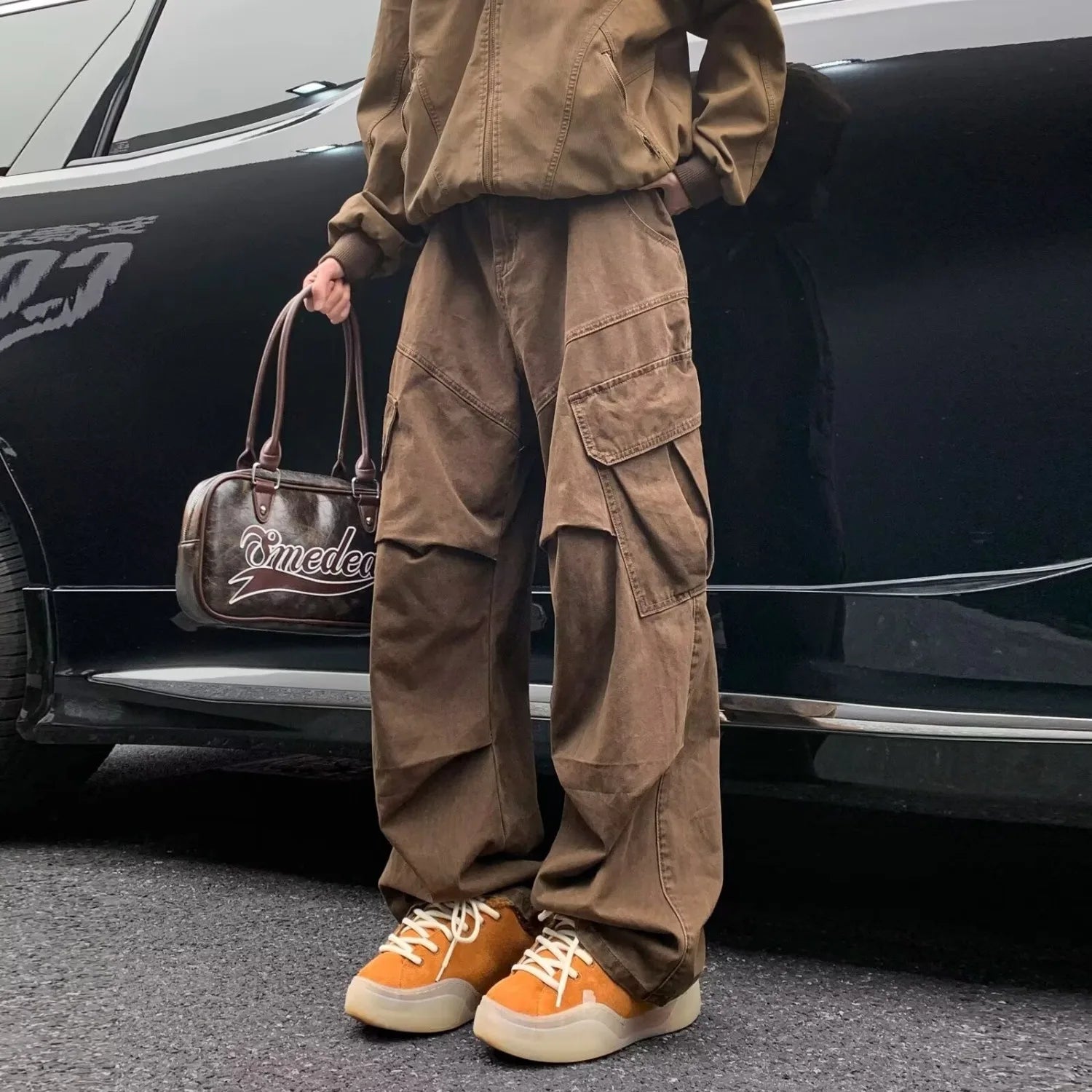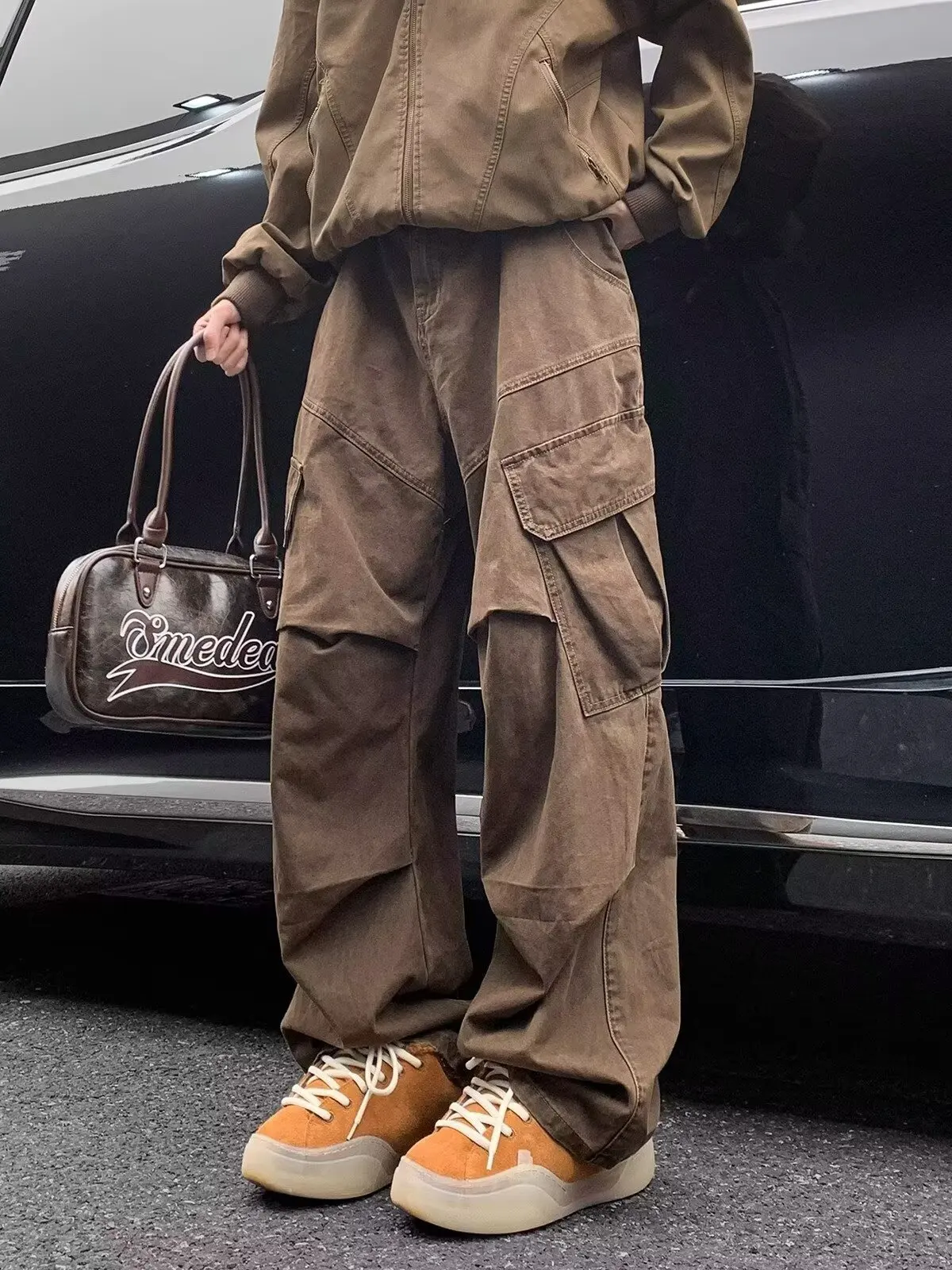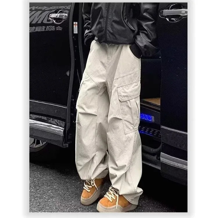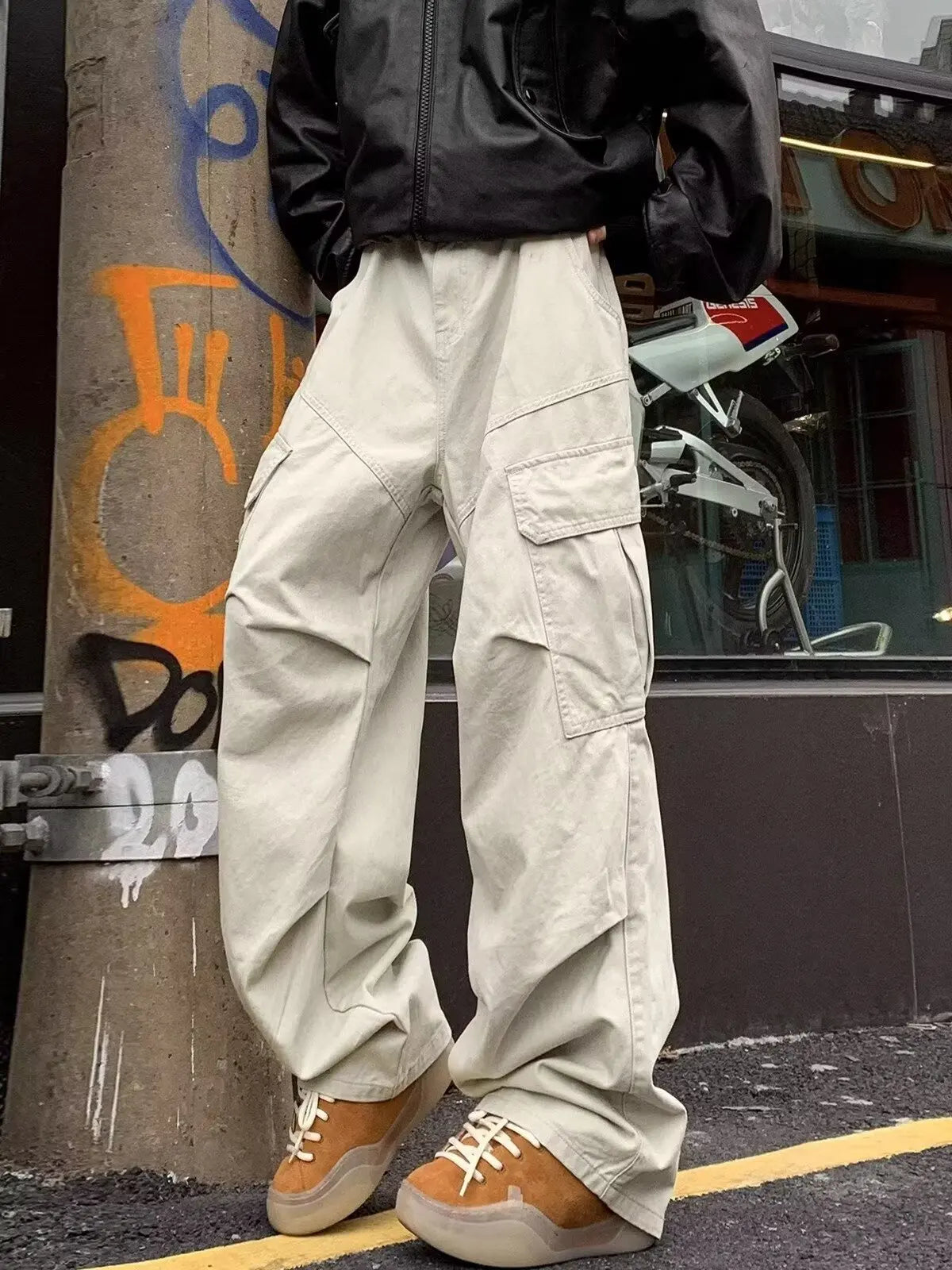 HEARUJOY - American straight-leg casual pants men's Hong Kong style spliced contrasting wide-leg pants in summer thin young people quick-
