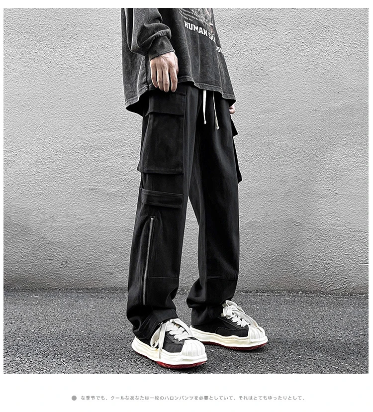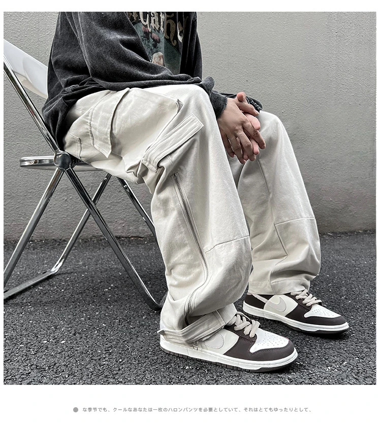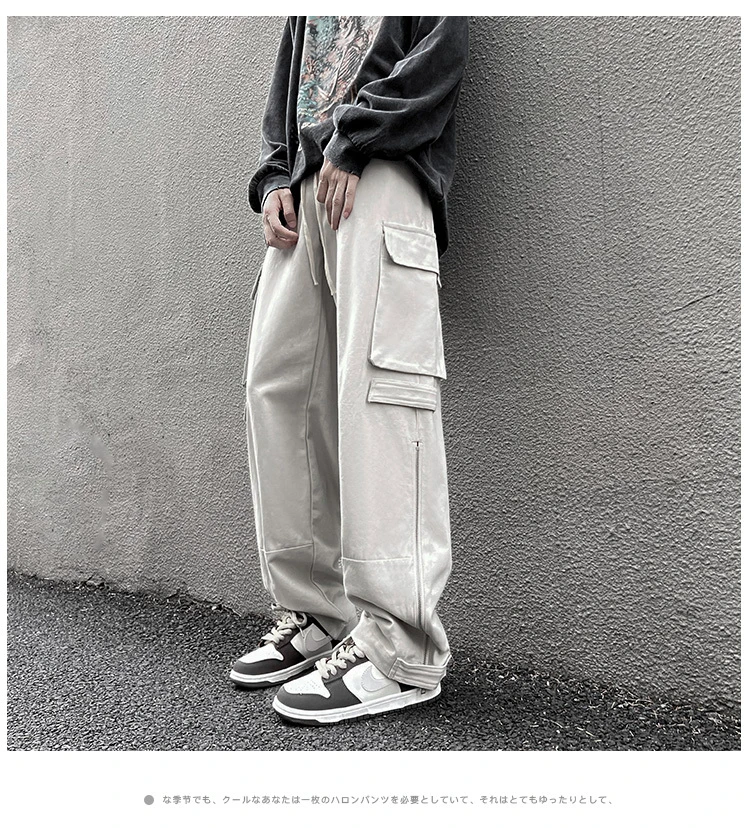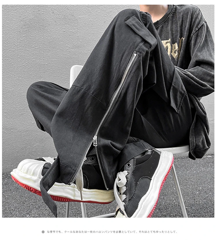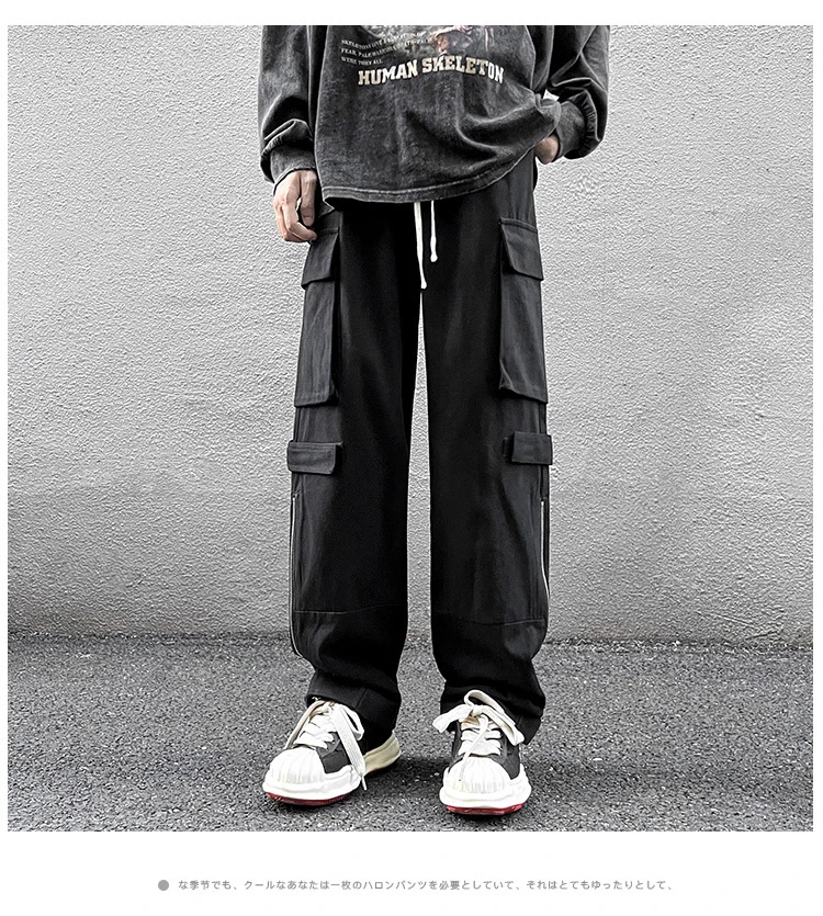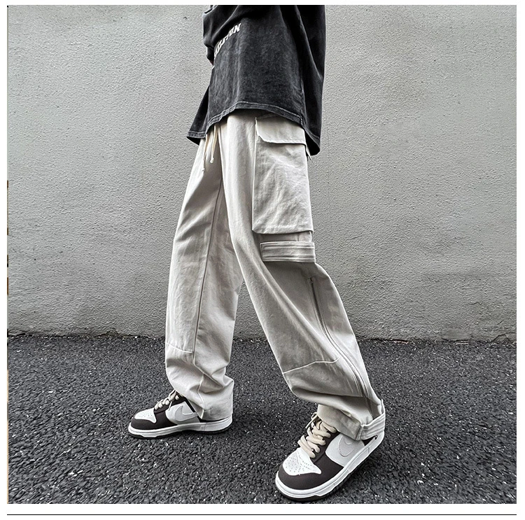 Hearujoy American straight tube workwear pants for men, autumn trendy high street logging wide leg pants, ruffled and handsome, loose