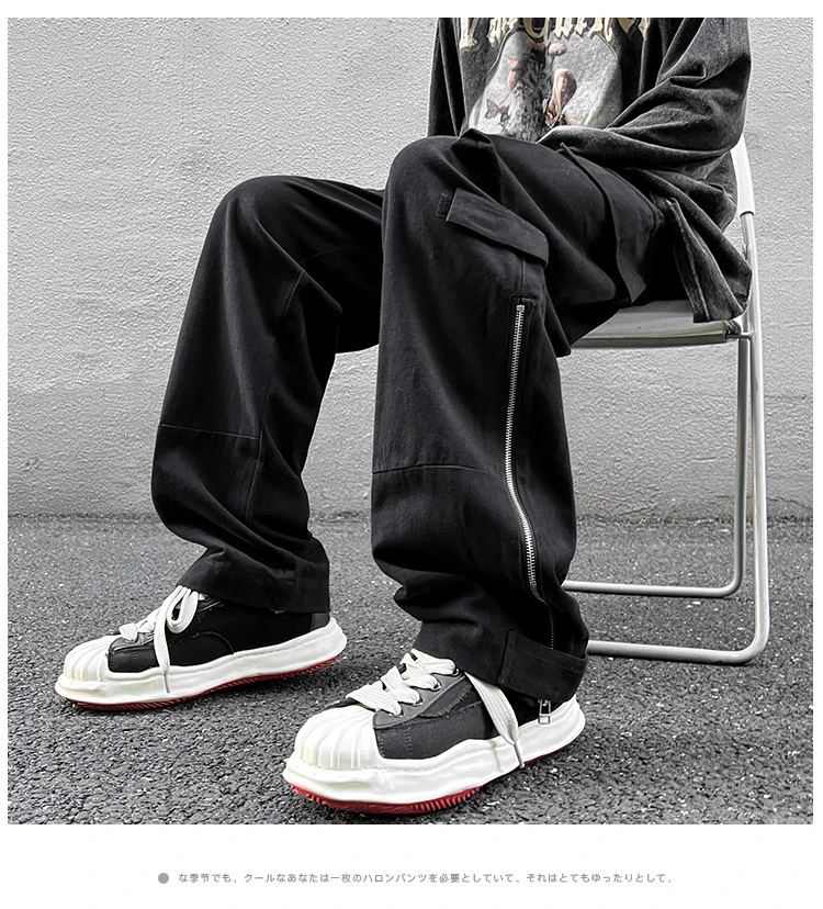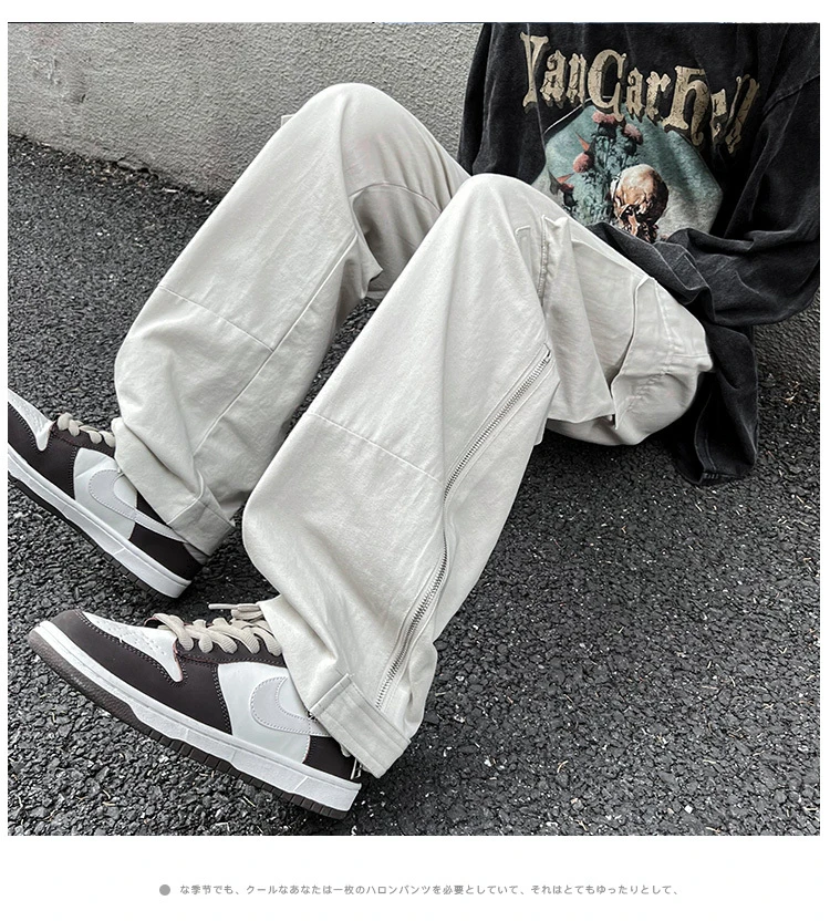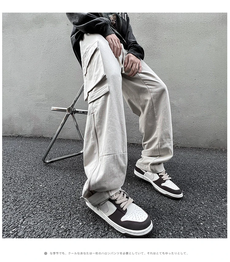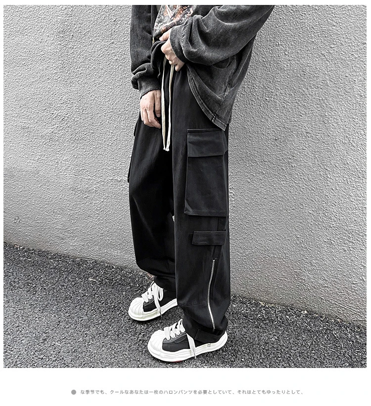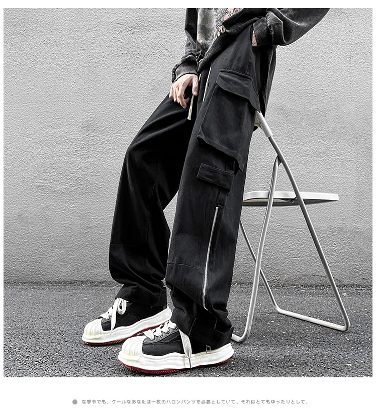 Hearujoy American straight tube workwear pants for men, autumn trendy high street logging wide leg pants, ruffled and handsome, loose