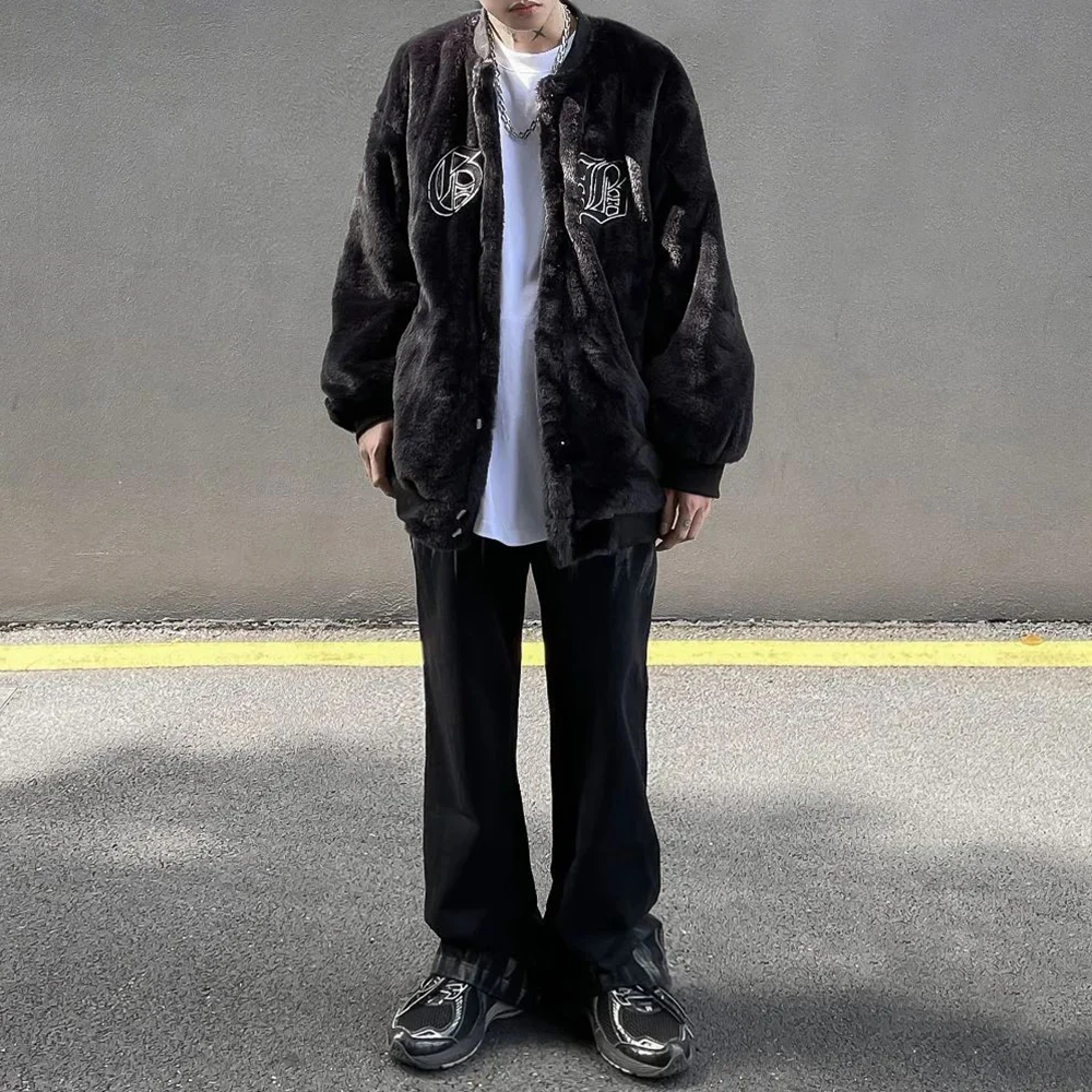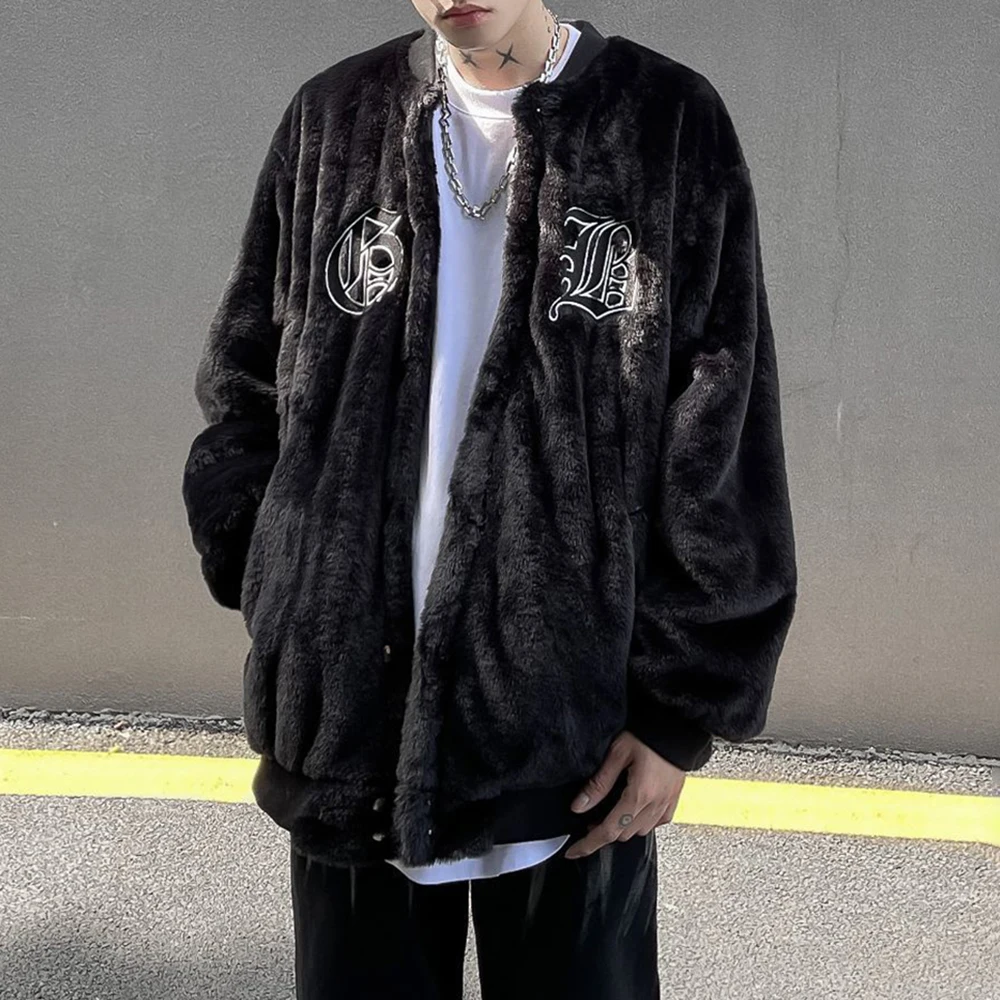 Hearujoy Autumn And Winter Fashion Loose Thickened Mens Jacket Hip-Hop Imitation Rabbit Fur High Street Plush Cold-Proof Warm Men Jacket