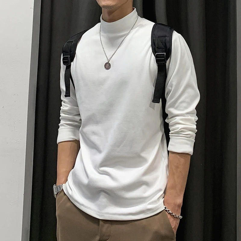 HEARUJOY - Autumn and Winter New Temperament Versatile Commuting Men's Clothing Fashion High Collar Simplicity Solid Color T-shirt