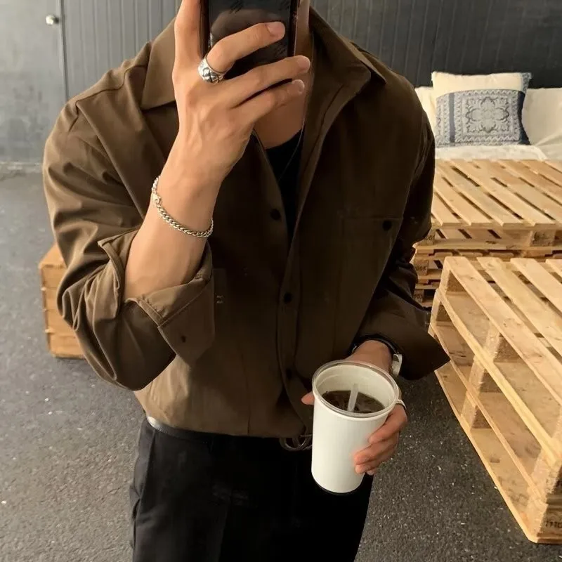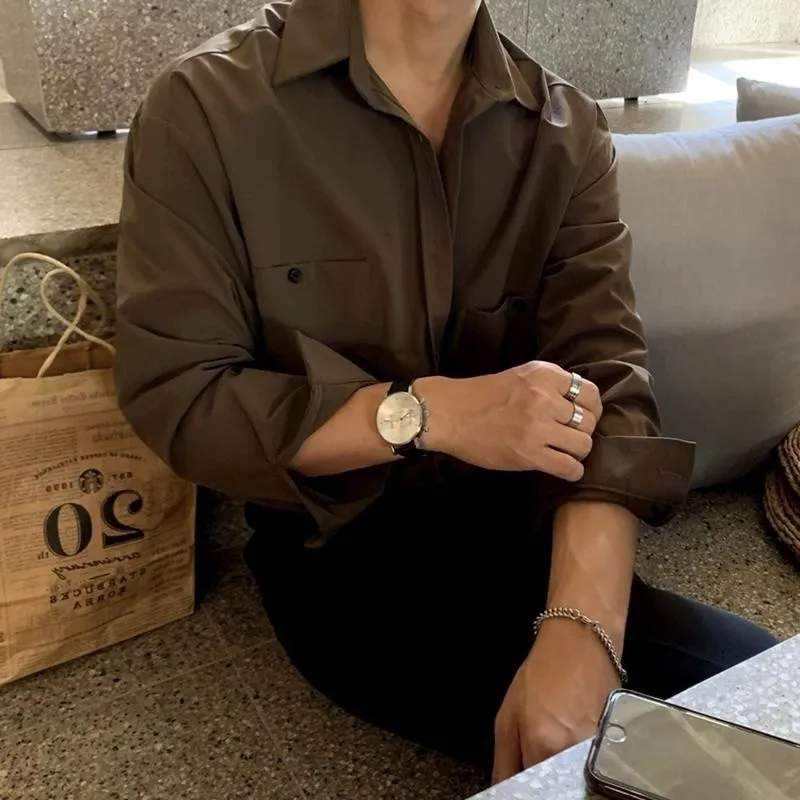 Hearujoy Autumn Clothing Men's Luxury Suit Collar Draped Shirts Retro Leisure Korean Popular Clothes Button-down Long Sleeve Solid Color