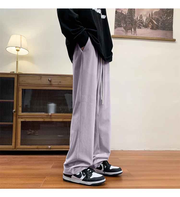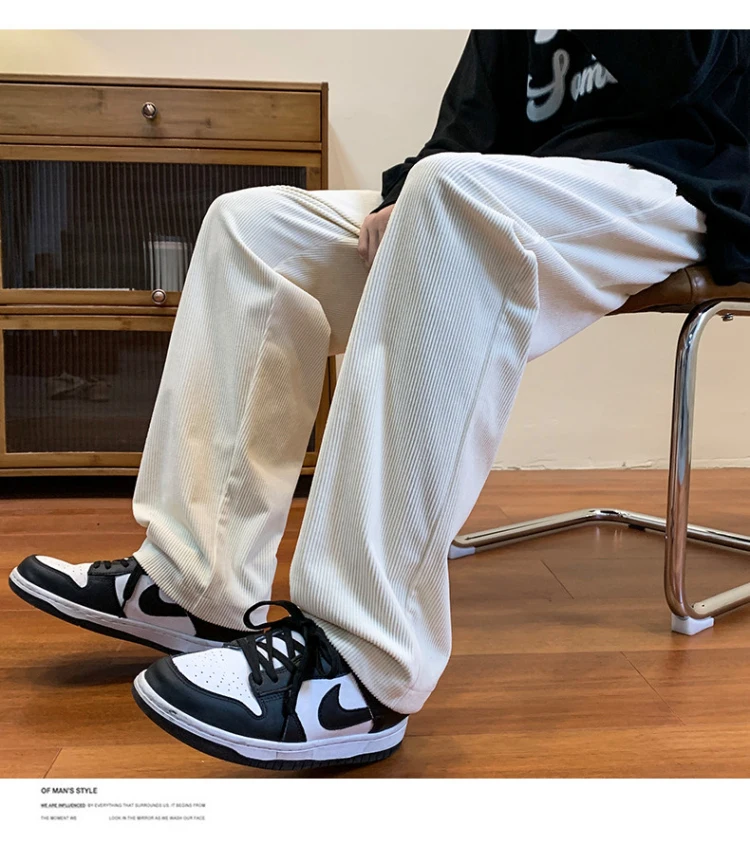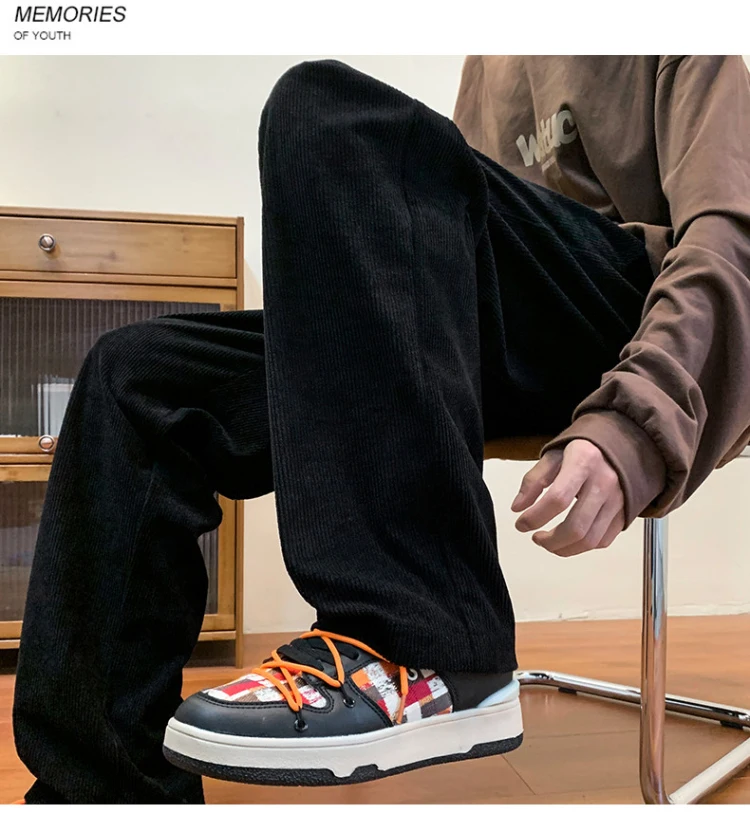 Hearujoy Autumn Corduroy Pants Men Fashion Retro Casual Pants Men Japanese Streetwear Loose Straight Pants Mens Trousers Large Size 4XL