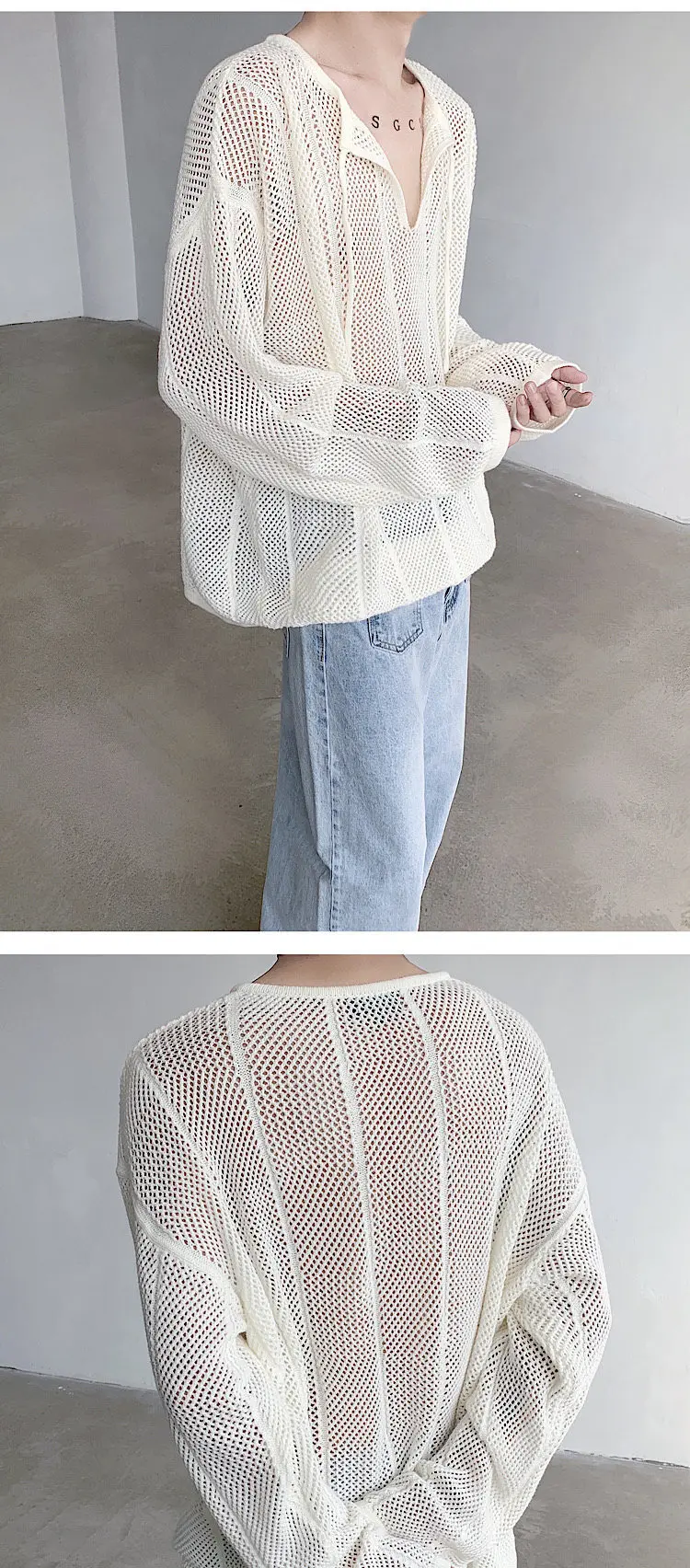 Hearujoy Autumn Knitted T Shirt Men Casual Oversized T Shirt Men Streetwear Korean Loose Long Sleeved T-shirt Men Hollowed Out T Shirt