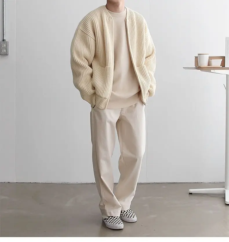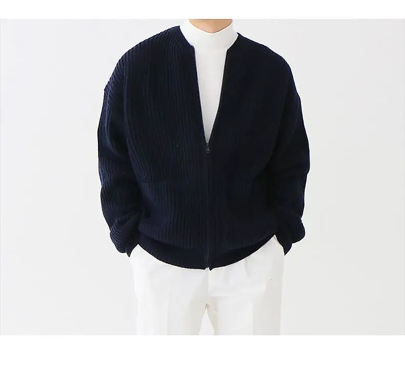 Hearujoy Autumn Korean Elegant Pocket Sweater Jacket High Street Casual Solid Color Zipper Knitted Cardigan Men Simple Zipper Cardigan