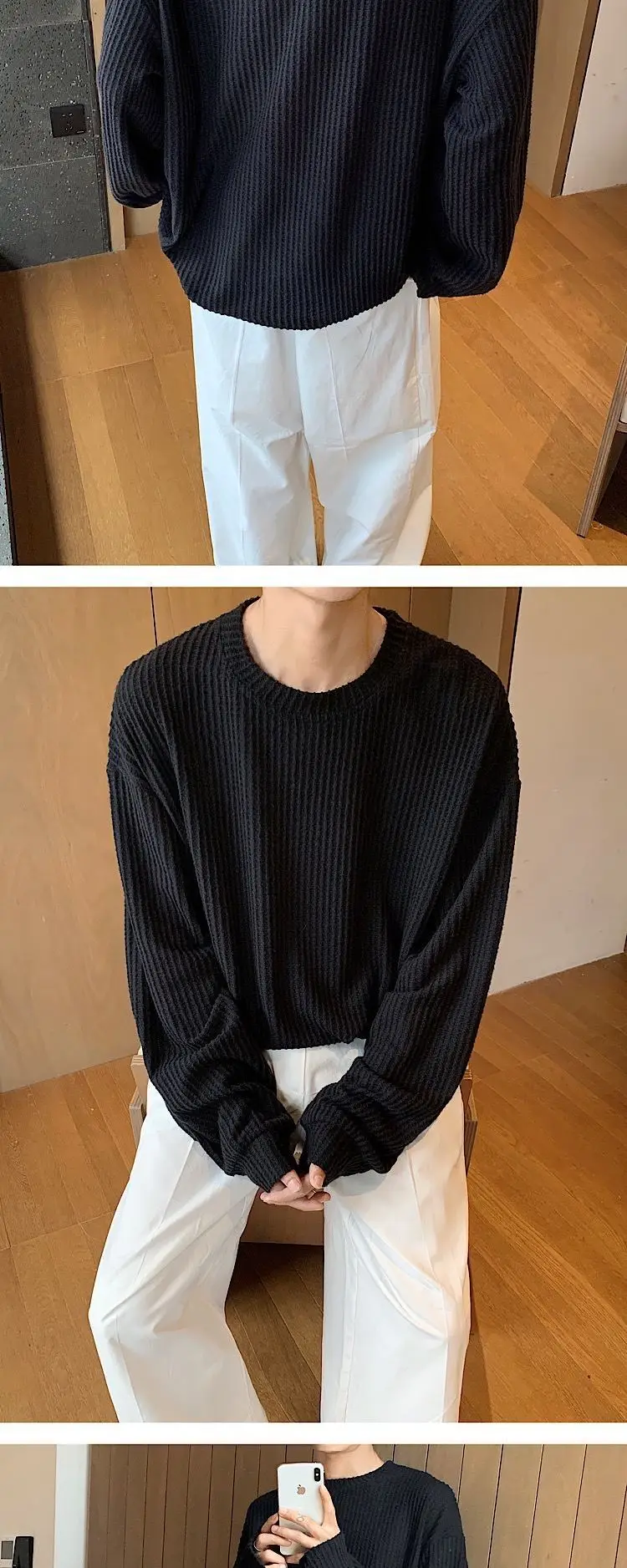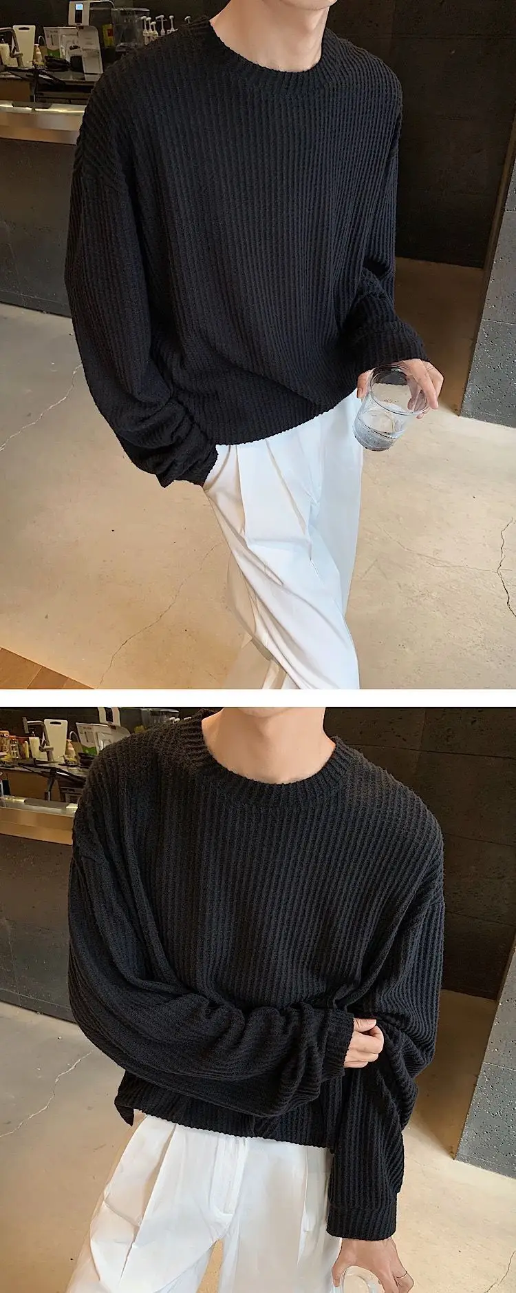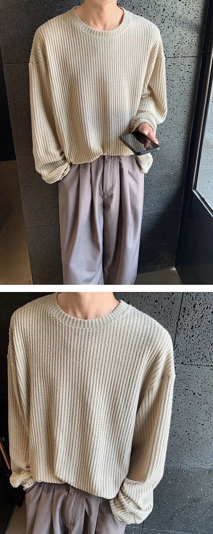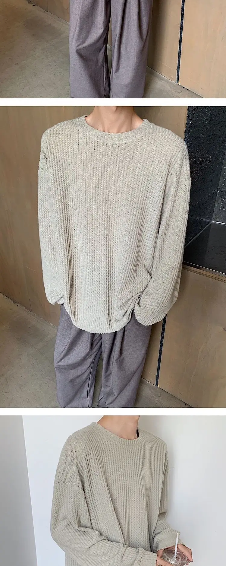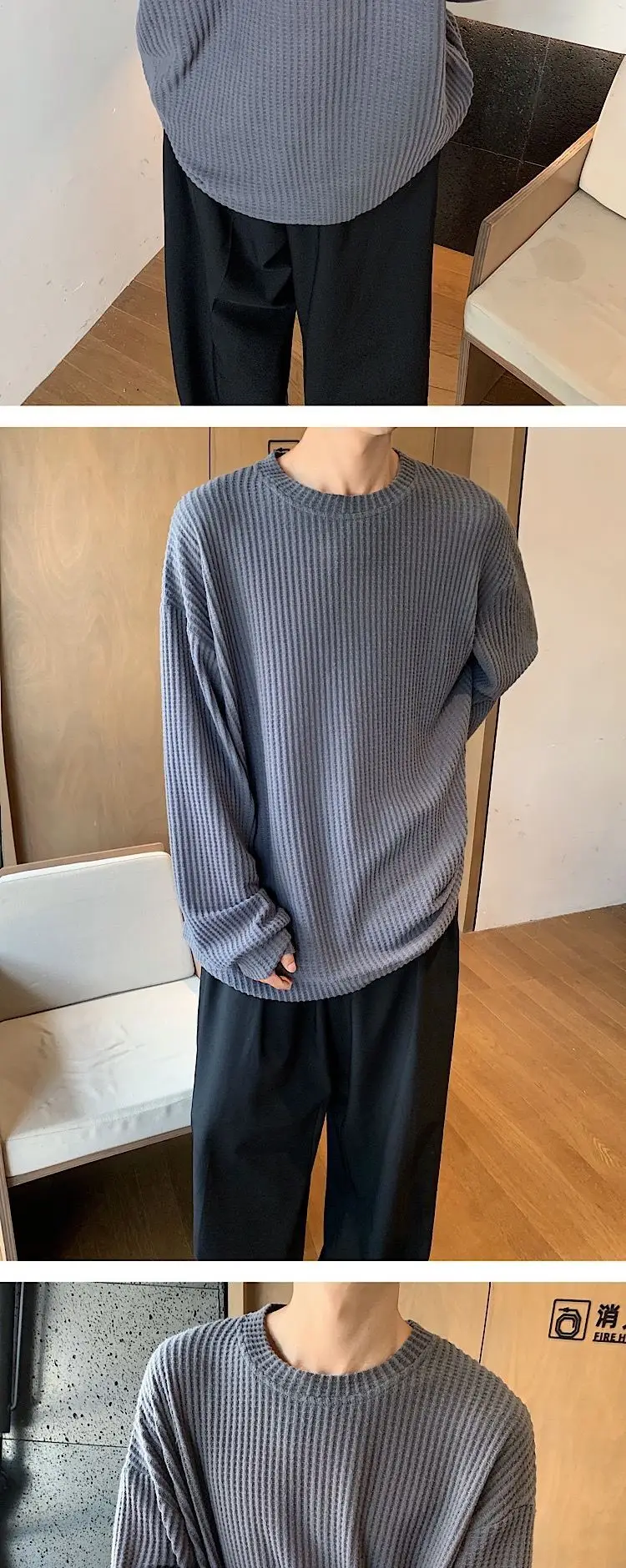 Hearujoy Autumn Long Sleeved T-shirt Men Oversized Casual Checkered T Shirt Men Streetwear Korean Loose Round Neck T Shirt Mens Top