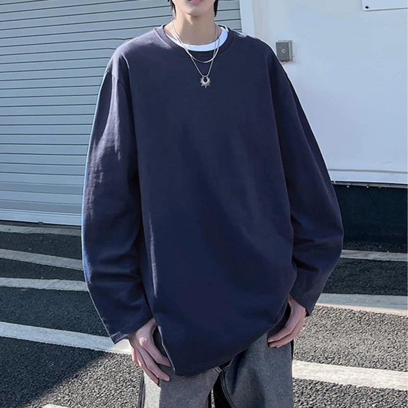 HEARUJOY - Autumn Men's Long Sleeve Cotton T Shirt Fashion Solid Loose T Shirts Mens Oversized Hip Hop Casual Mens Streetwear Top Tees