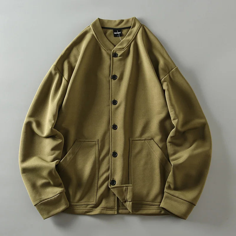 HEARUJOY - Autumn Men's Sold Color Bomber Jacket Double-sided Knitted Japanese Men's Sports Leisure Baseball Collar Single-breasted Jacket