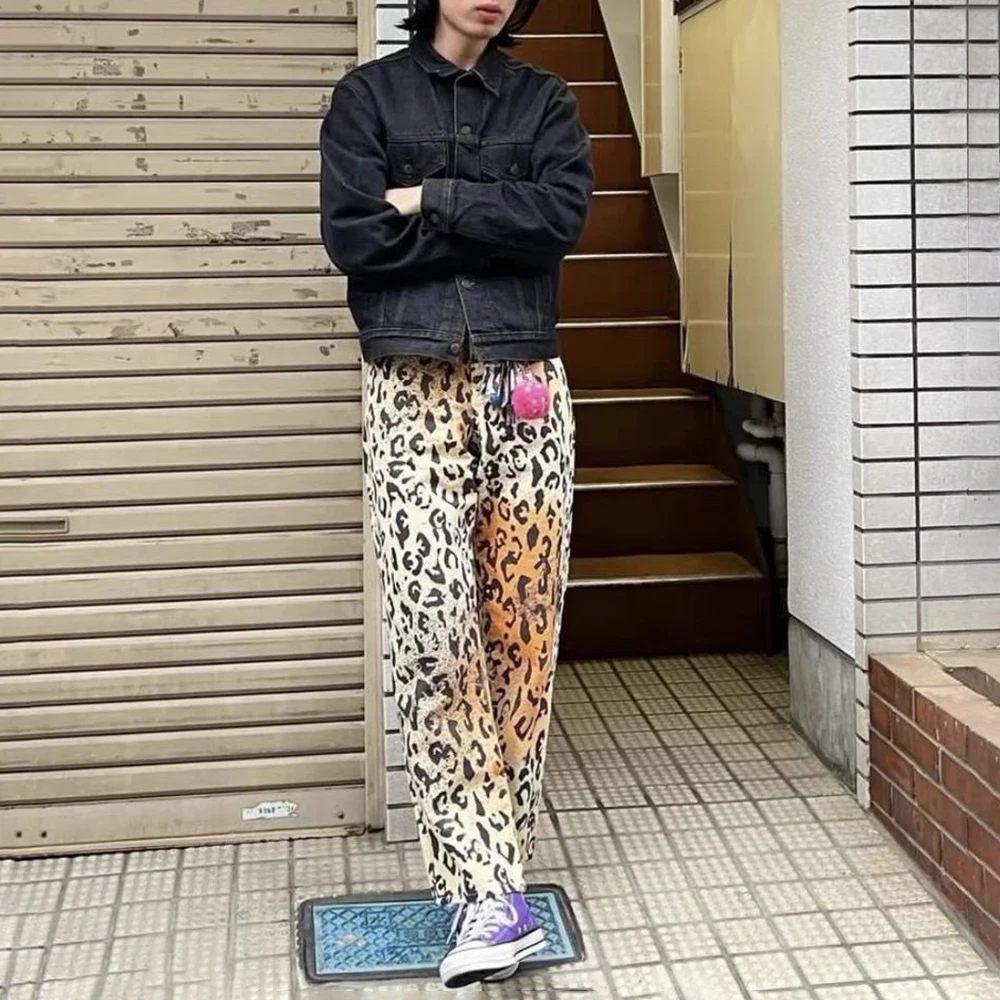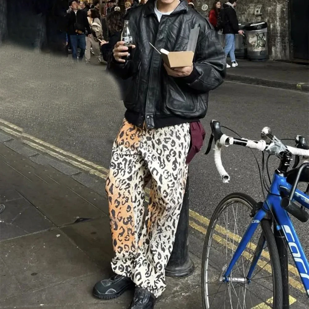 Hearujoy Autumn Mens Y2k Nightclub Leopard Print Straight Jeans New Printed Zipper Fashion Casual Comfortable Party Trousers For Men