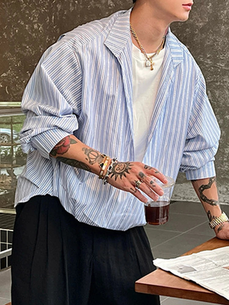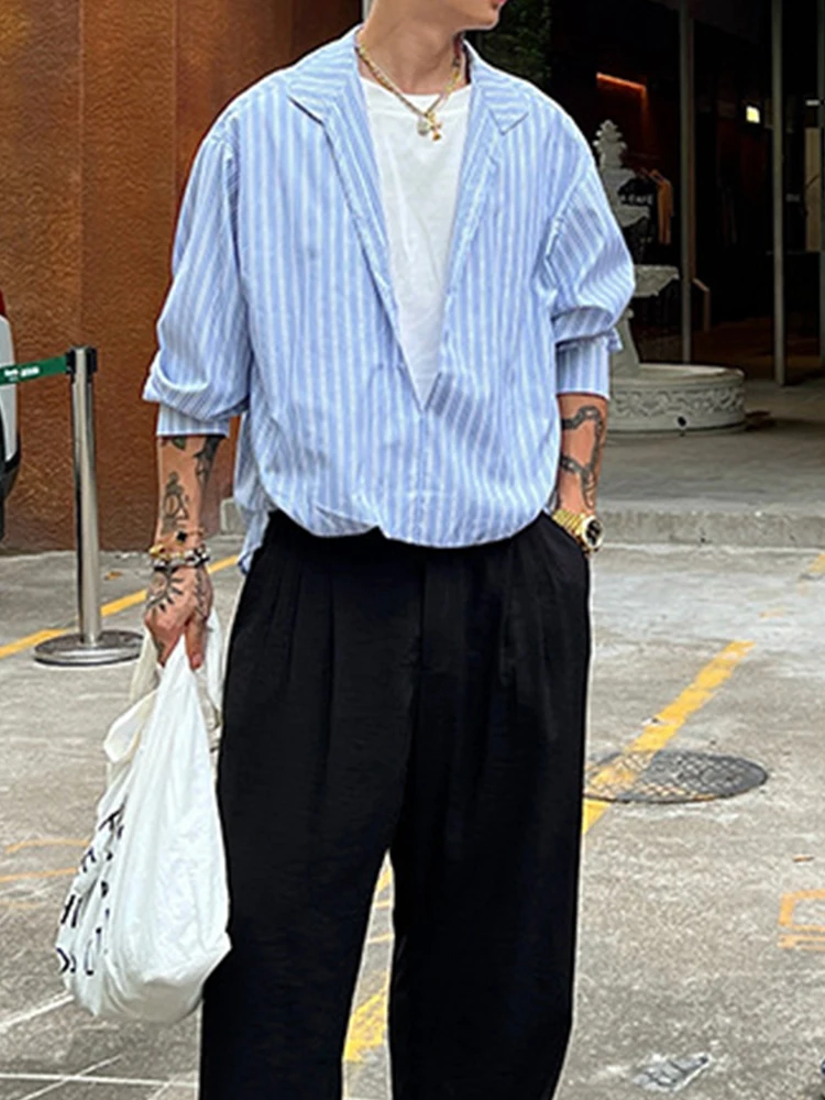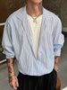 HEARUJOY - Autumn New Casual Mens Shirts Striped Printing Long Sleeve Lapel Shirts For Men's Fashionable V Neck Fake Two Piece Shirt