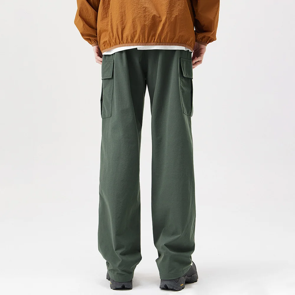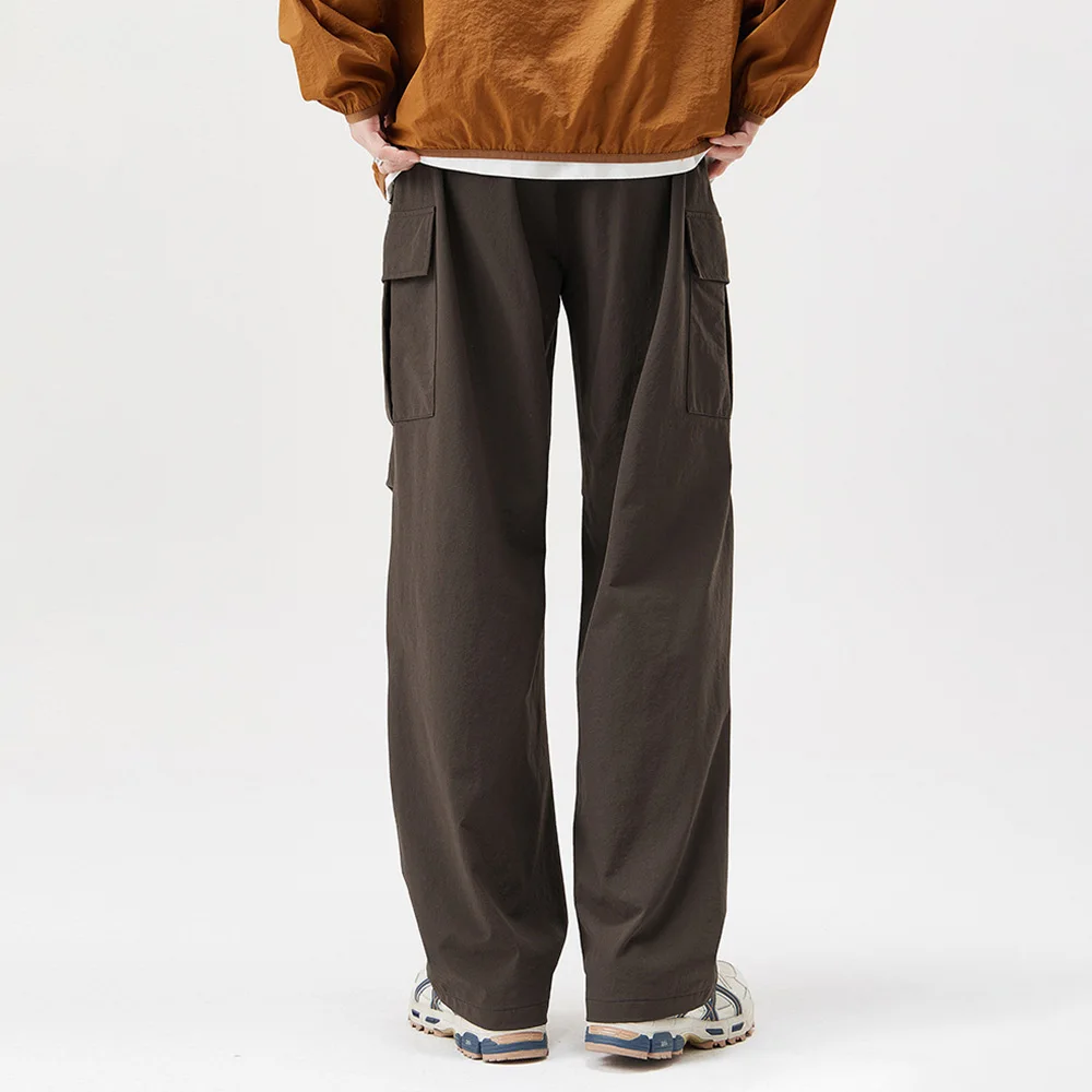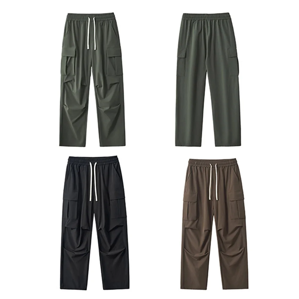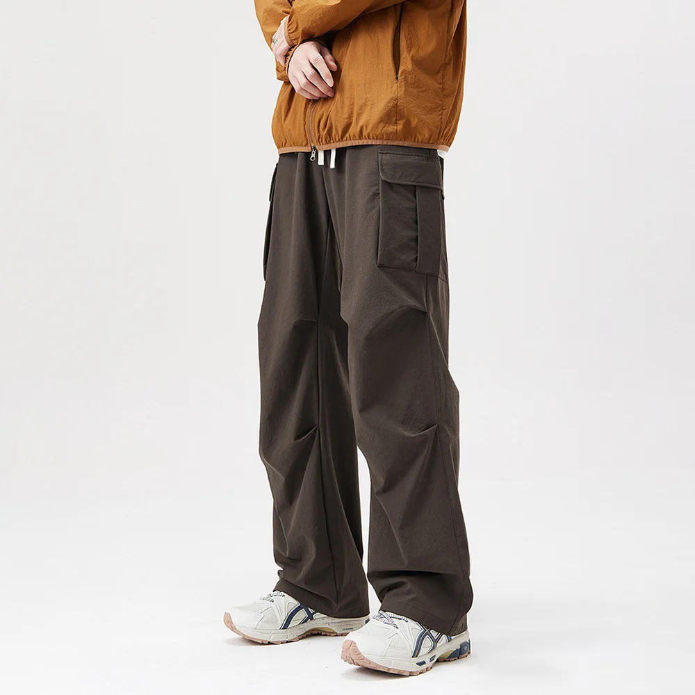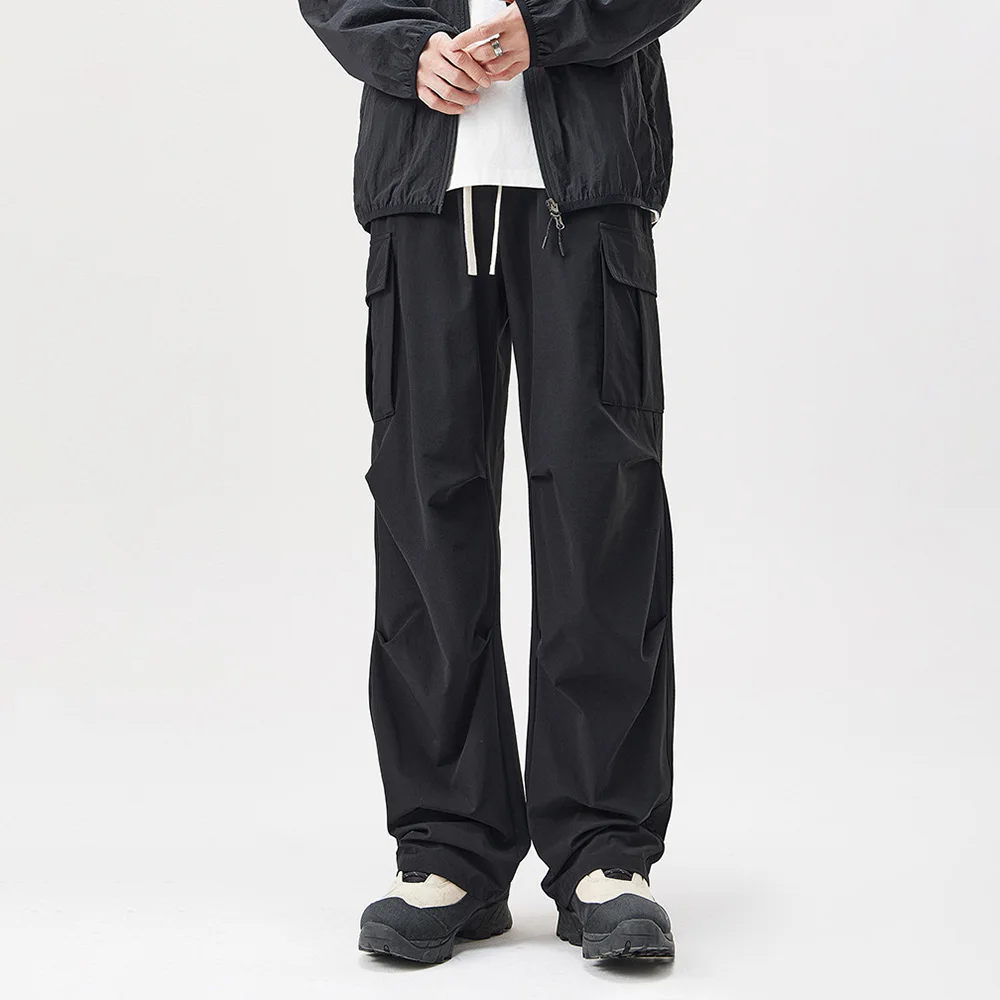 Hearujoy Autumn New Fashion Pleated Paratrooper Overalls Pants Men Outdoor Sports Big Pocket Mountain Wide Leg Casual Mens Pants