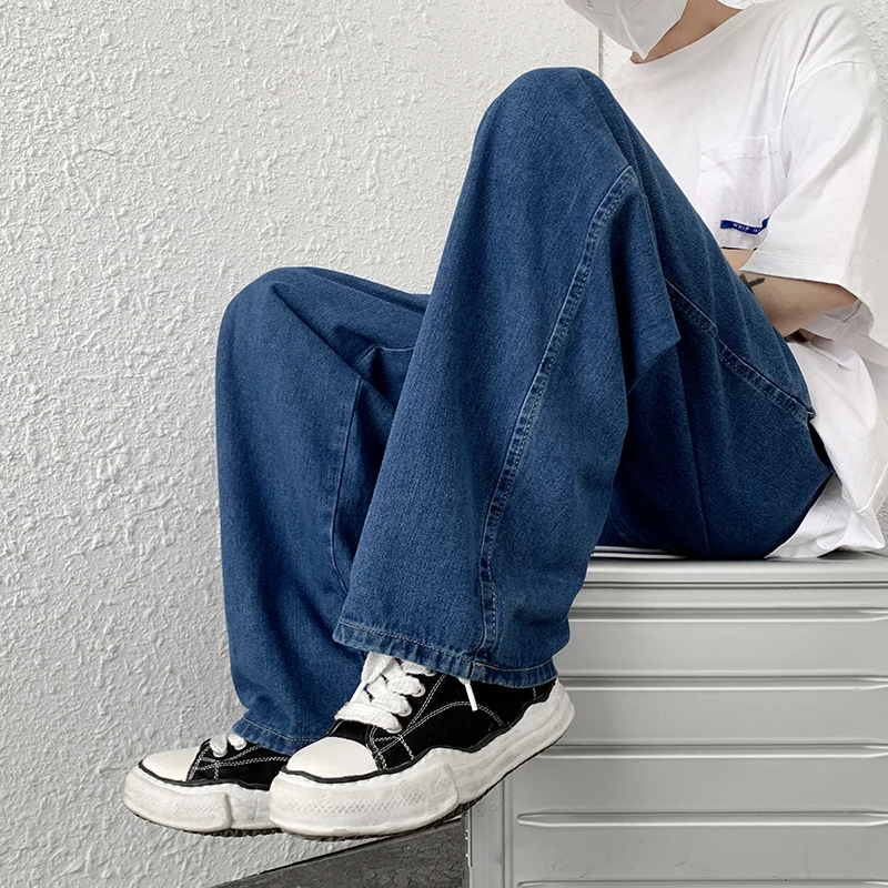 Hearujoy Autumn New Men's Baggy Jeans Korean Street Hip-hop Loose Straight Wide-leg Pants Classic Black Denim Casual Trousers S-3XL