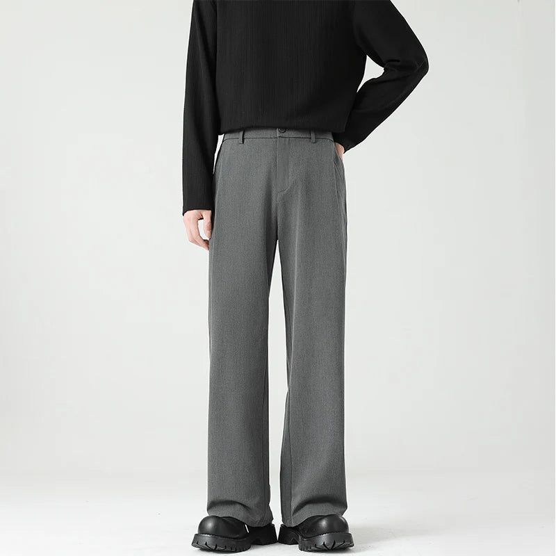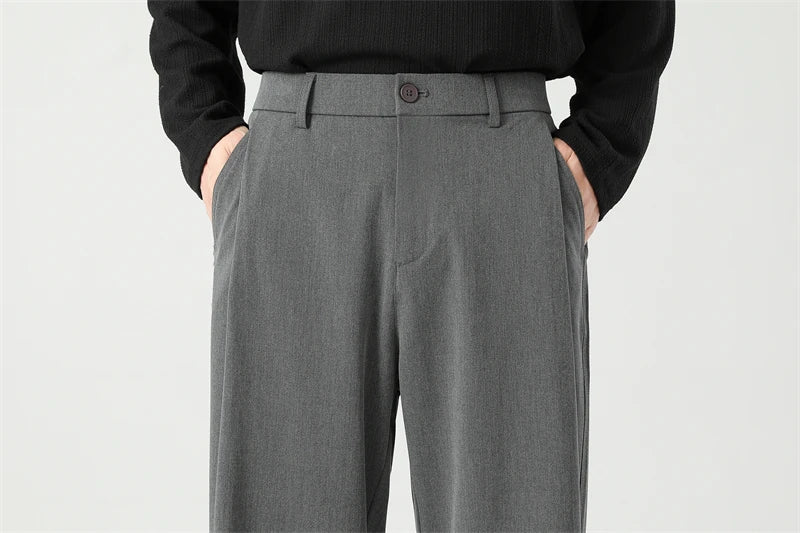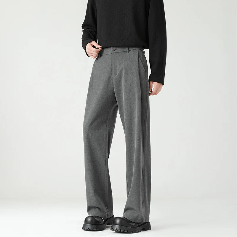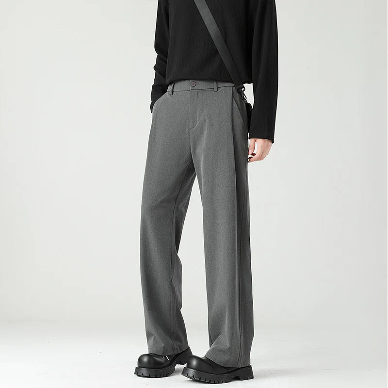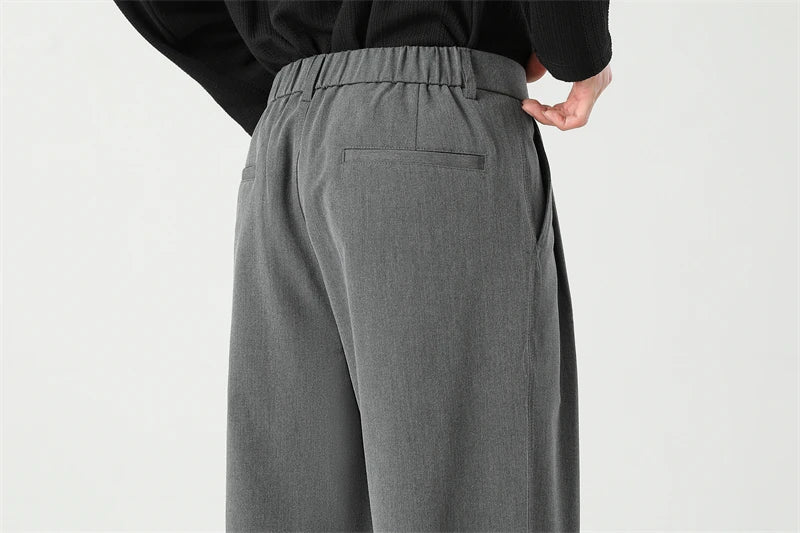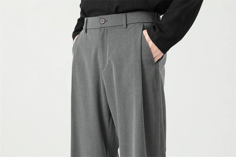 HEARUJOY - Autumn New Men's Black Gray Suit Pants Loose Straight Drape Solid Color Elastic Business Work Casual Trousers Fashion Clothing