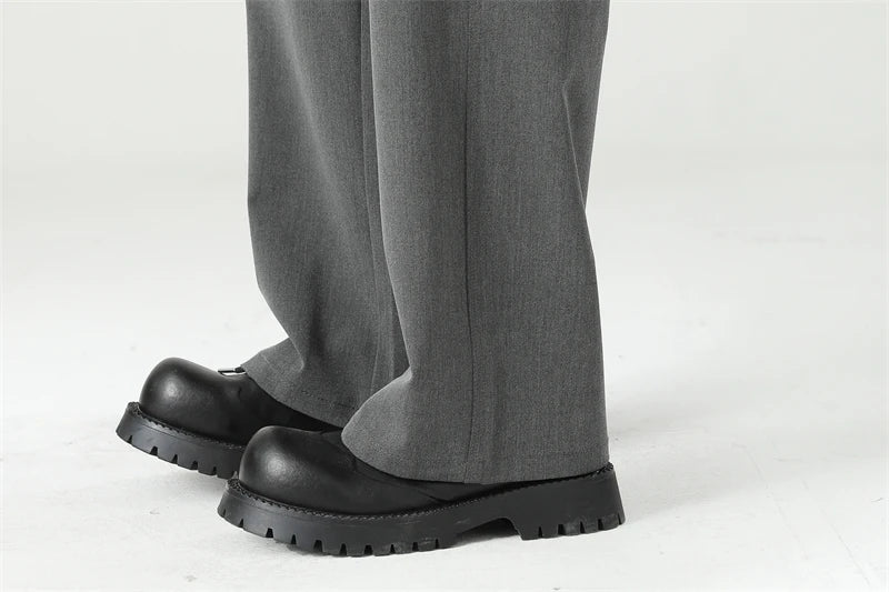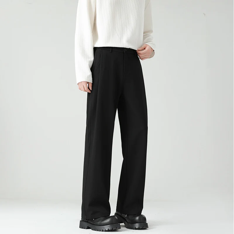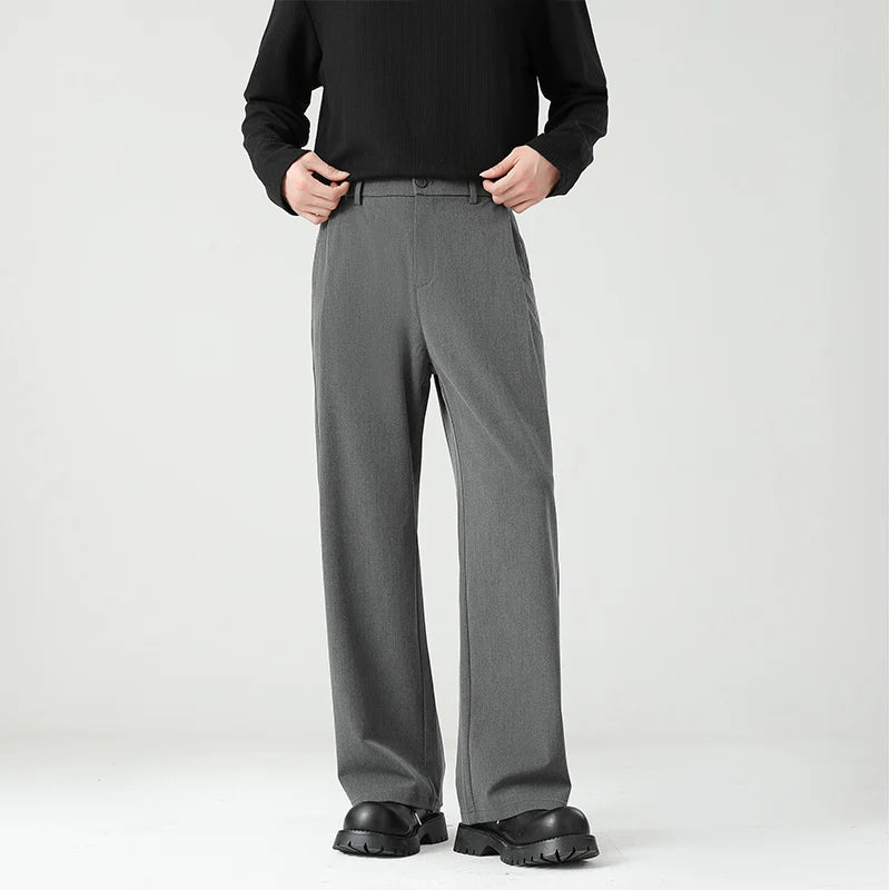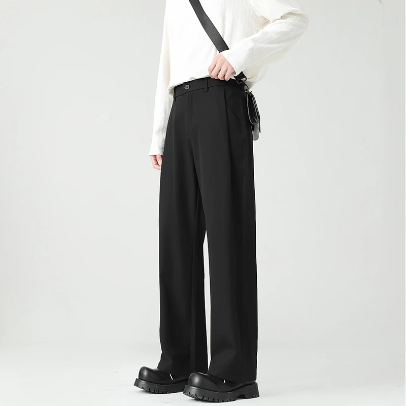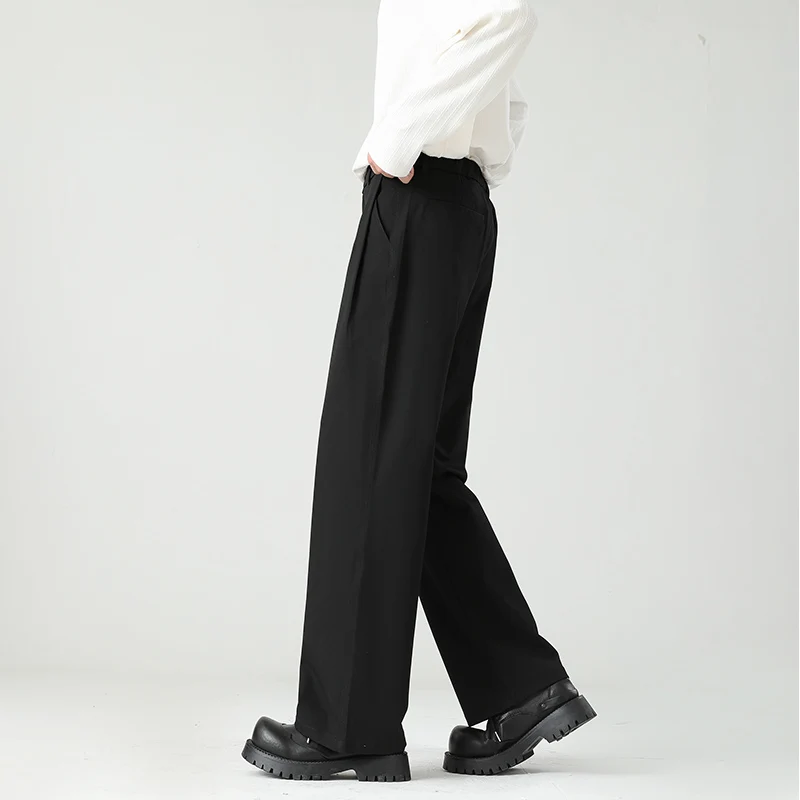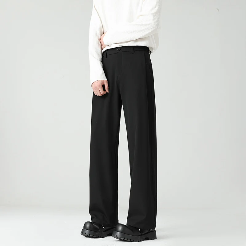 HEARUJOY - Autumn New Men's Black Gray Suit Pants Loose Straight Drape Solid Color Elastic Business Work Casual Trousers Fashion Clothing