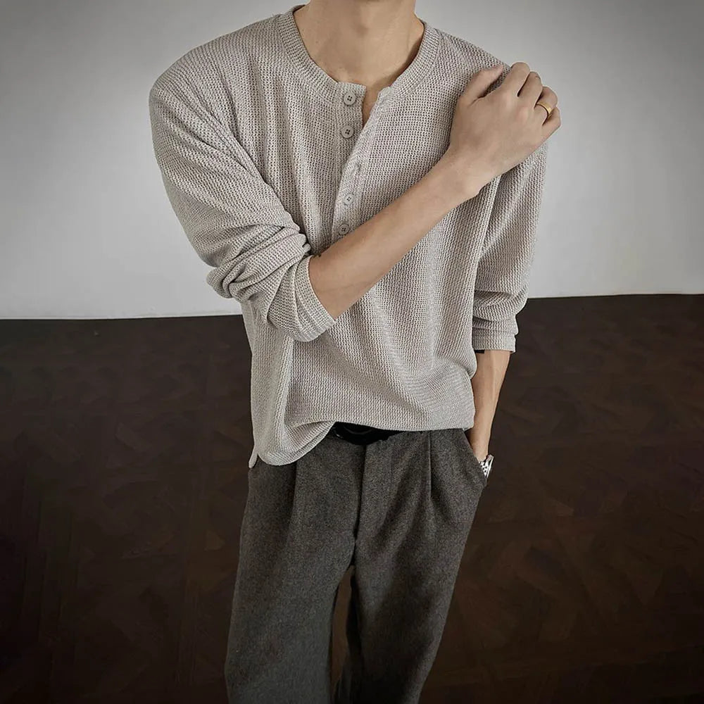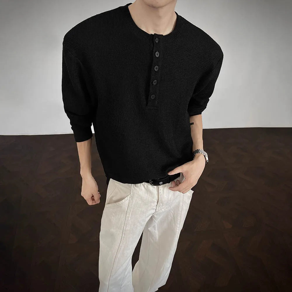 HEARUJOY - Autumn New Men's Knitted Long-Sleeved T-Shirt American Retro Fashion Trend Leisure High Street Loose Simple Men's Tops