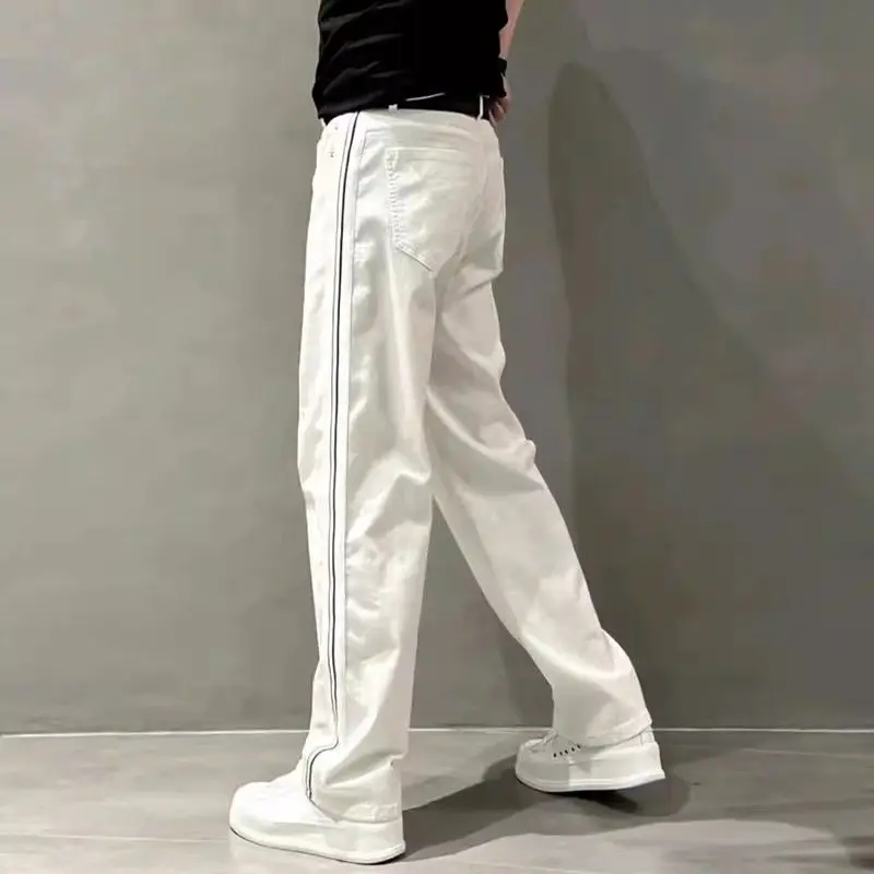 HEARUJOY - Autumn New Style Jeans Men's Trendy Loose Side Strip Webbing Straight Pants for Youth Versatile Washing Wide-leg