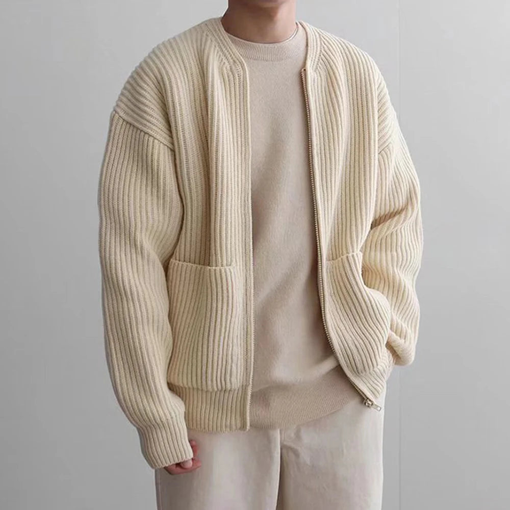 Hearujoy Autumn Outerwear Men's Casual Solid Knitted Jacket Japanese Cardigan Sweater Trendy Streetwear Zipper Long Sleeve Knitted Coat