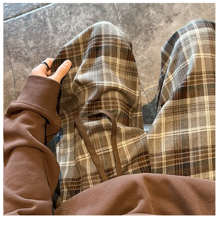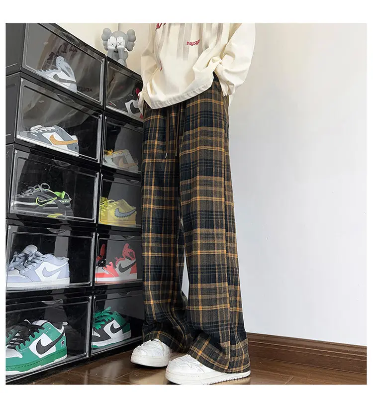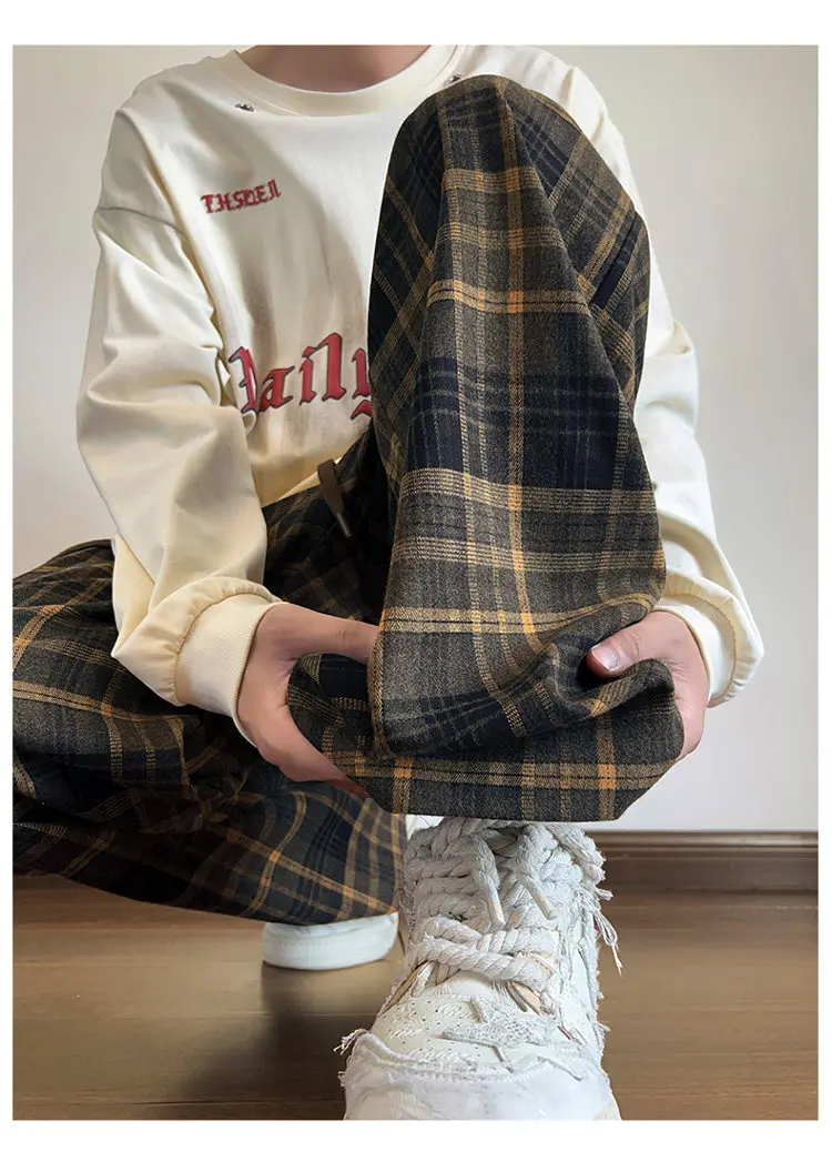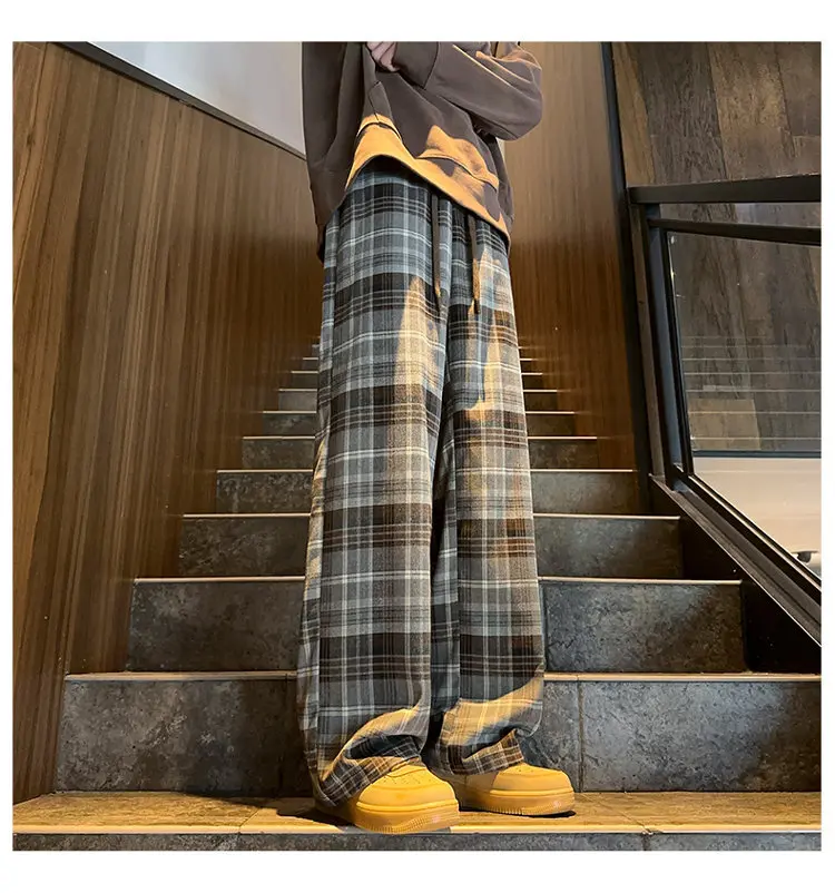 Hearujoy Autumn Plaid Pants Men Oversized Fashion Retro Casual Pants Men Streetwear Hip-hop Loose Wide Leg Pants Mens Vintage Trousers