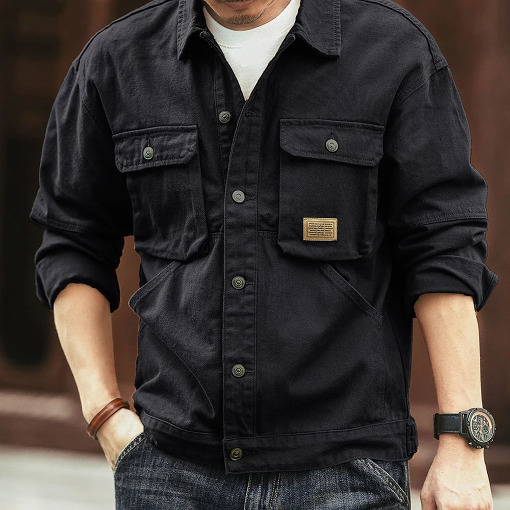Hearujoy Autumn Winter American Street Solid Workwear Thickened Jacket Mens Multi-Pocket Pilot Retro Loose Long-Sleeved Amekaji Jacket