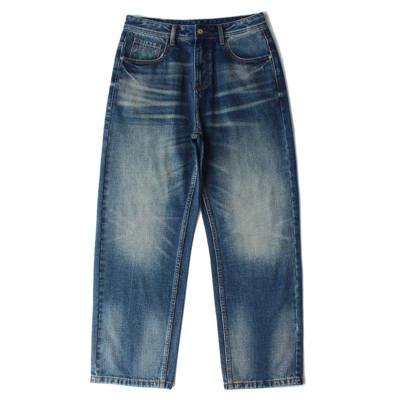 HEARUJOY - Autumn Winter American-style Blue Jeans for Men Straight Leg Thick Warm Wide-Leg Loose Fit Trendy Casual Washed Denim Pants