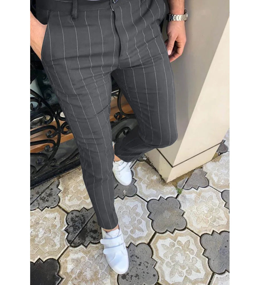 HEARUJOY - Autumn Winter Male Striped Striped Printing Pencil Pants Homme Trend Fashion All-match Business Casual Trousers Men's Clothing