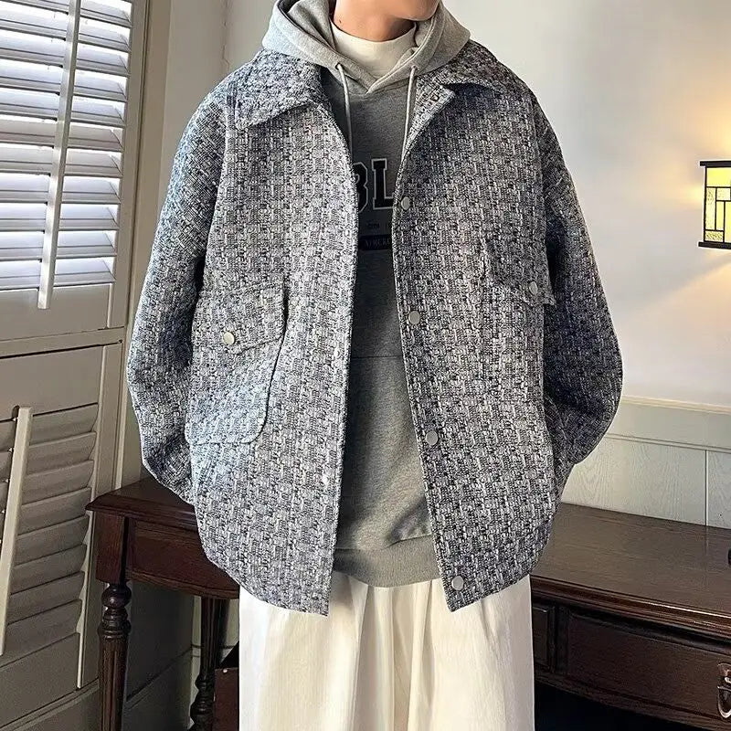 HEARUJOY - Autumn Winter New Fashion Turn-down Collar Long Sleeve Solid Jackets Men's Clothing Button All-match American Style Vintage Tops