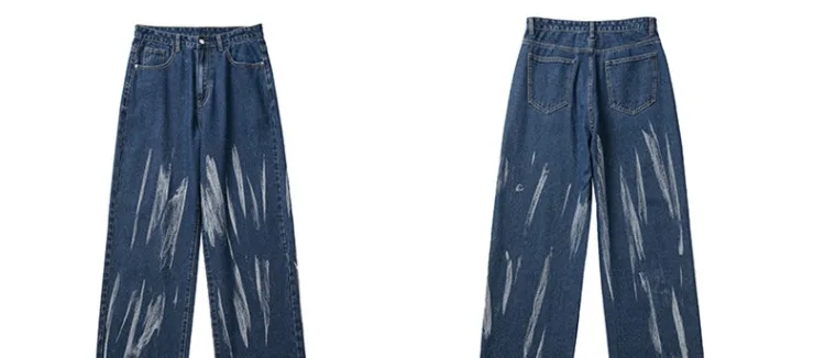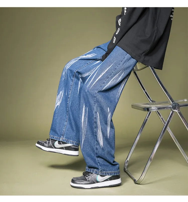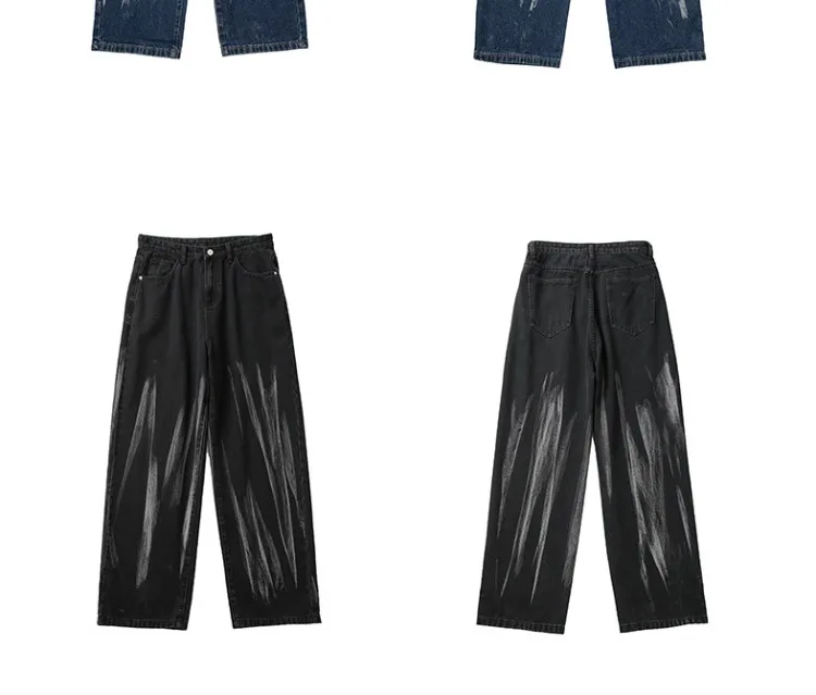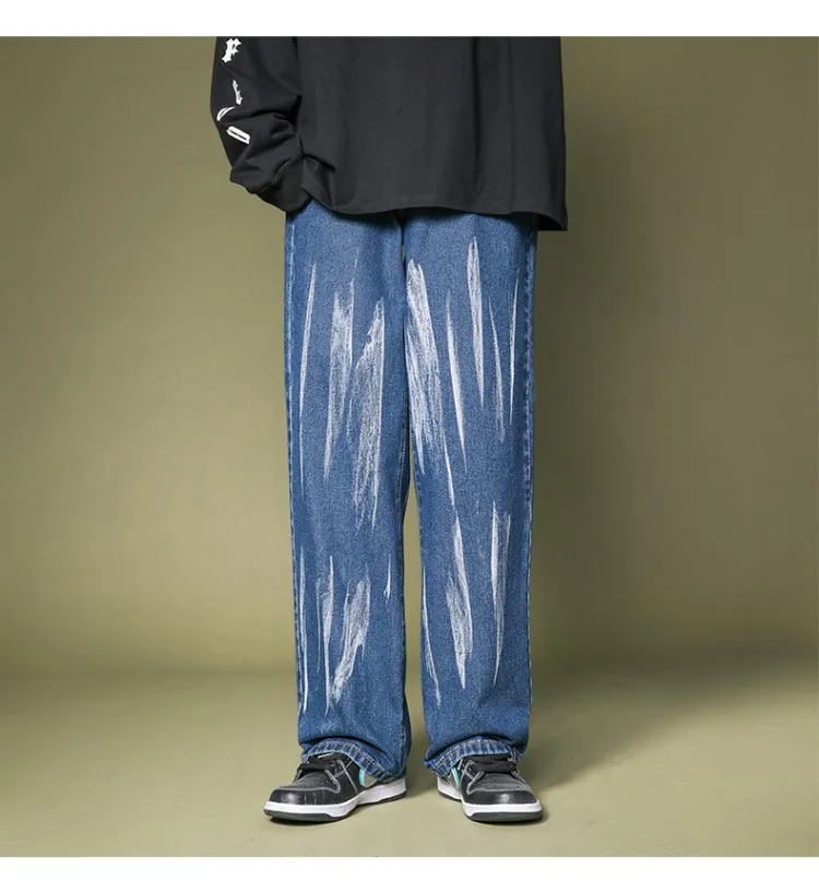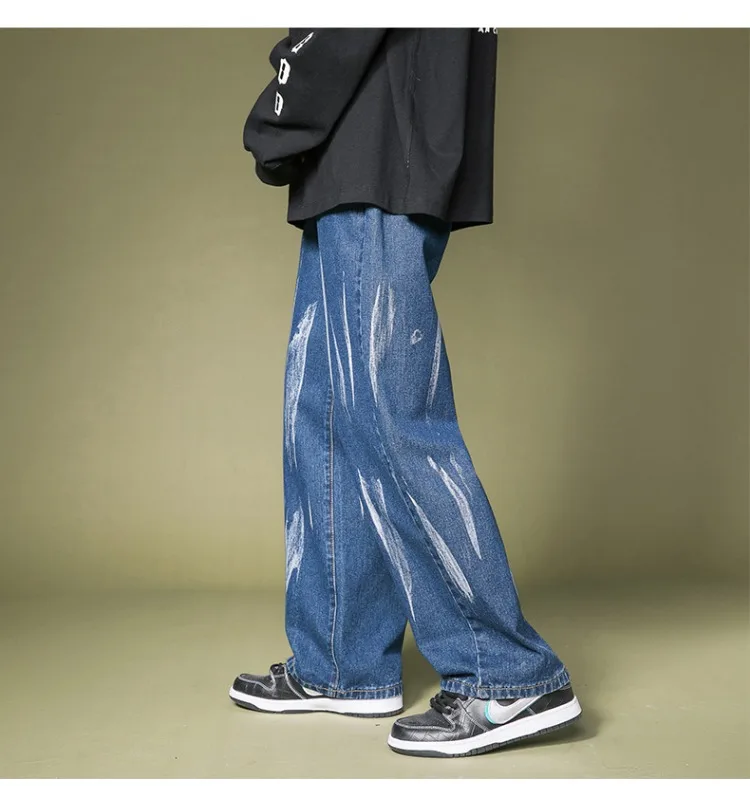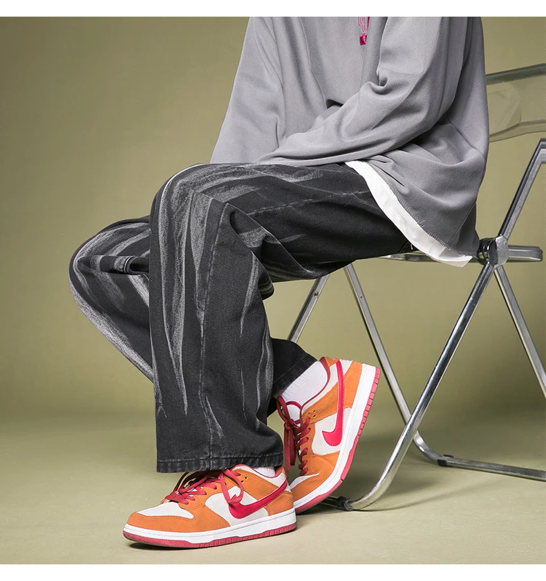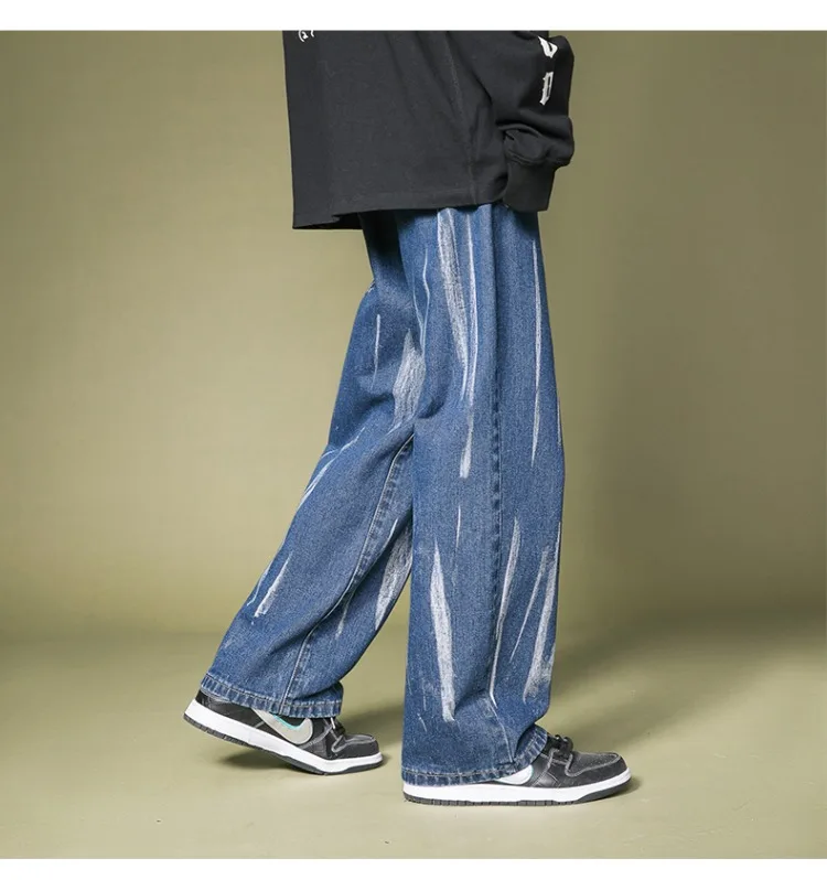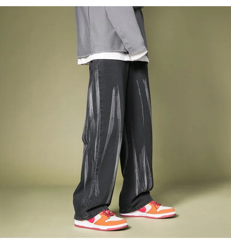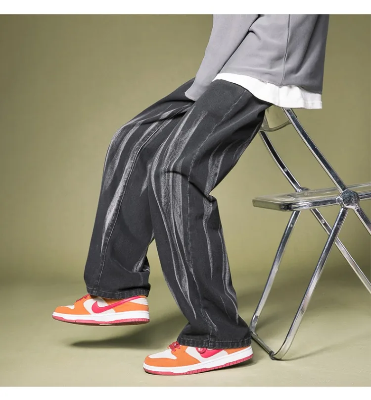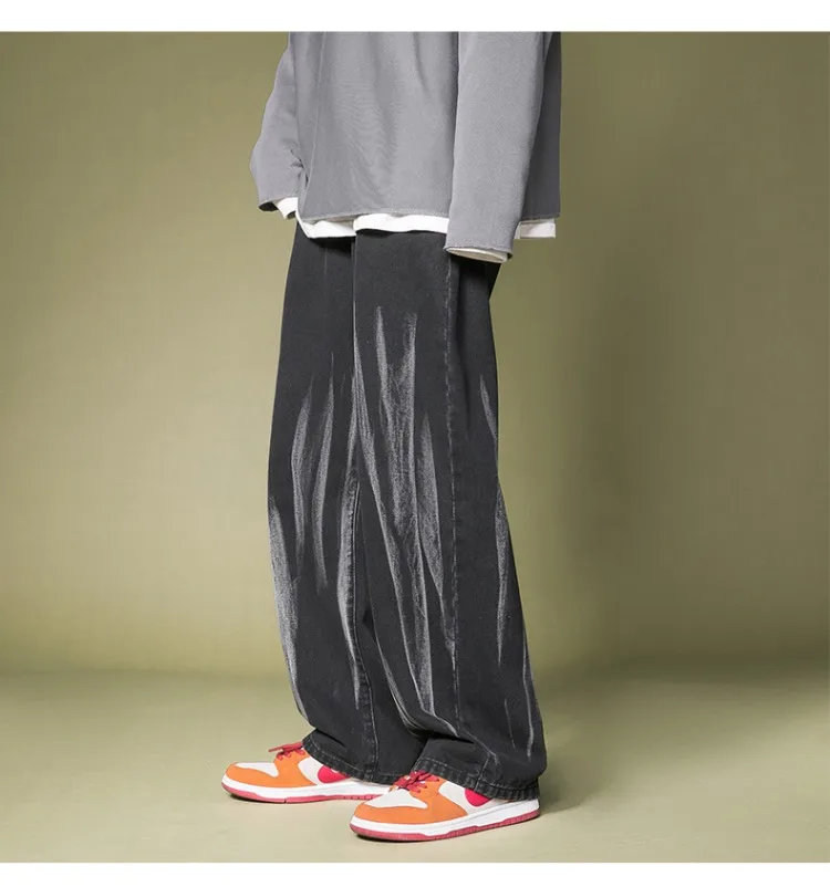 Hearujoy Autumn Winter New Straight Jean Pants Korean Style Men's Tie-dye Wide-leg Jeans Trousers Unisex Streetwear Casual Pants