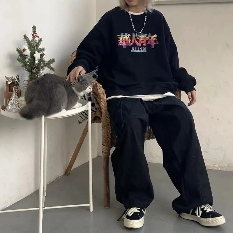 Hearujoy Baggy Black Cargo Pants for Men Khaki Cargo Trousers Male Harajuku Loose Casual Autumn Japanese Streetwear Hip Hop Retro