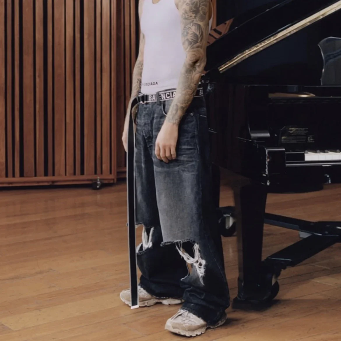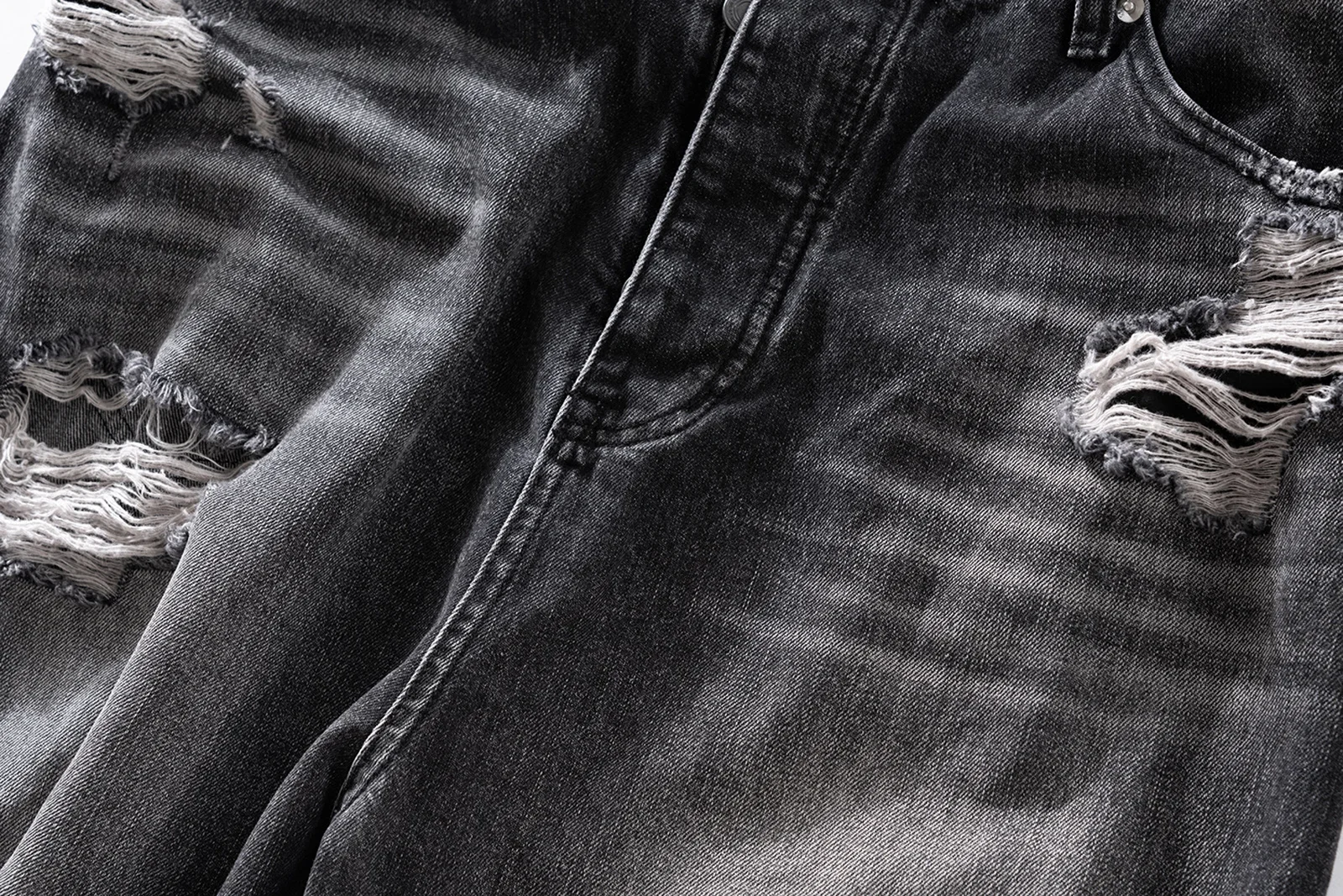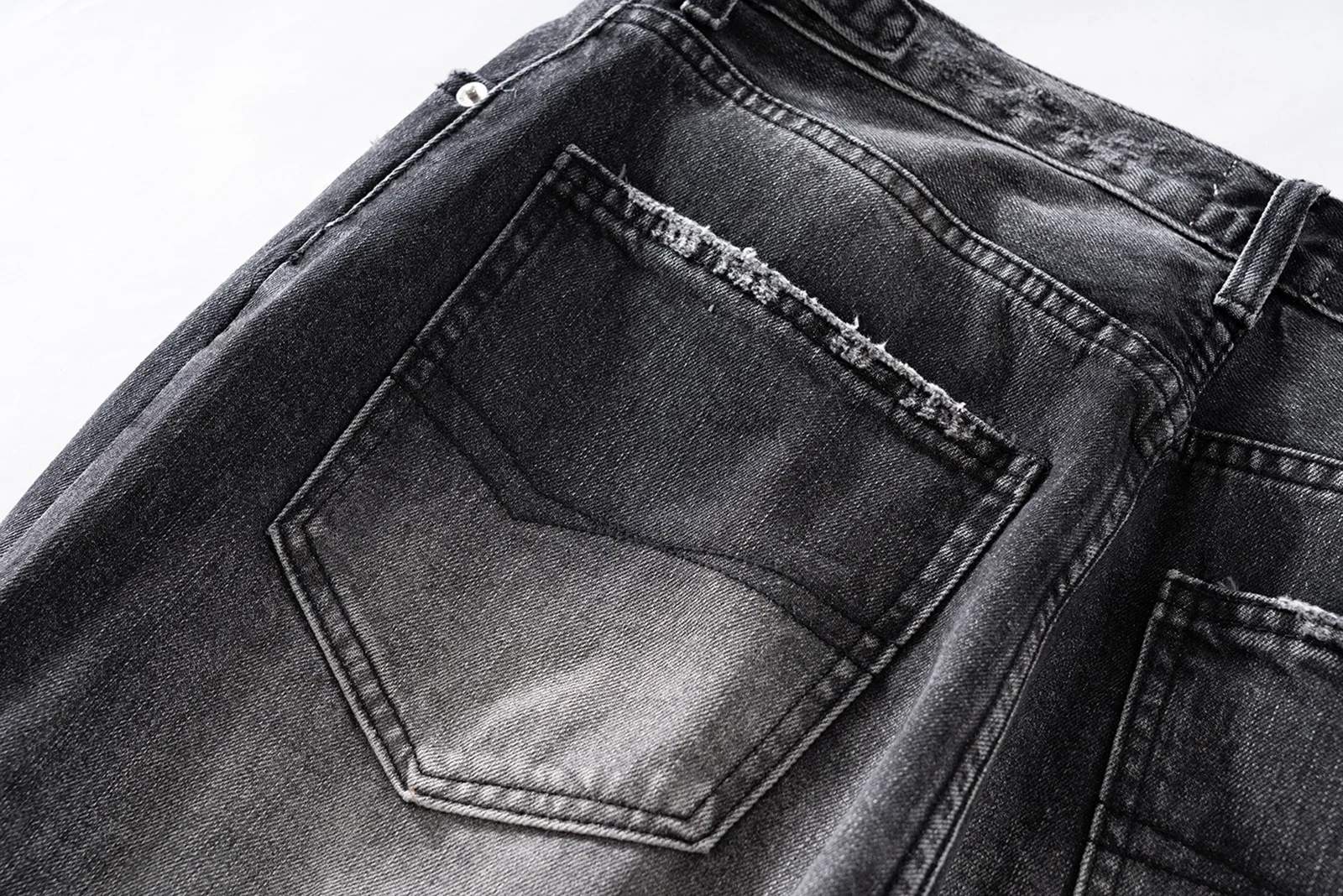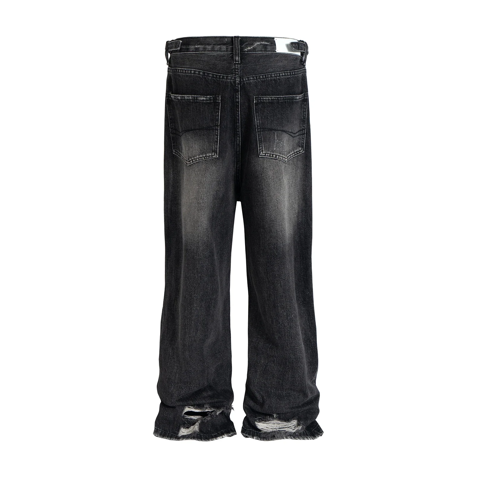 Hearujoy Baggy Damaged Hole Frayed Wide Leg Jeans for Men and Women Straight High Street Ripped Denim Trousers Oversized Cargo Pants
