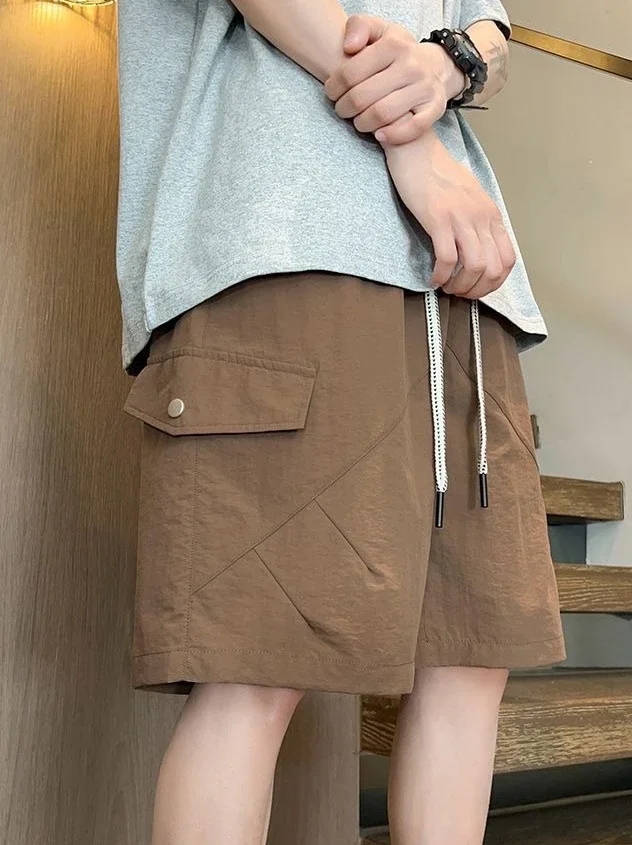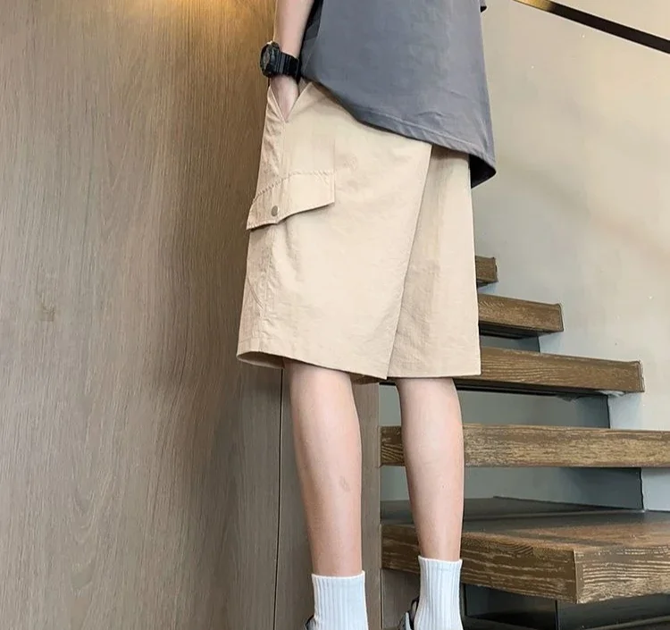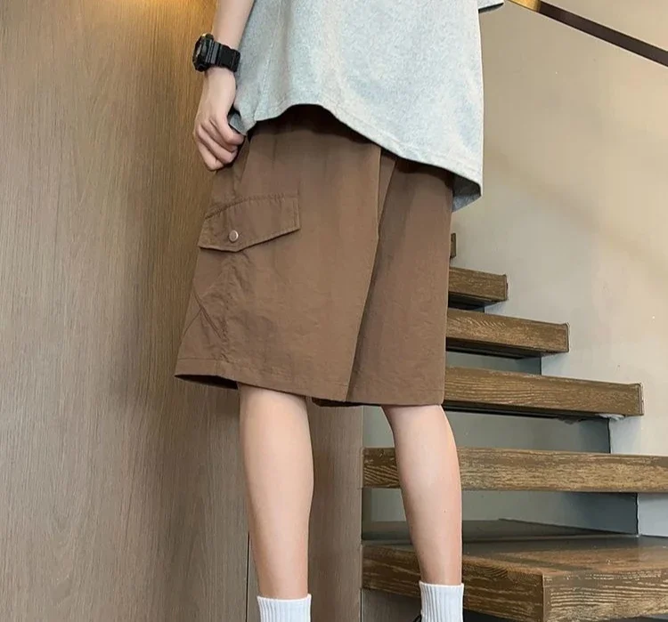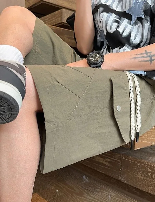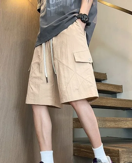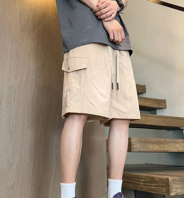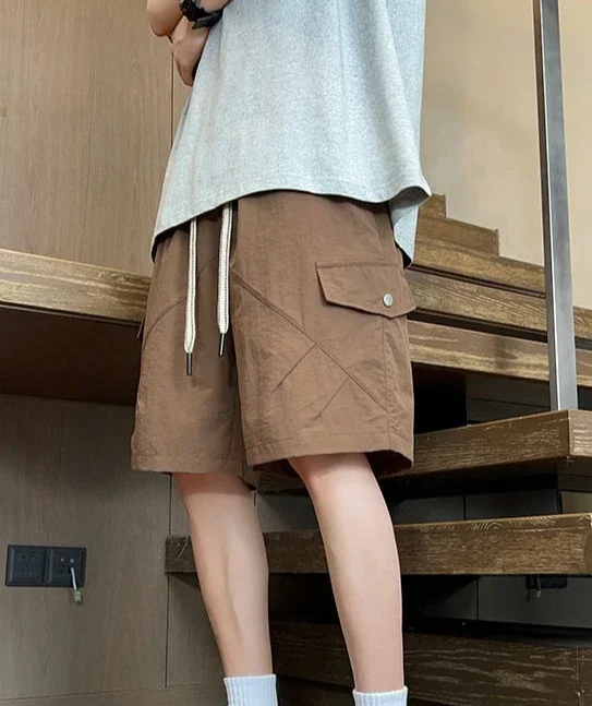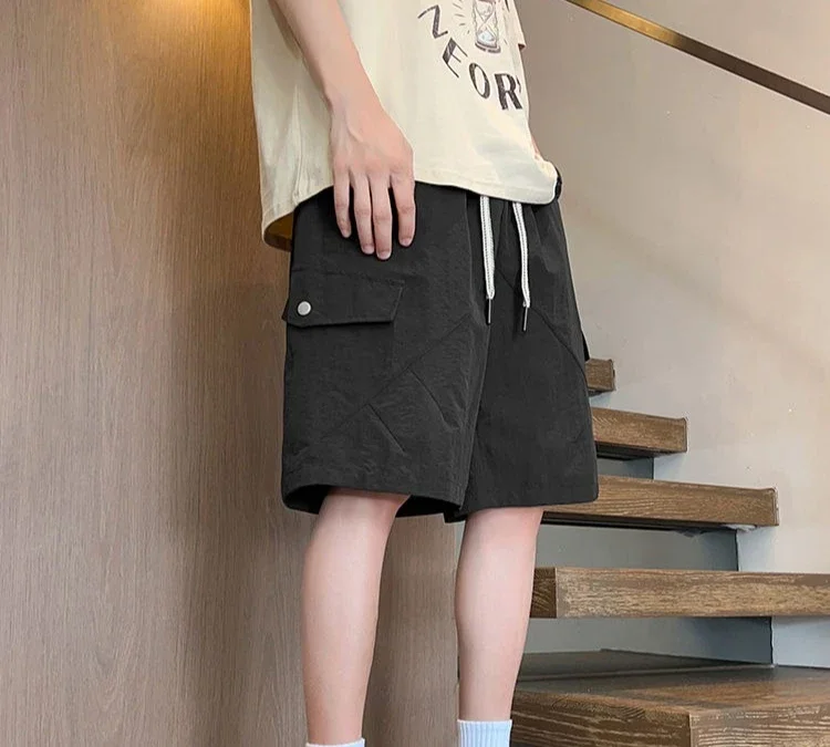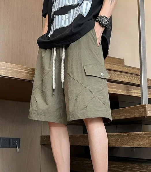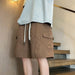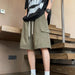 HEARUJOY - Baggy with Draw String Half Elastic Waist Mens Cargo Shorts Solid Loose Pockets Wide Short Pants for Men Long Bermuda New in Y2k
