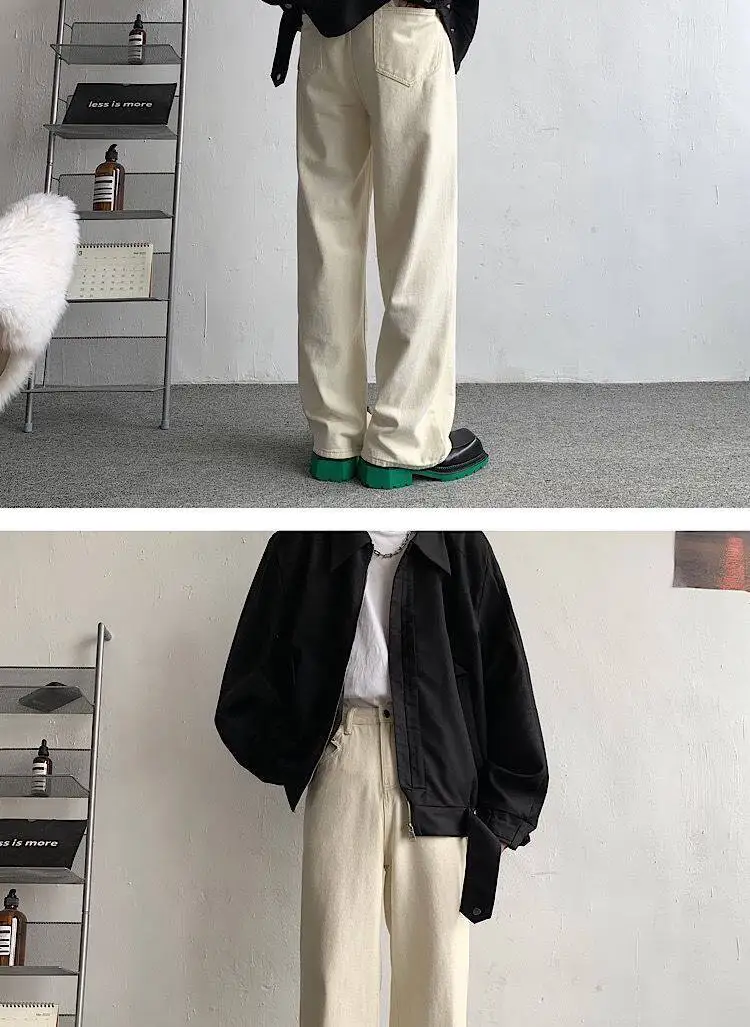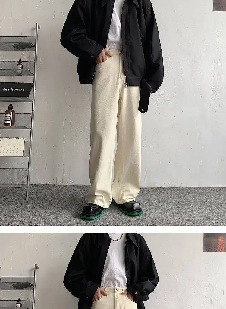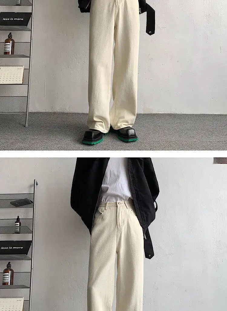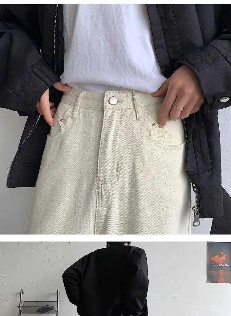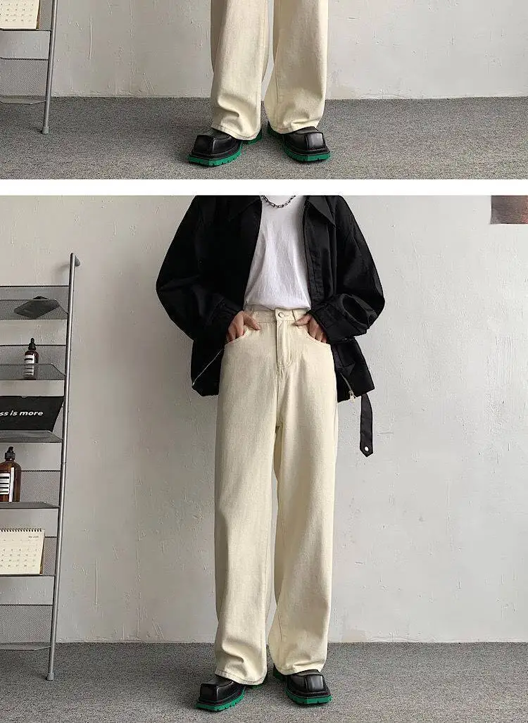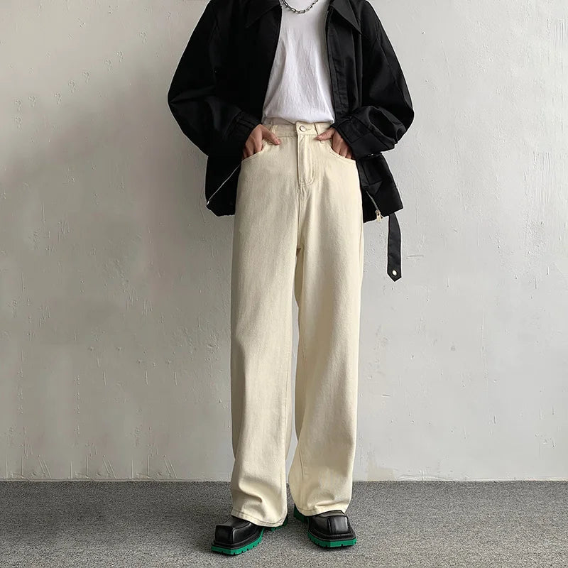HEARUJOY - Beige Baggy Jeans Men Fashion Casual Oversized Wide Leg Jeans Men Streetwear Korean Loose Straight Denim Pants Mens Trousers