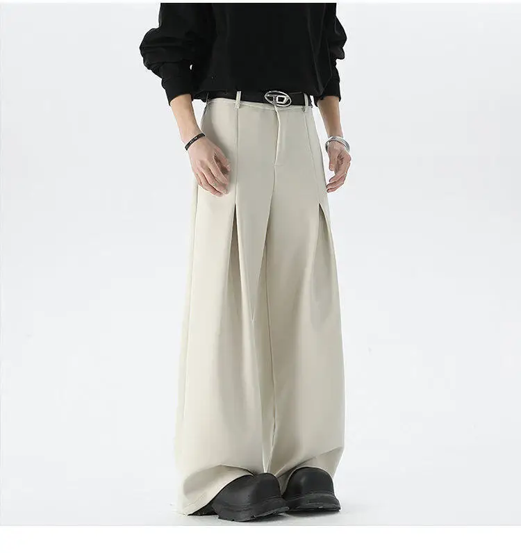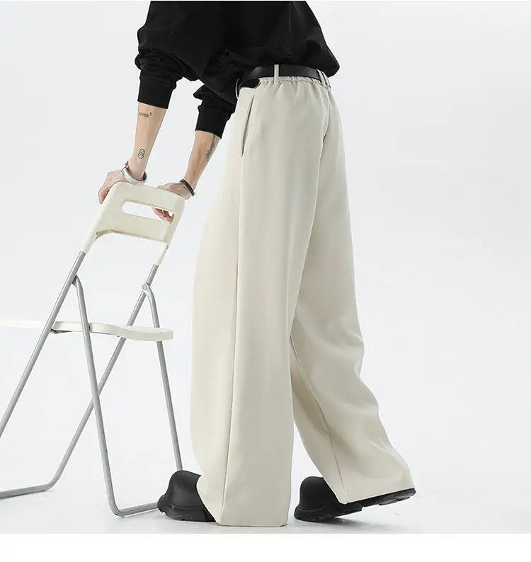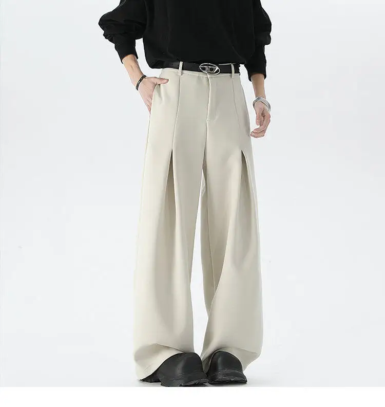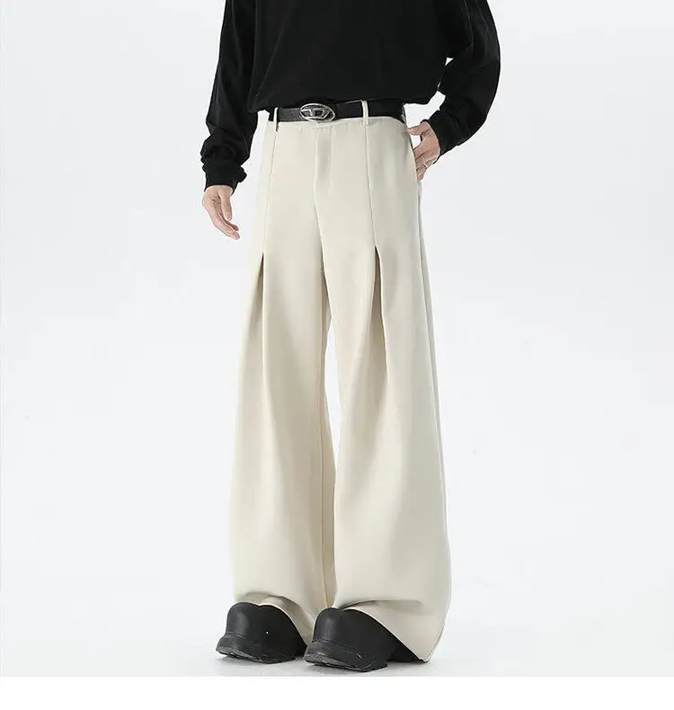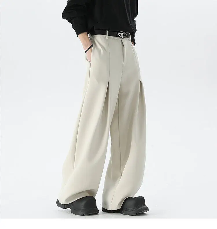 HEARUJOY - Beige Suit Pants Men Oversized Fashion Society Mens Dress Pants Korean Loose Wide Leg Pants Mens Office Formal Black Trousers