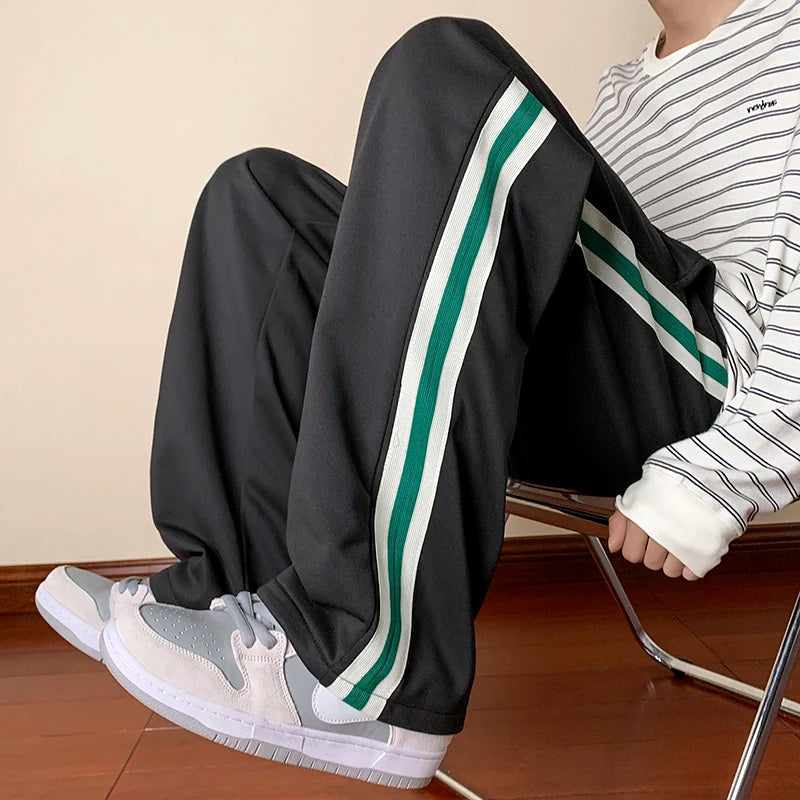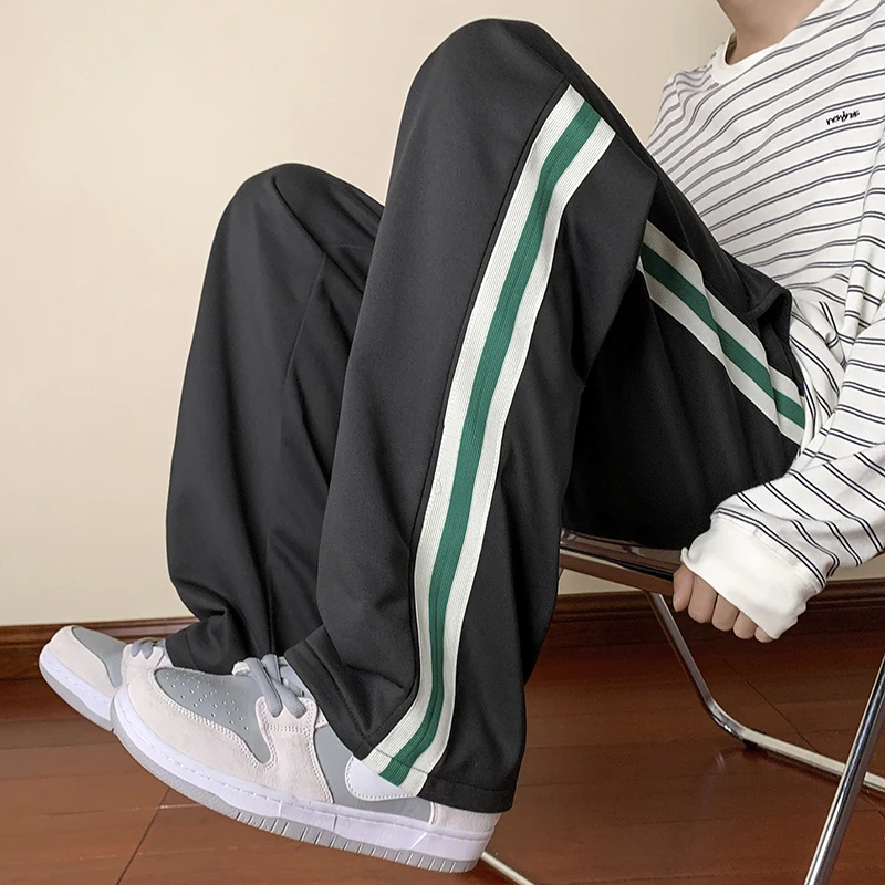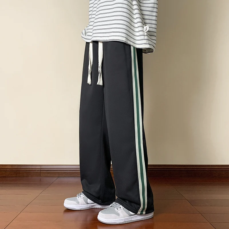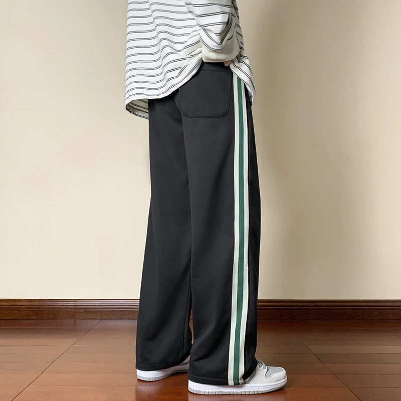 Hearujoy Black Side Striped Casual Pants Men's Spring New Loose Straight-leg Pants Elastic Waist Wide-leg Trousers Home Baggy Pants