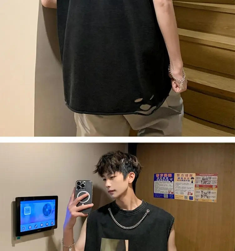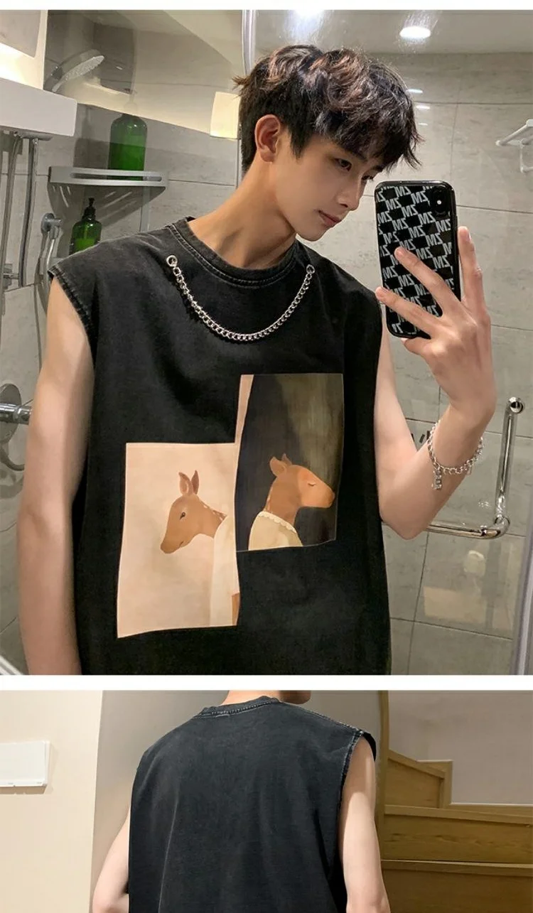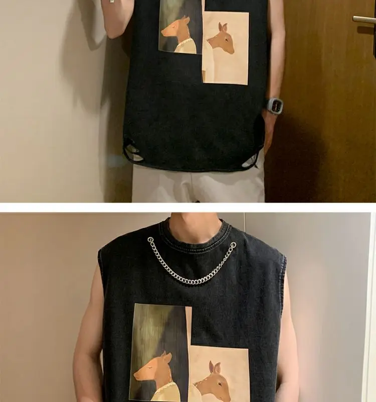 Hearujoy Black Undershirt Men's Summer Loose Design Large Size Sleeveless T-shirt Tide Netflix Sports Fitness Sweatshirt Deer Sports
