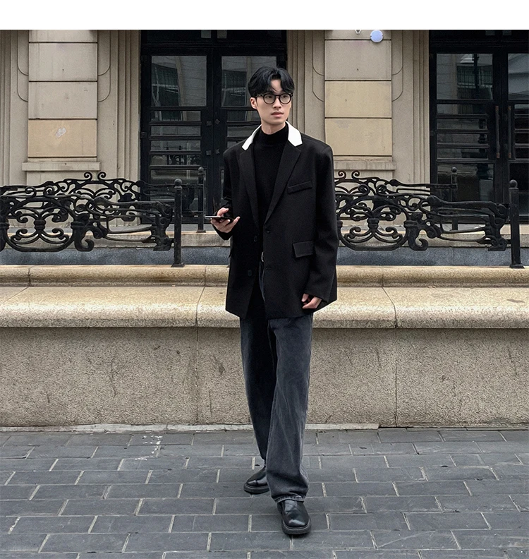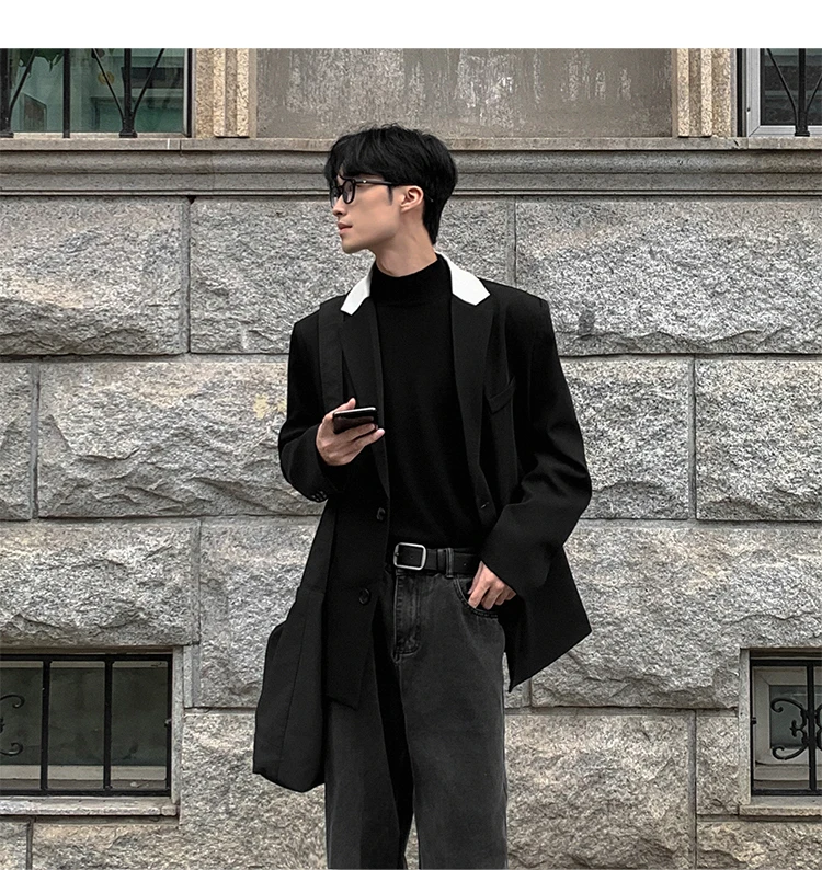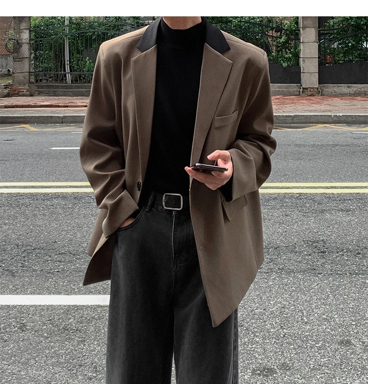 Hearujoy Blazer Men Oversized Fashion Society Mens Formal Dress Jacket Korean Loose Casual Suit Jacket Mens Office Formal Blazer M-3XL
