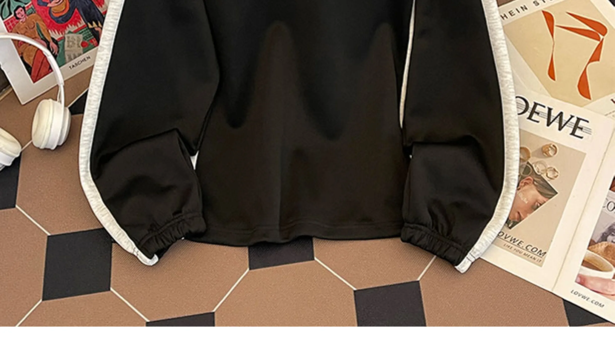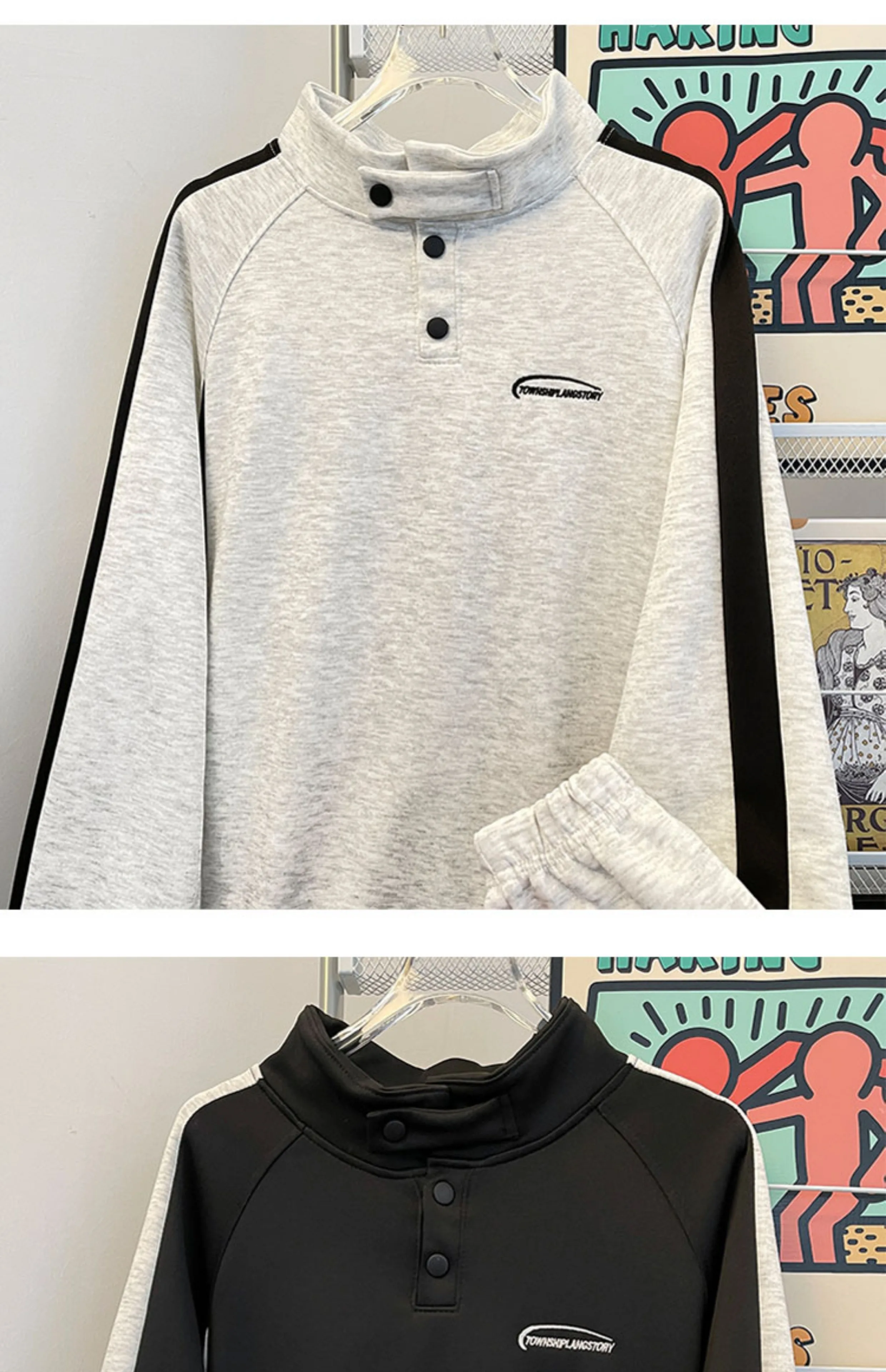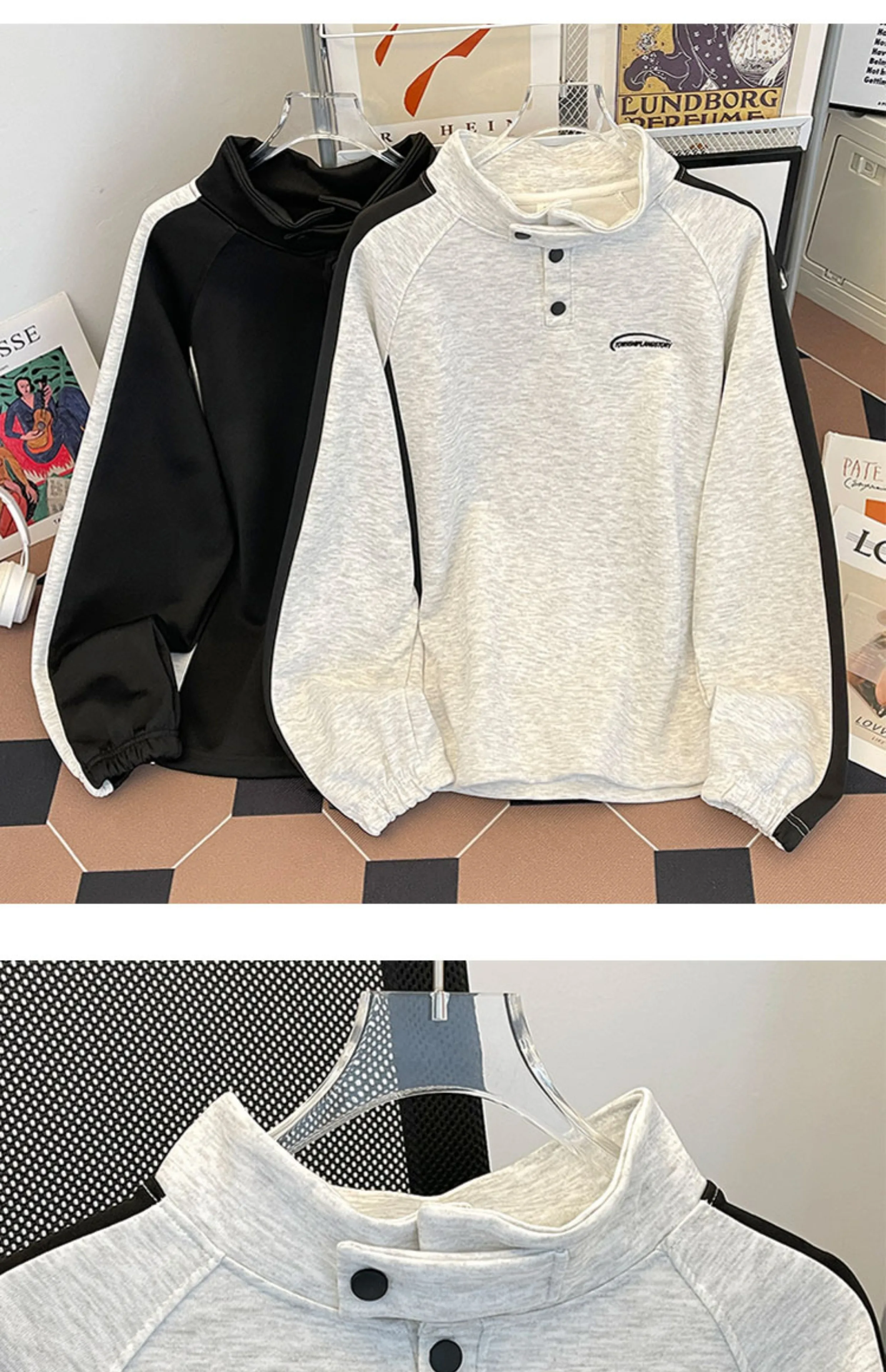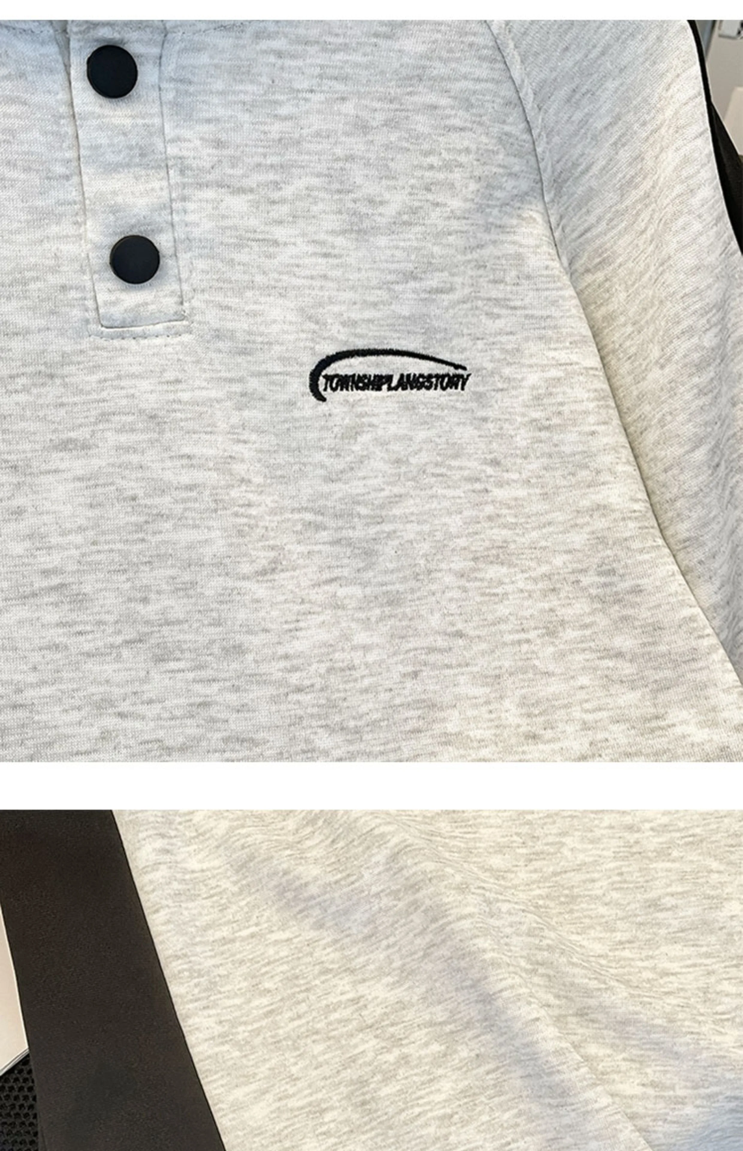 Hearujoy Blocking Stand Up Collar Pullover Hoodie for Men Spring Autumn American Retro Clean Fit Oversized Casual Sports Top Jacket