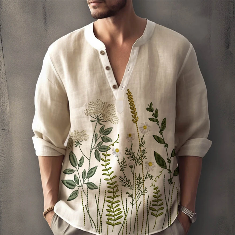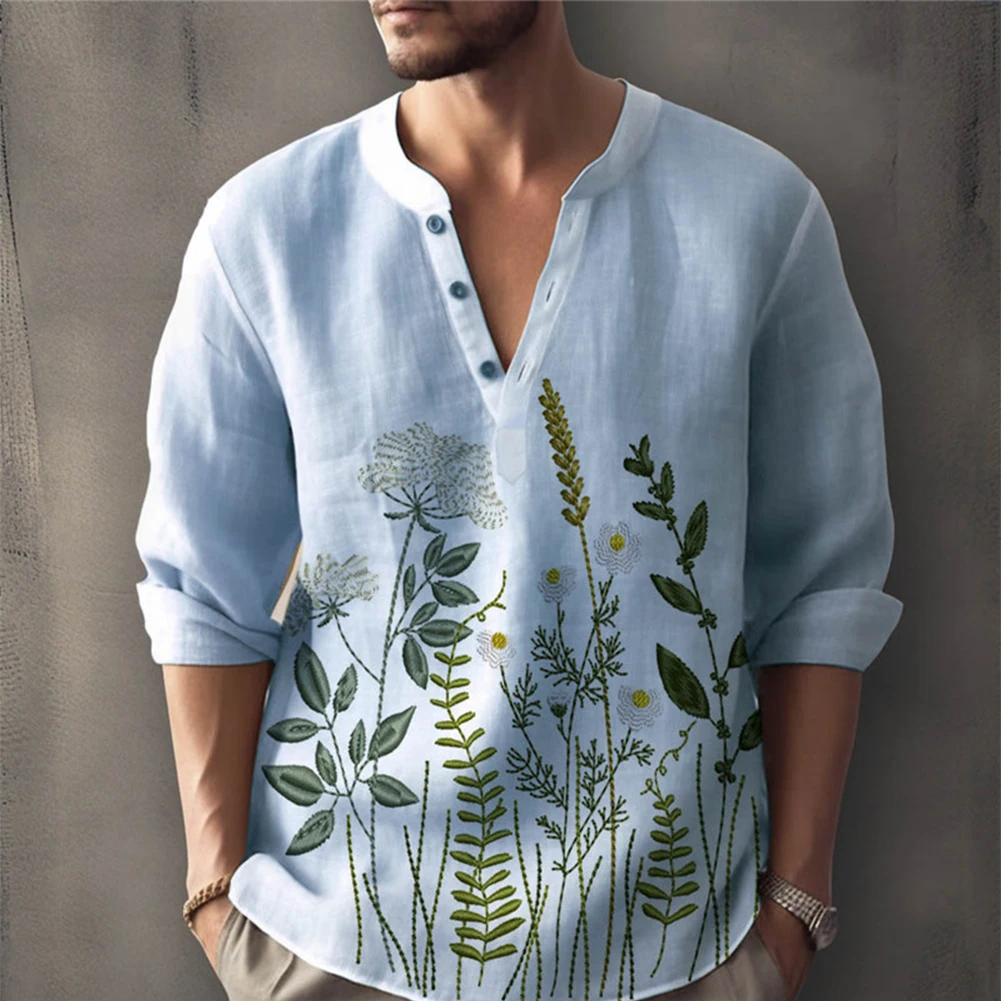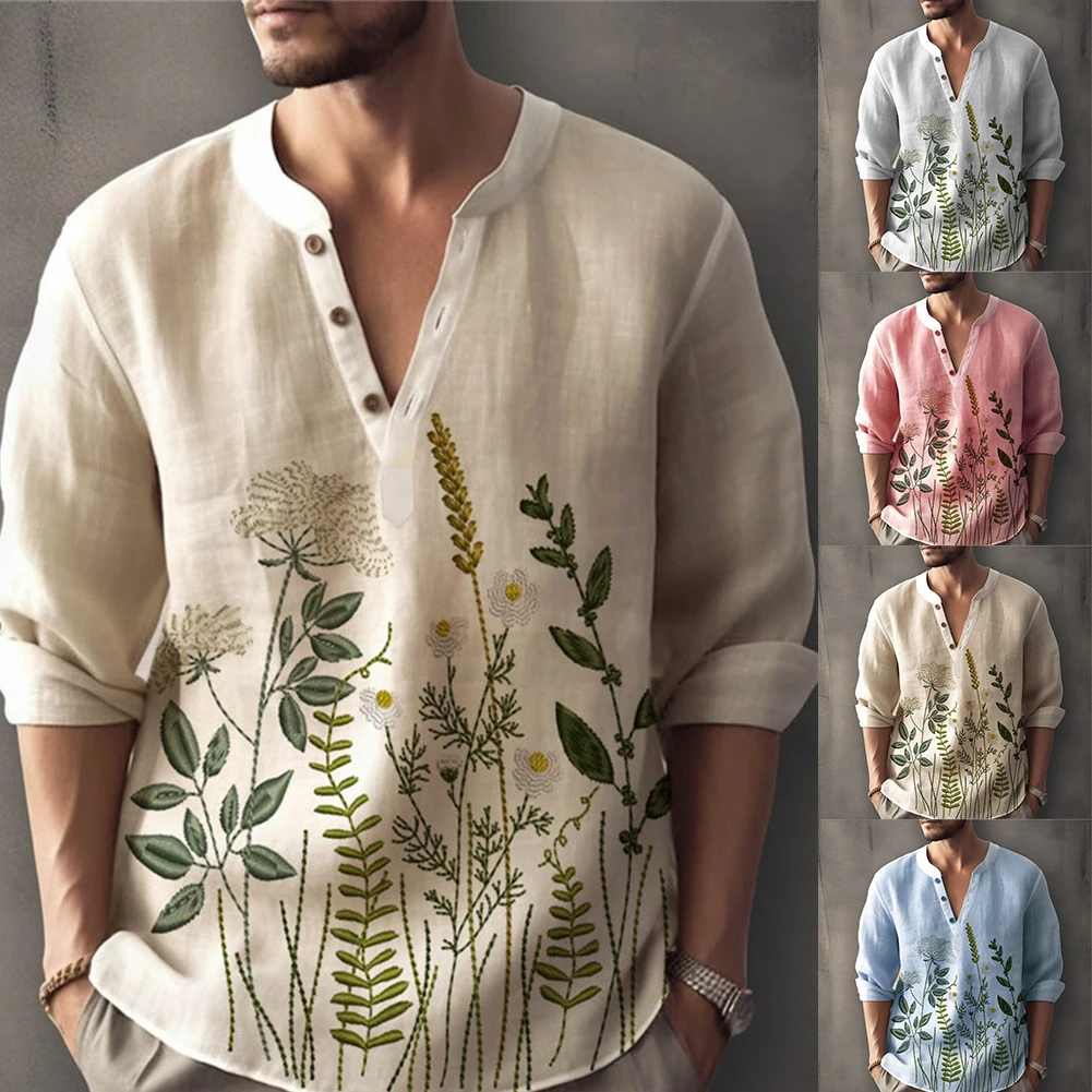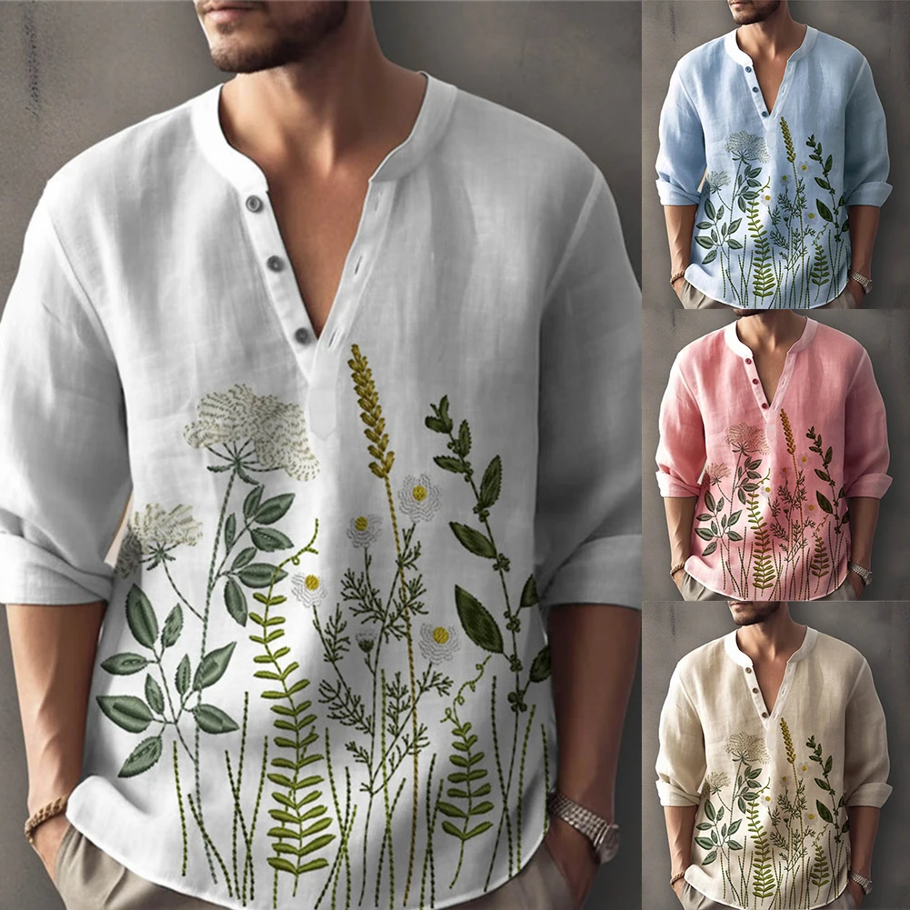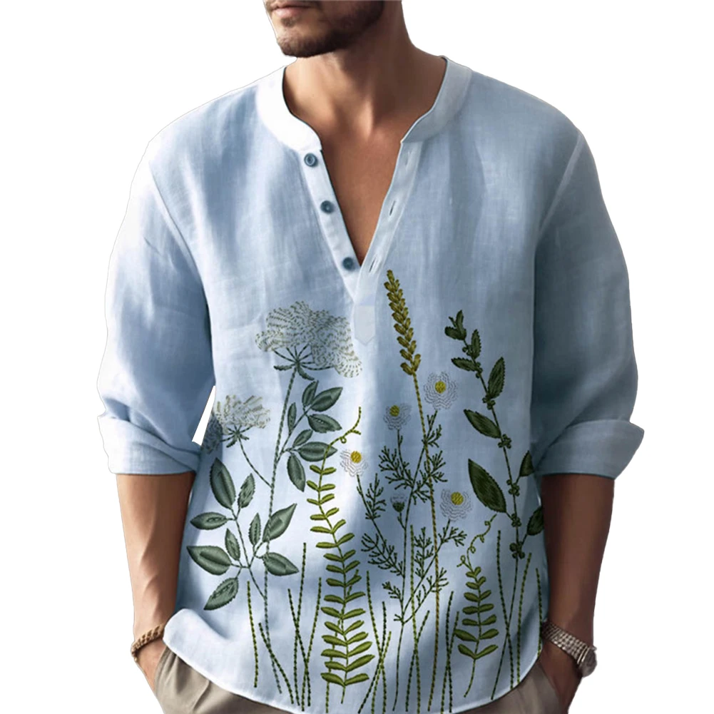 HEARUJOY - Blouse Men Shirt Party Traveling Single Breasted Solid Cotton Summer T Shirt Henley Tops Lightweight Turn-down